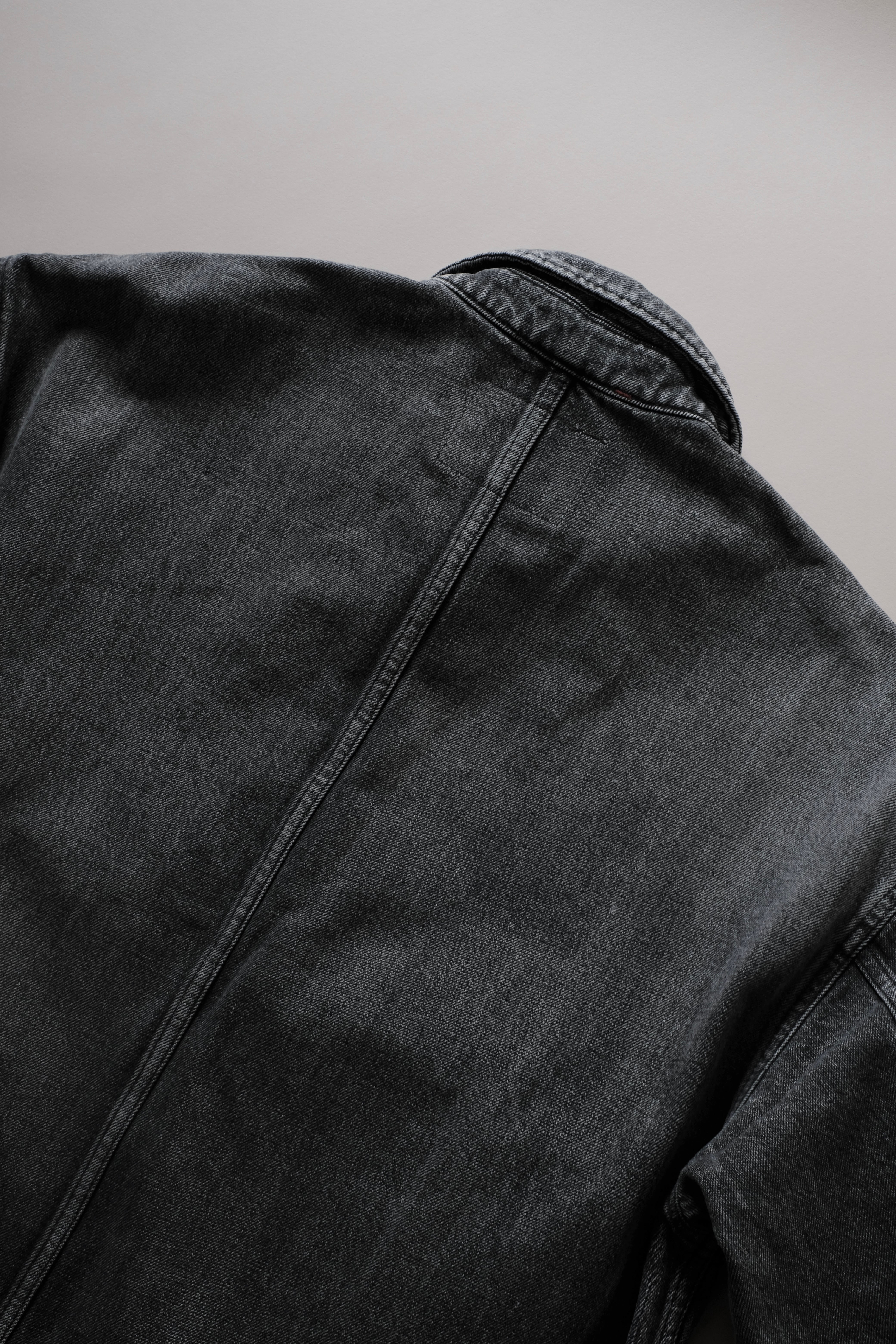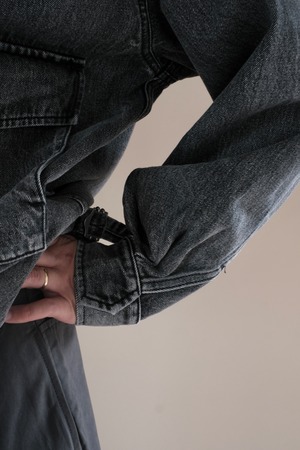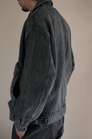 コンパクトな身幅に反して大胆にドロップしたショルダーと大振りなスリーブが特徴のフロントジップジャケット。
