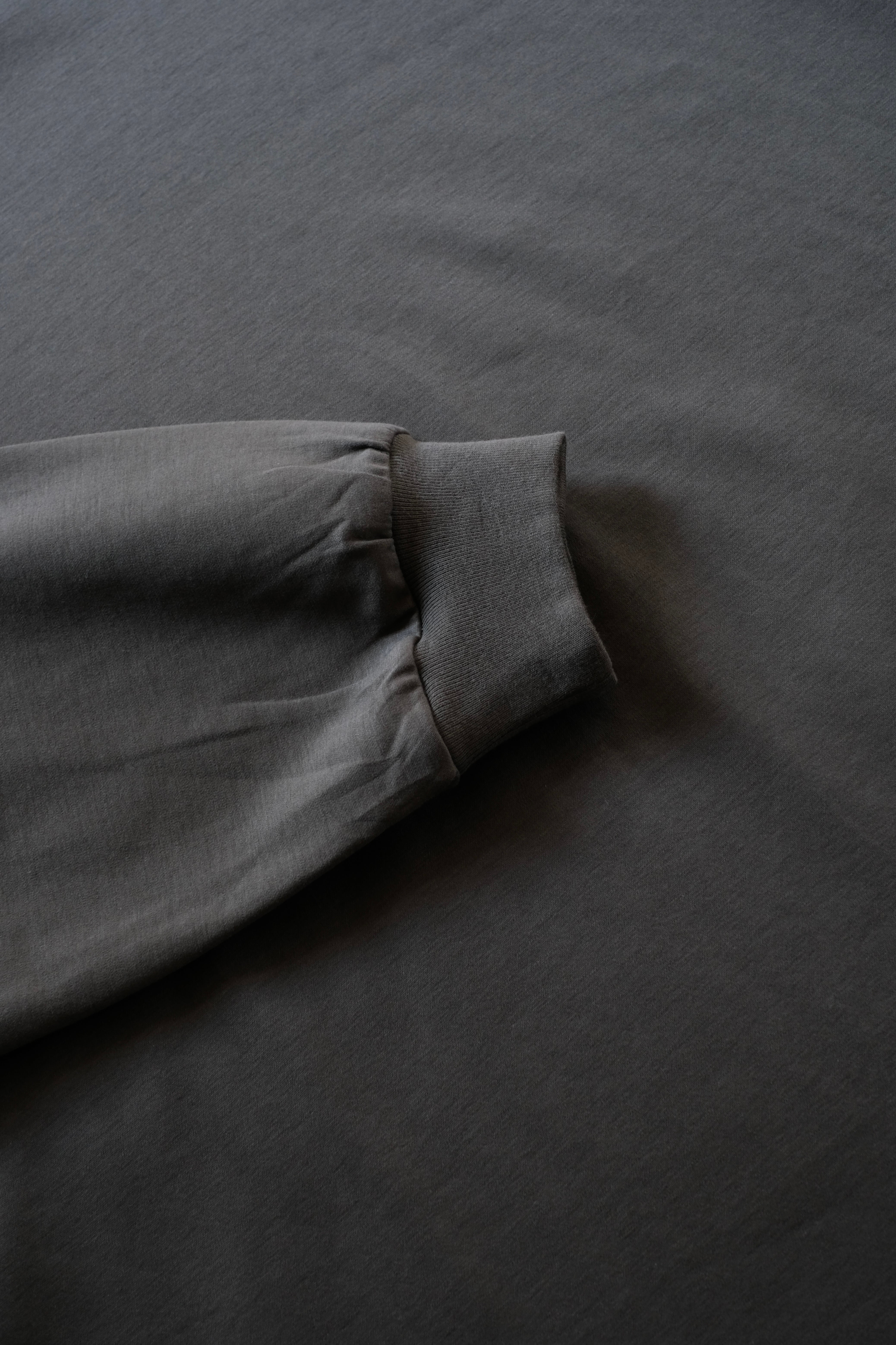 極細のスーピマコットンを糸で起毛処理を施し、原綿の滑らかな触感をさらに引き立てるオリジナル糸を国内最高ゲージ40Gで編み上げた素材を使用。