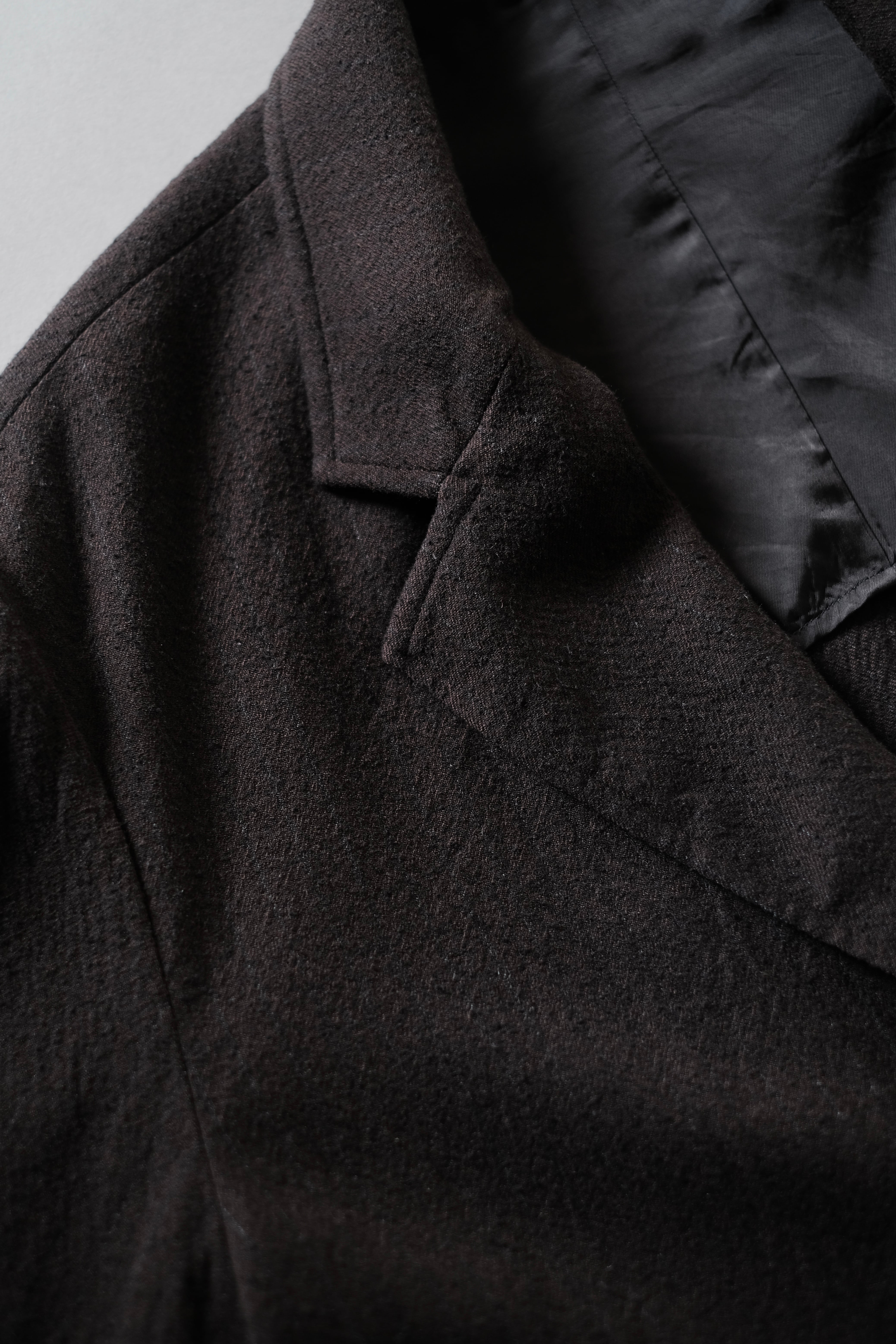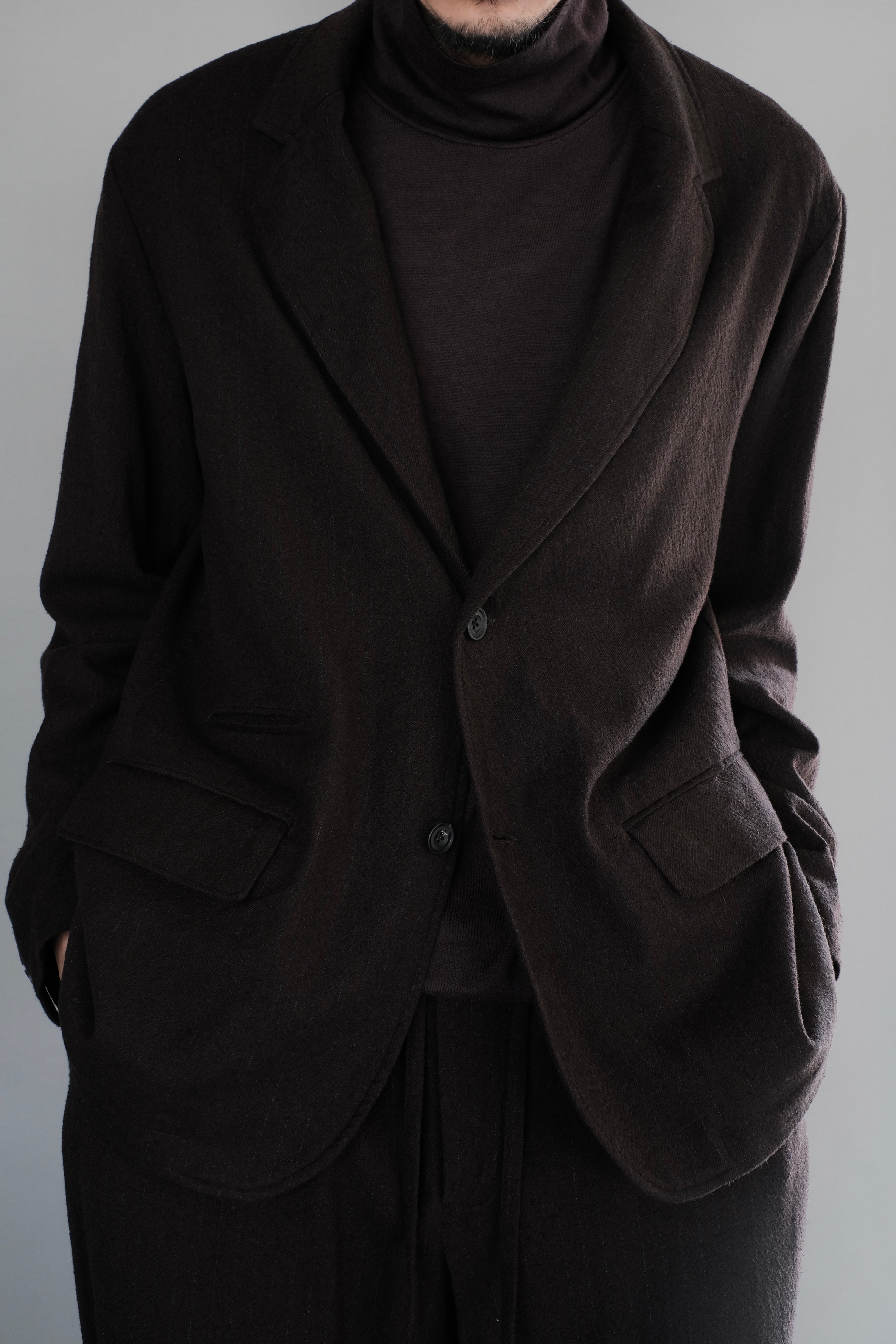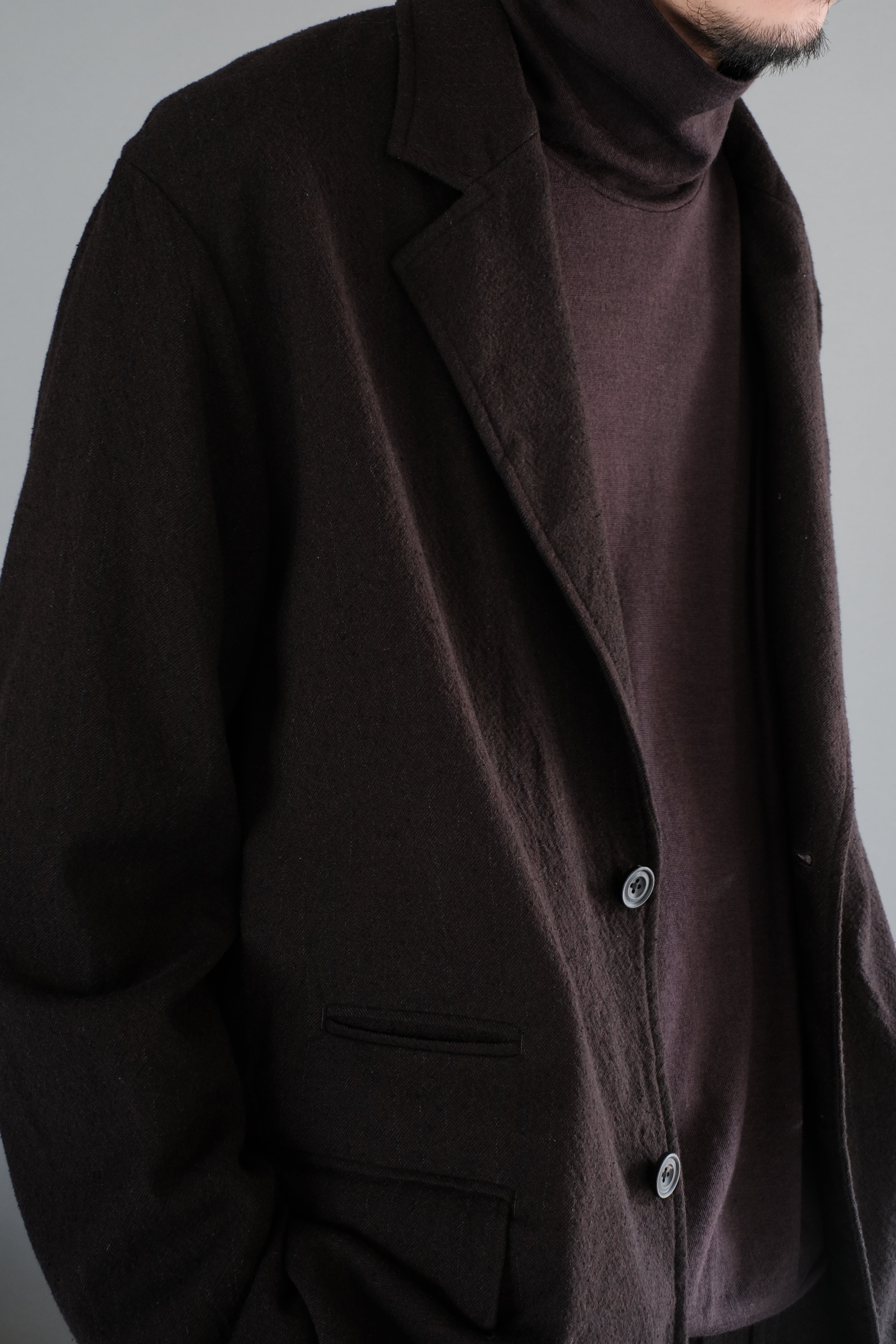 クラシカルな仕様のテーラードジャケットをベースに、パッドや芯材を極力を使わず素朴感を活かしたフォルムで制作した2Bジャケット。