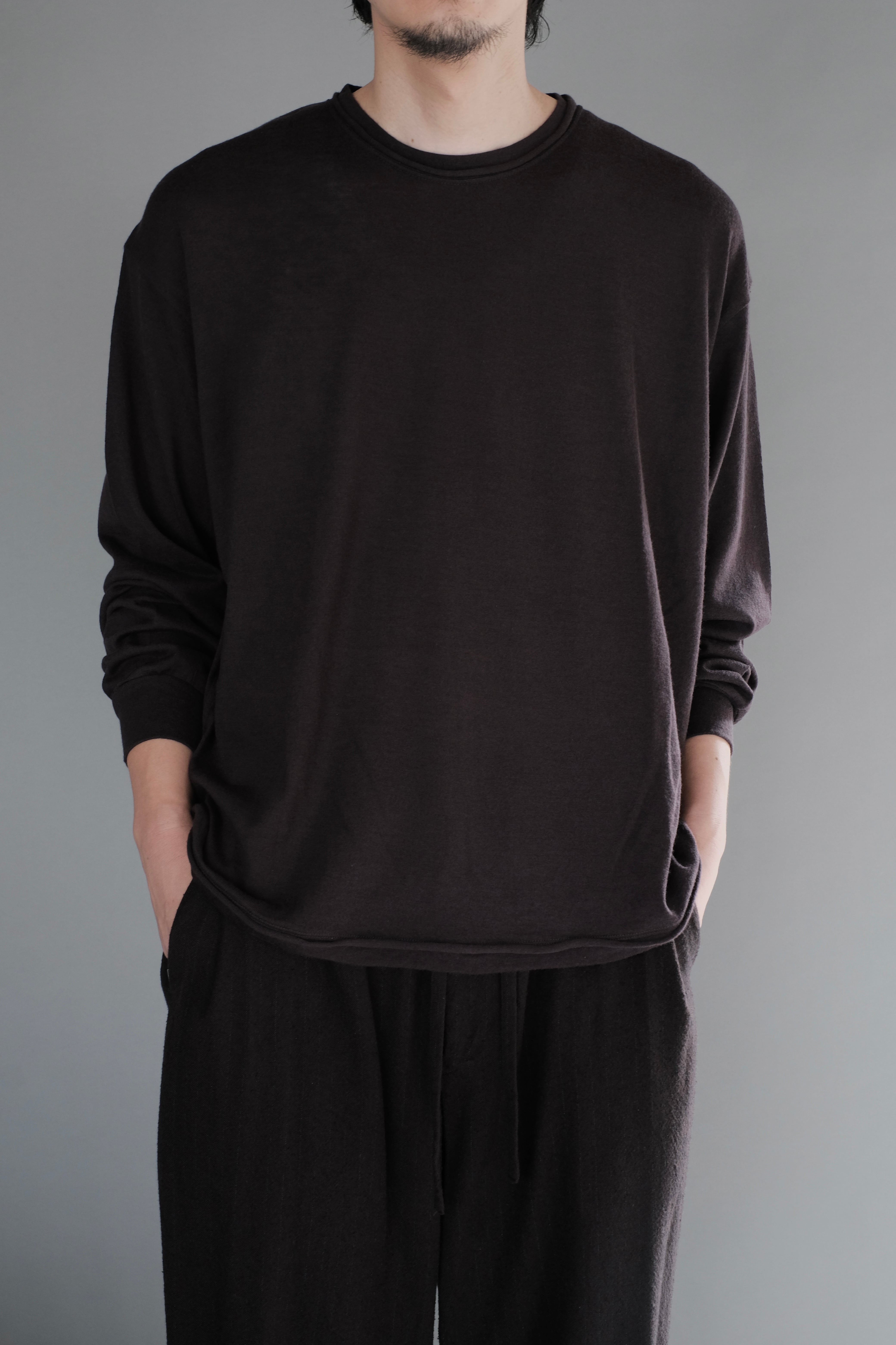 見え方はハイゲージニットの雰囲気ながら、ウォッシャブル原料によるカットソー仕様のため、イージーケアが可能。