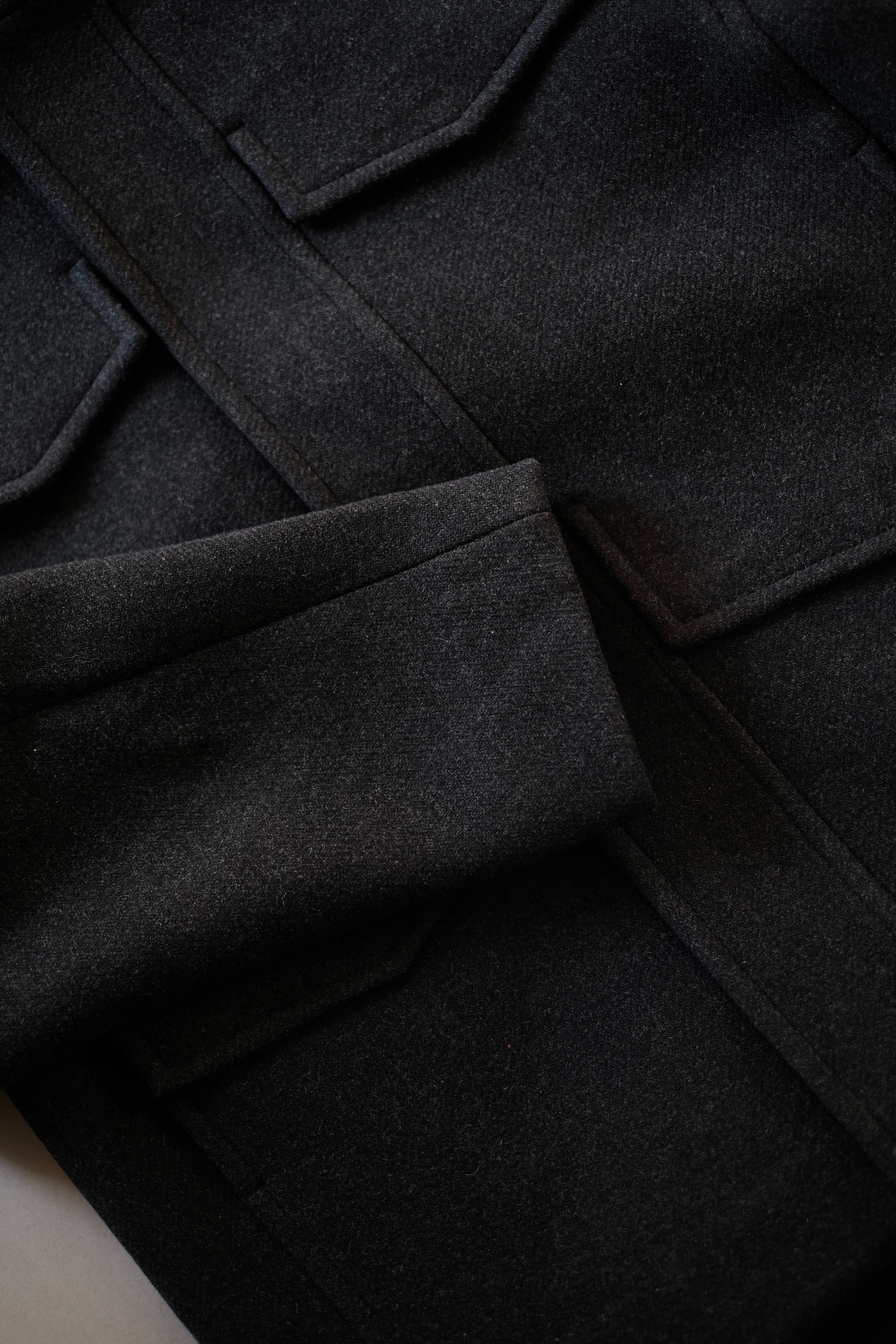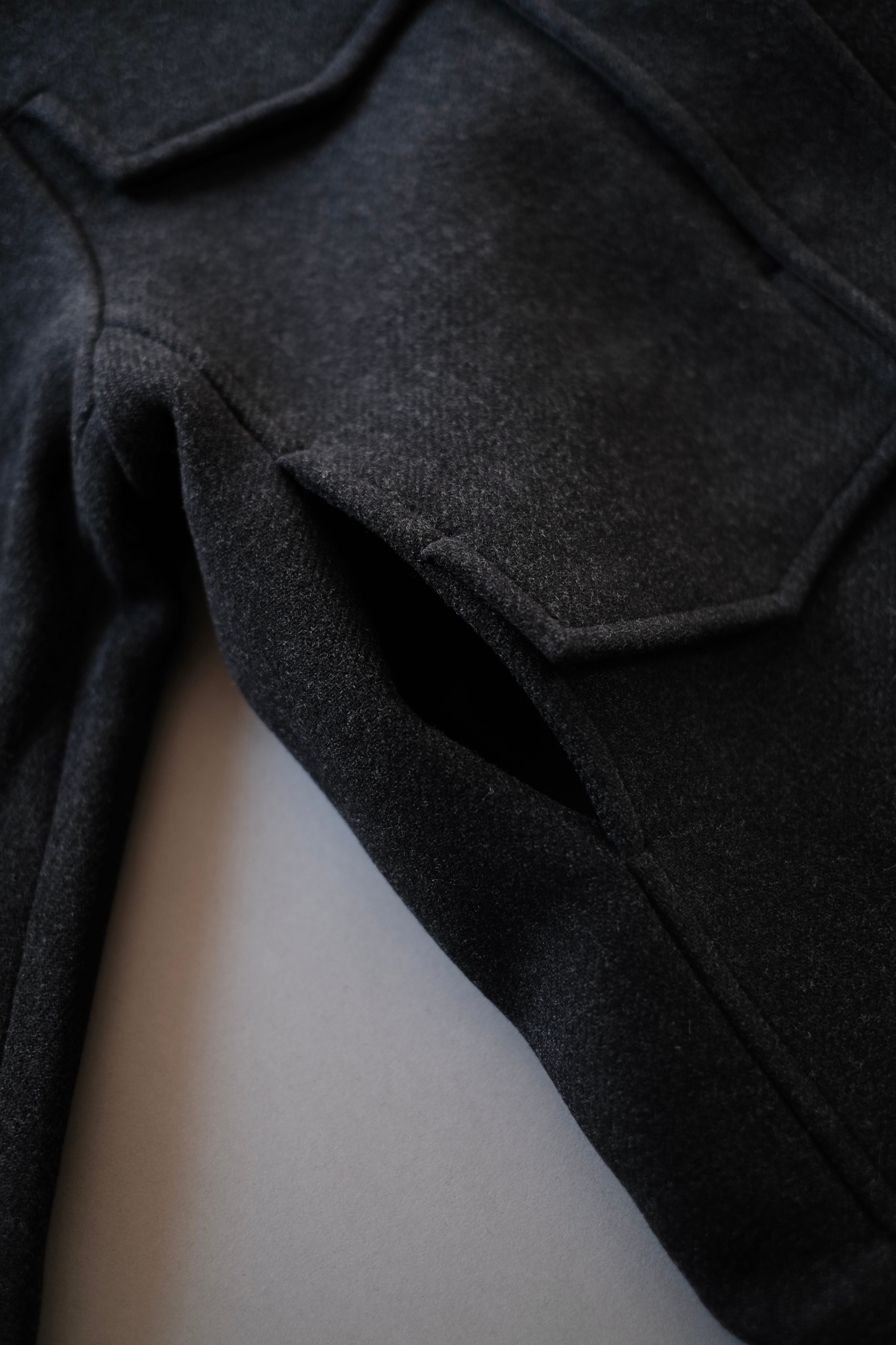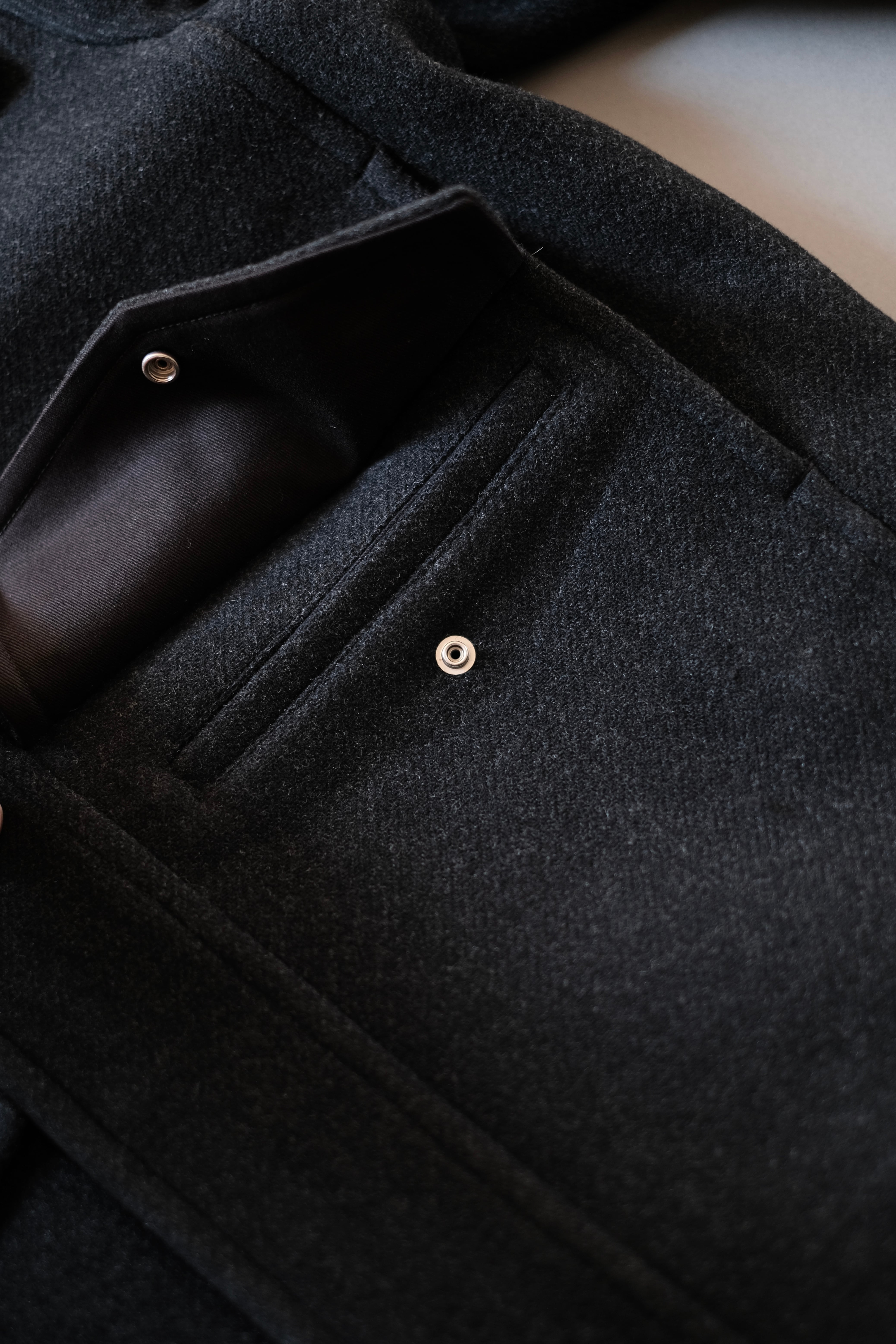 オーセンティックな要素を残しつつ、ダブルフェイスメルトン生地を用いて上品で洗練された佇まいに仕上げています。