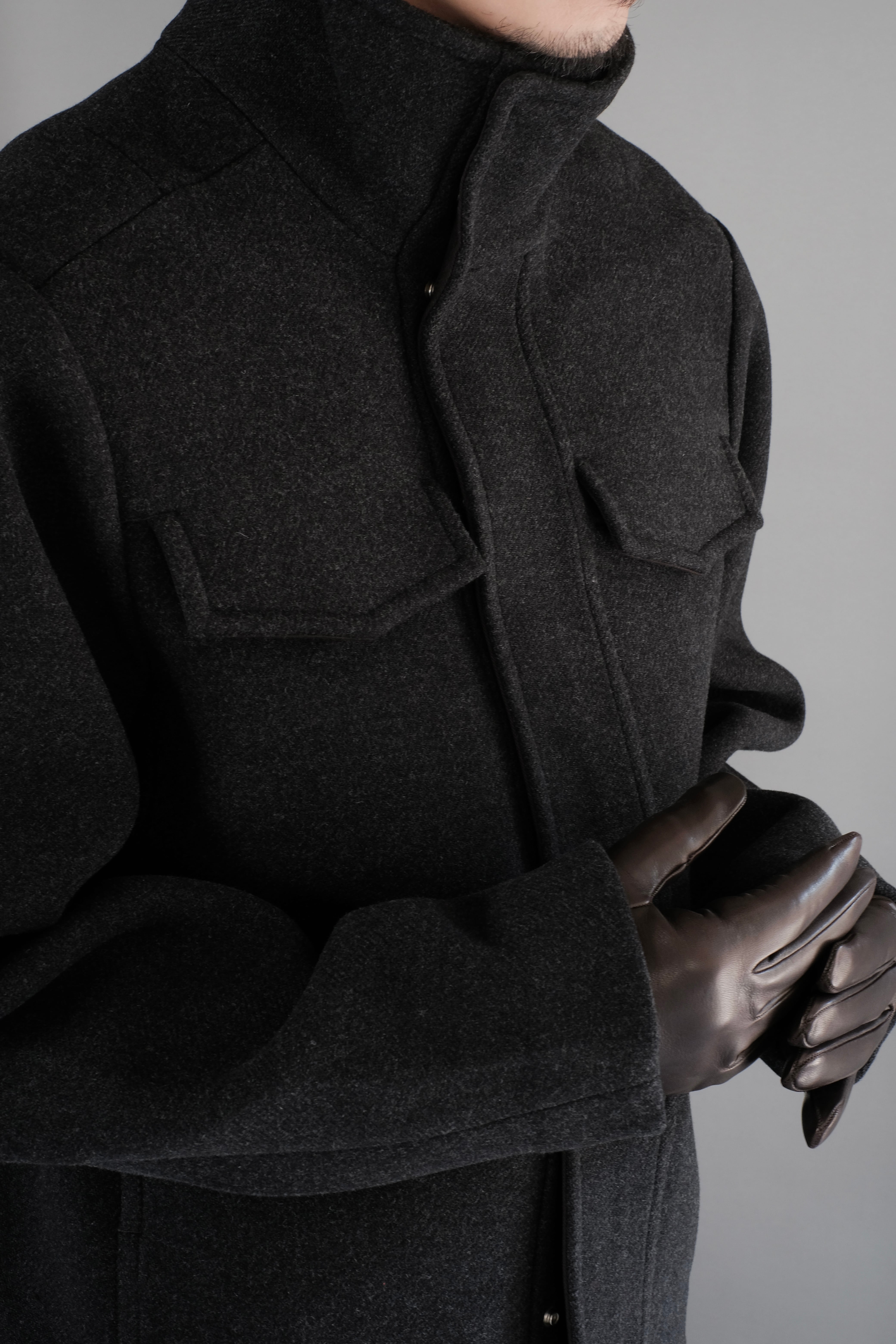 随所に配されたラインディテールがアクセントとなり、構築的で現代的なミリタリースタイルを表現した一着です。