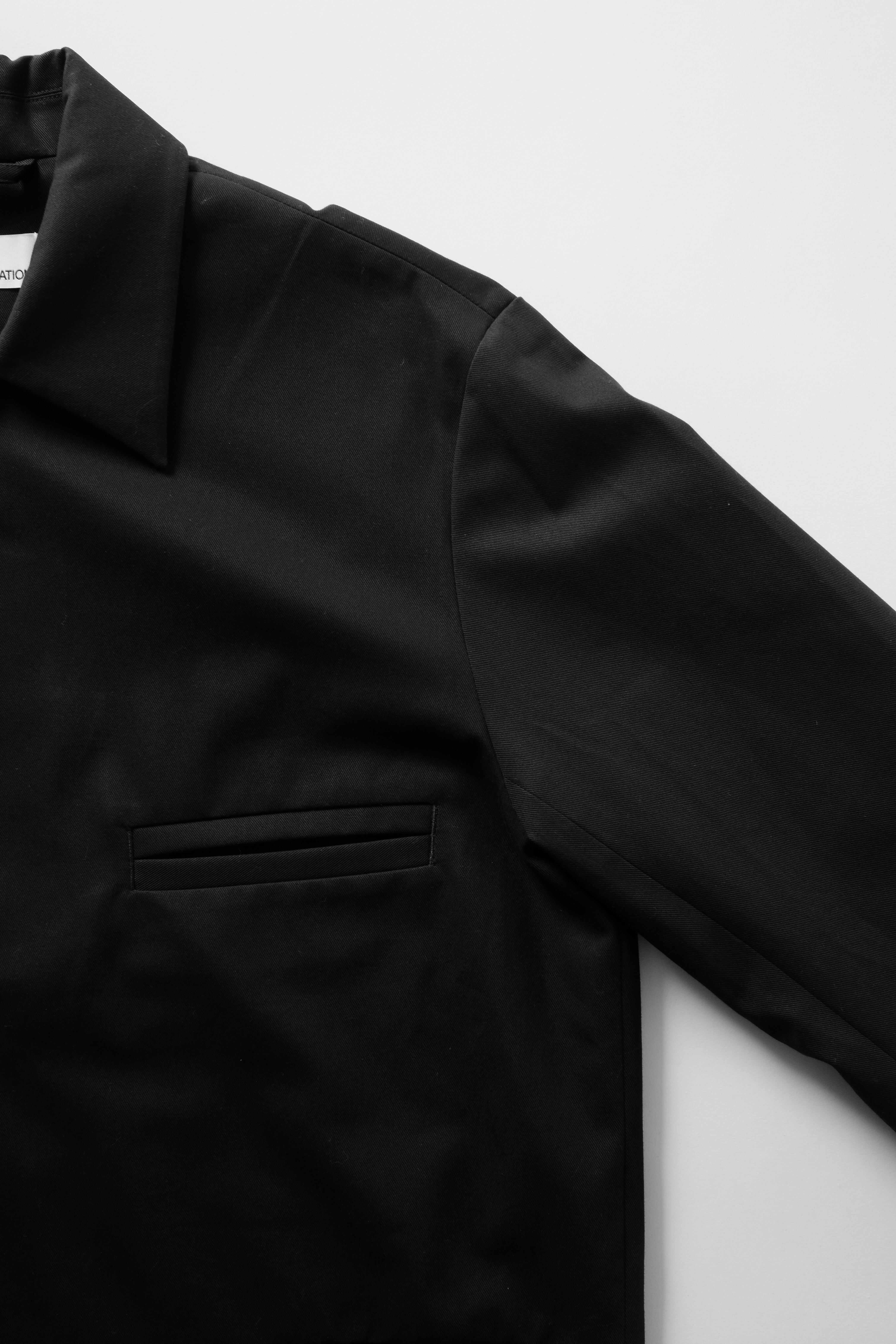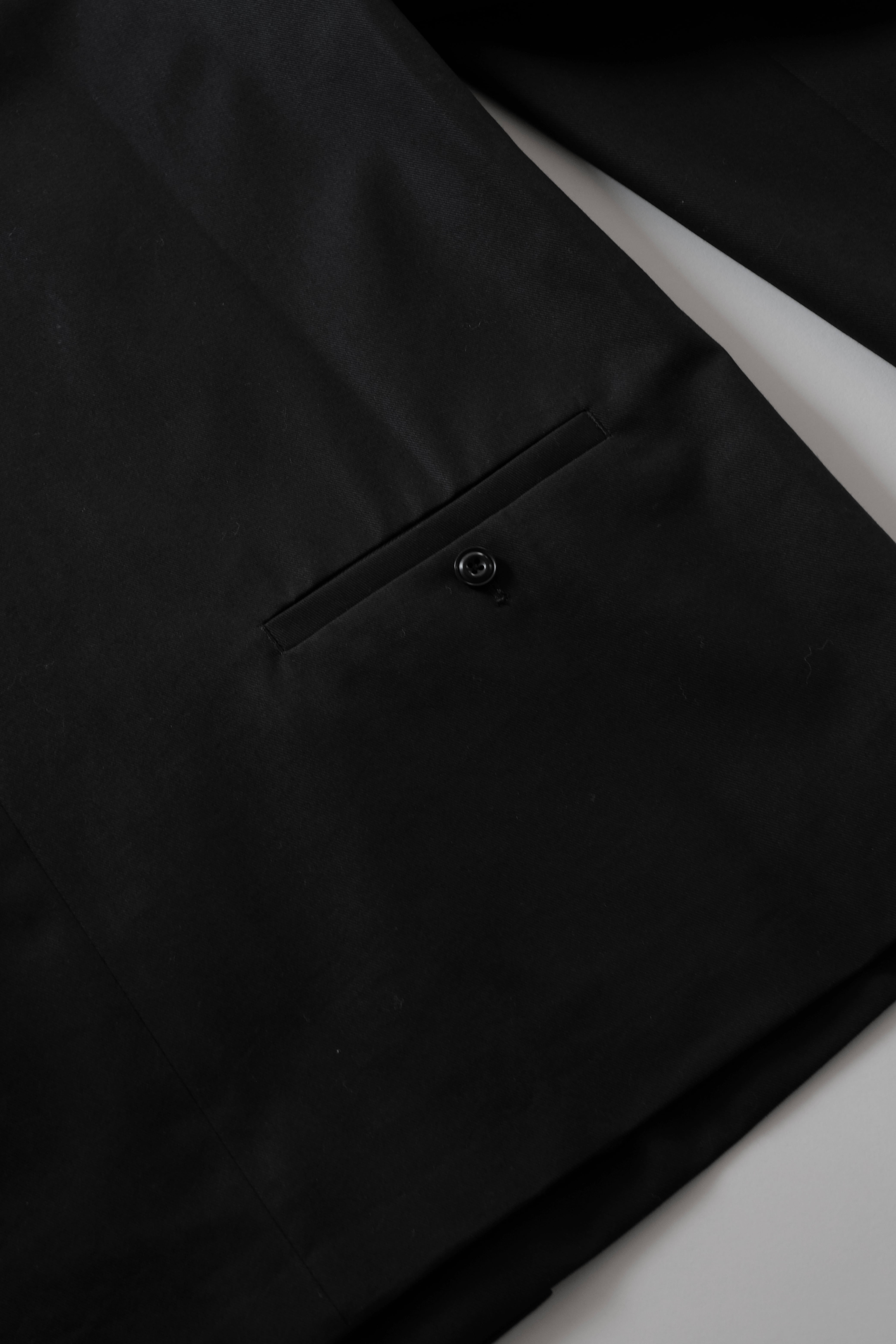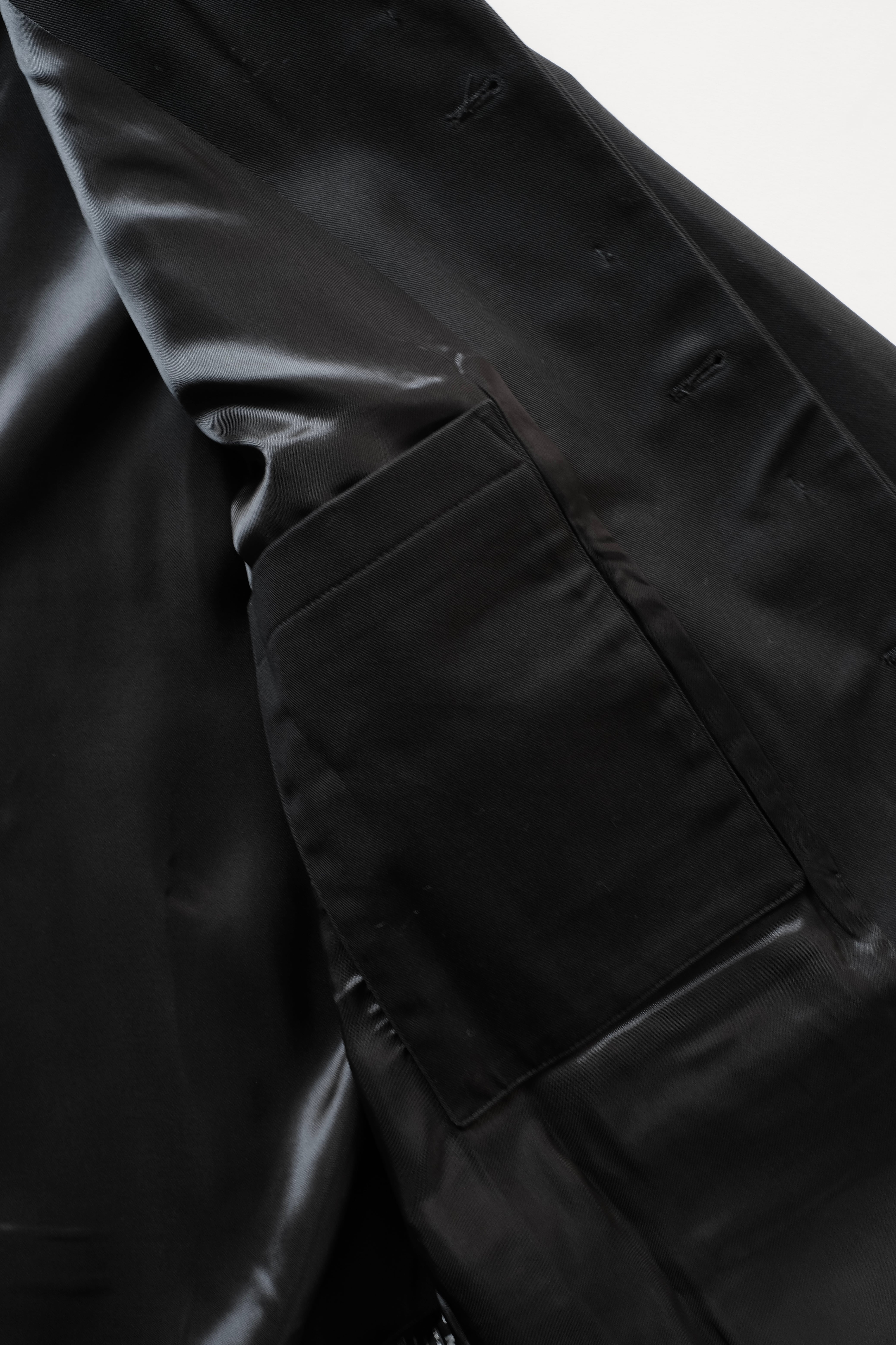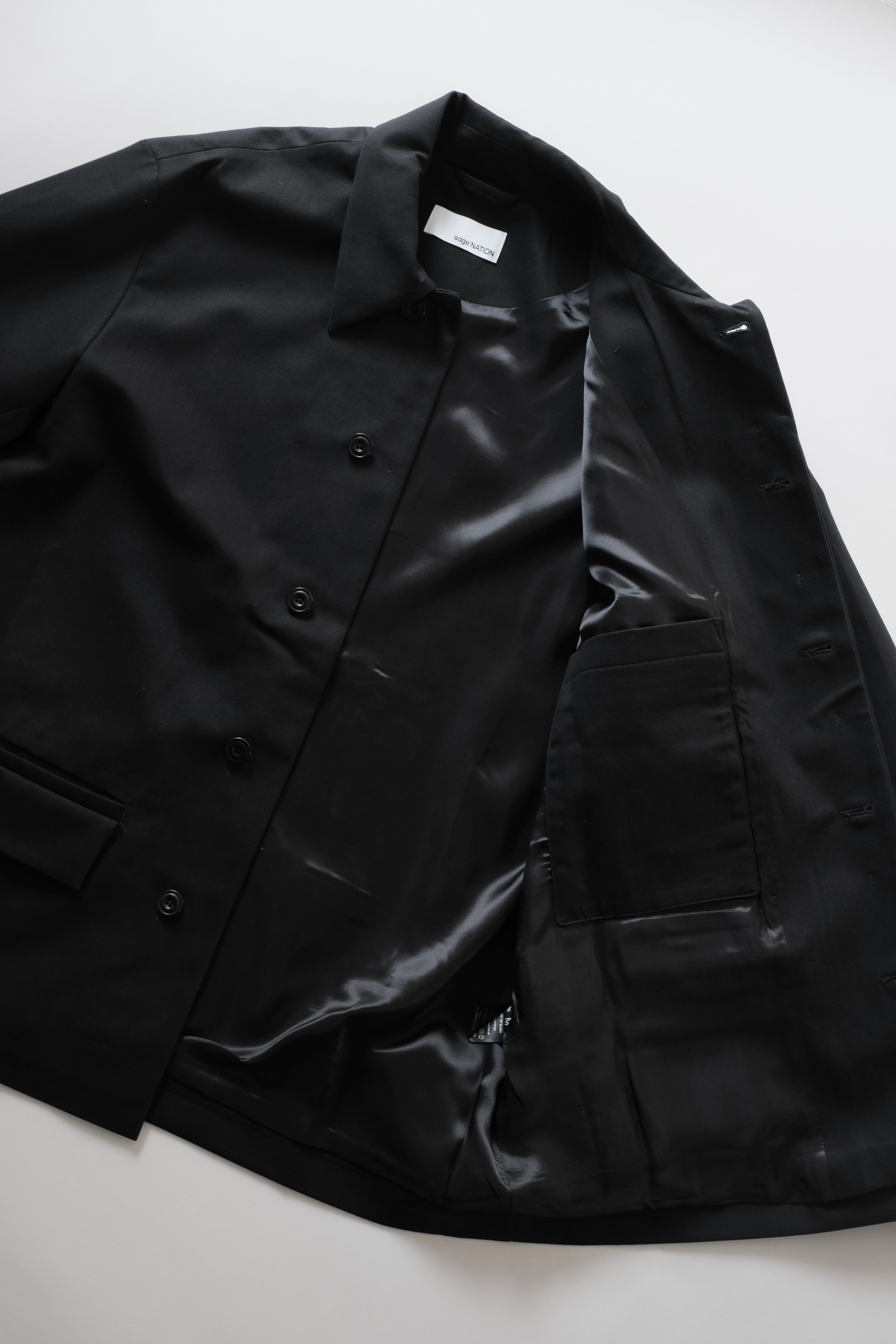 コットンギャバジンと高級タキシード生地を組み合わせた、フォーマルとワークを横断する一着。