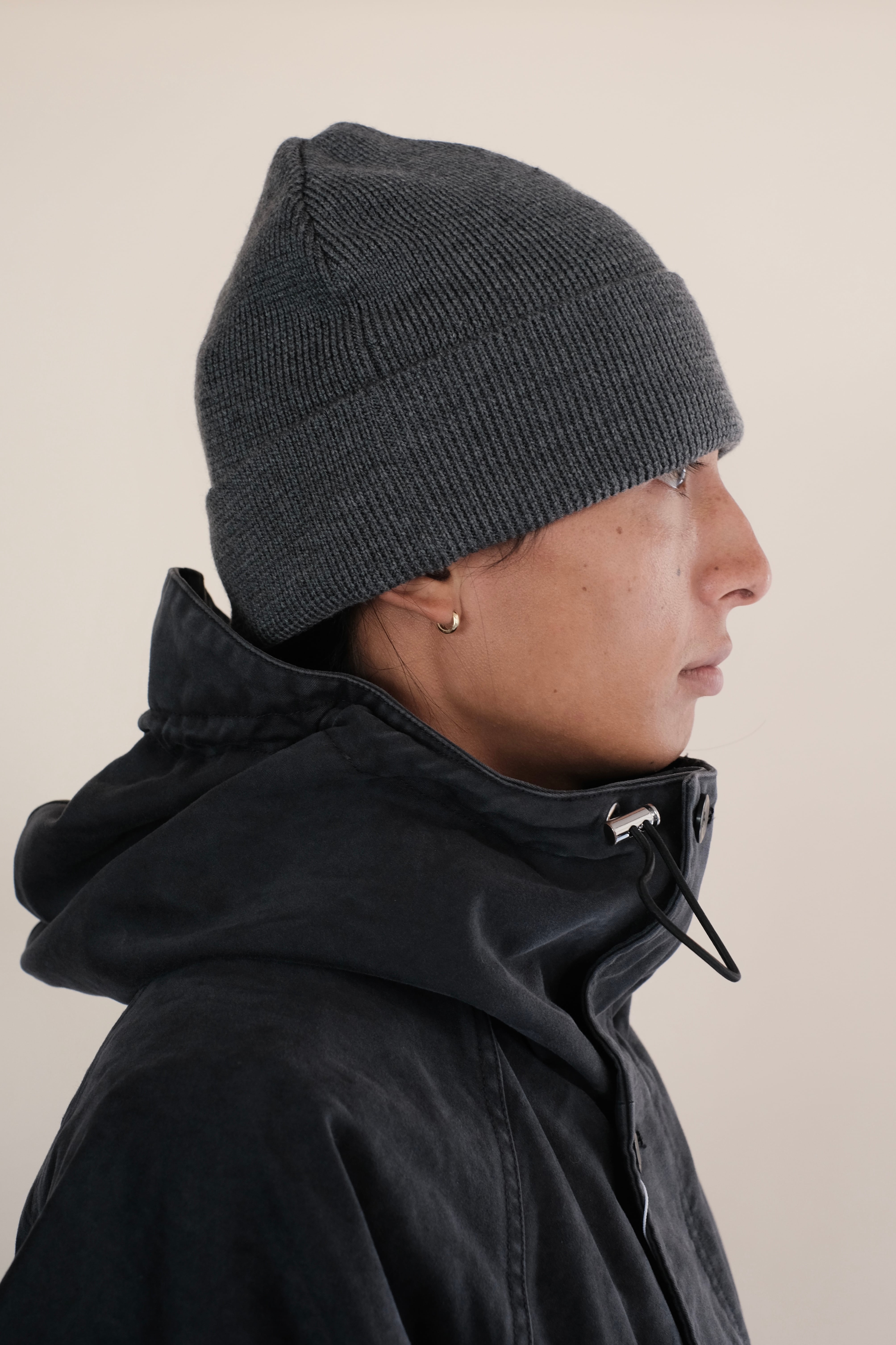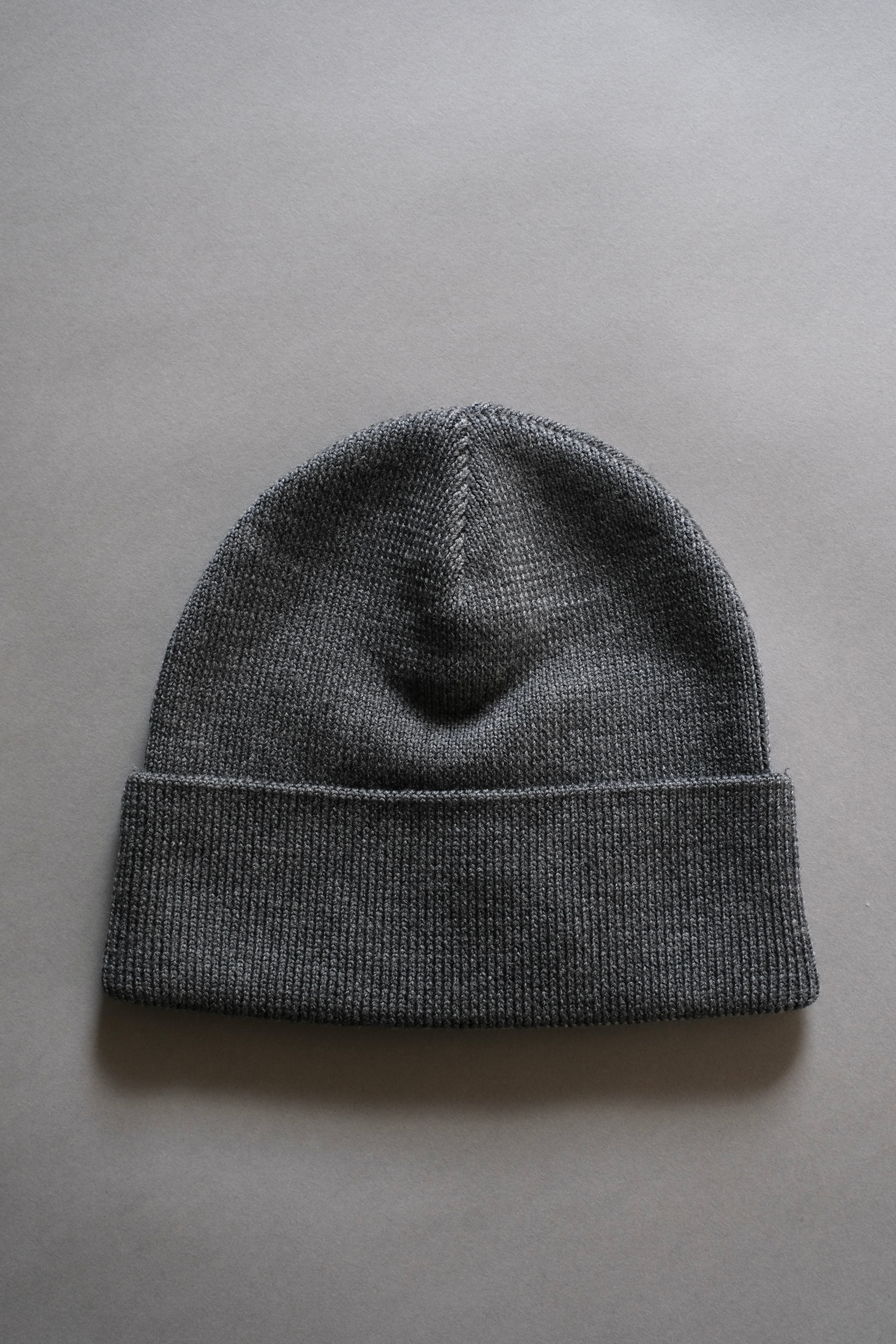 ウォッシャブルかつ抜群の柔らかさを持つ高級糸Super 120'sのオーストラリア産メリノウールを原料に、7ゲージのリブ編みでビーニーを仕立てました。
