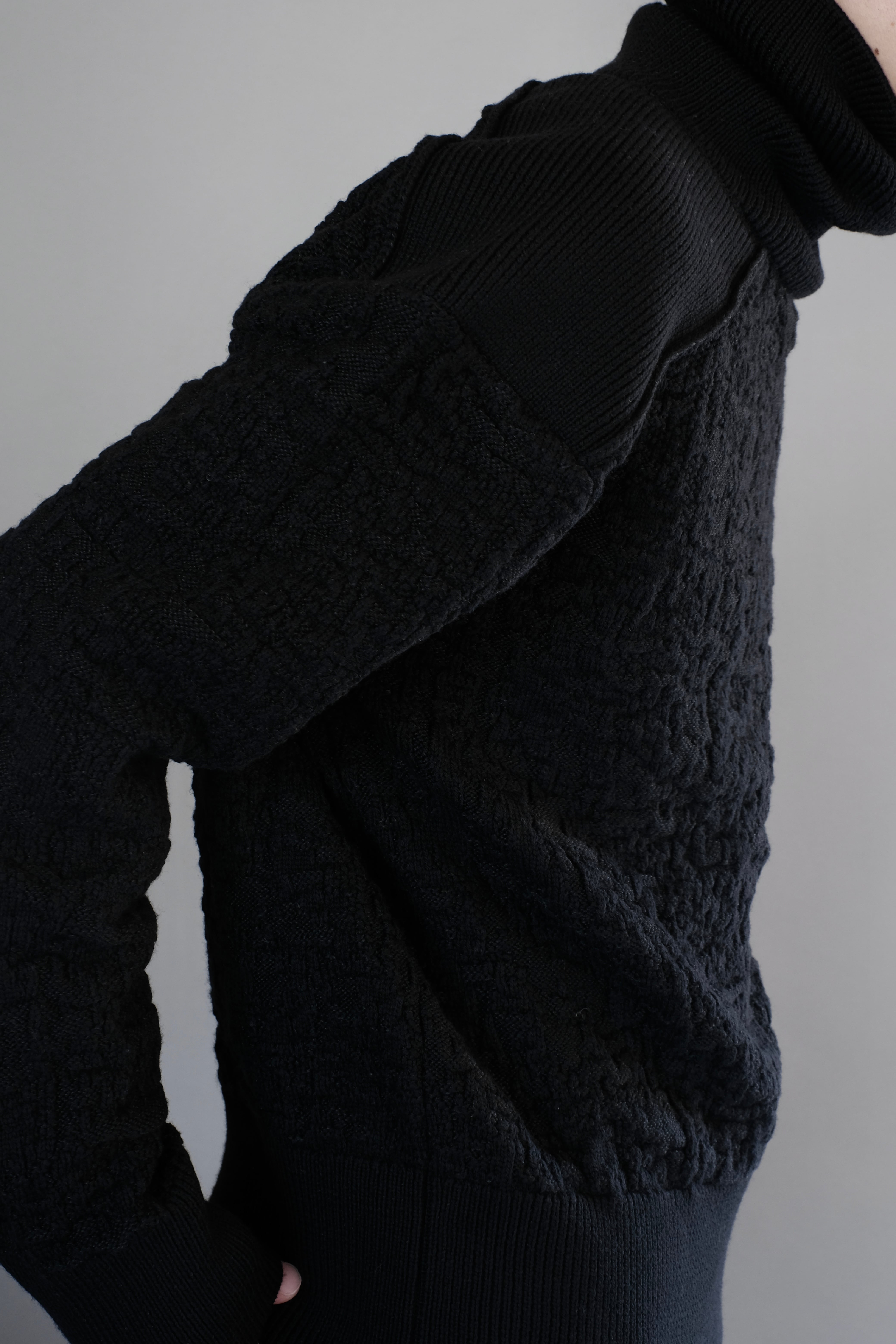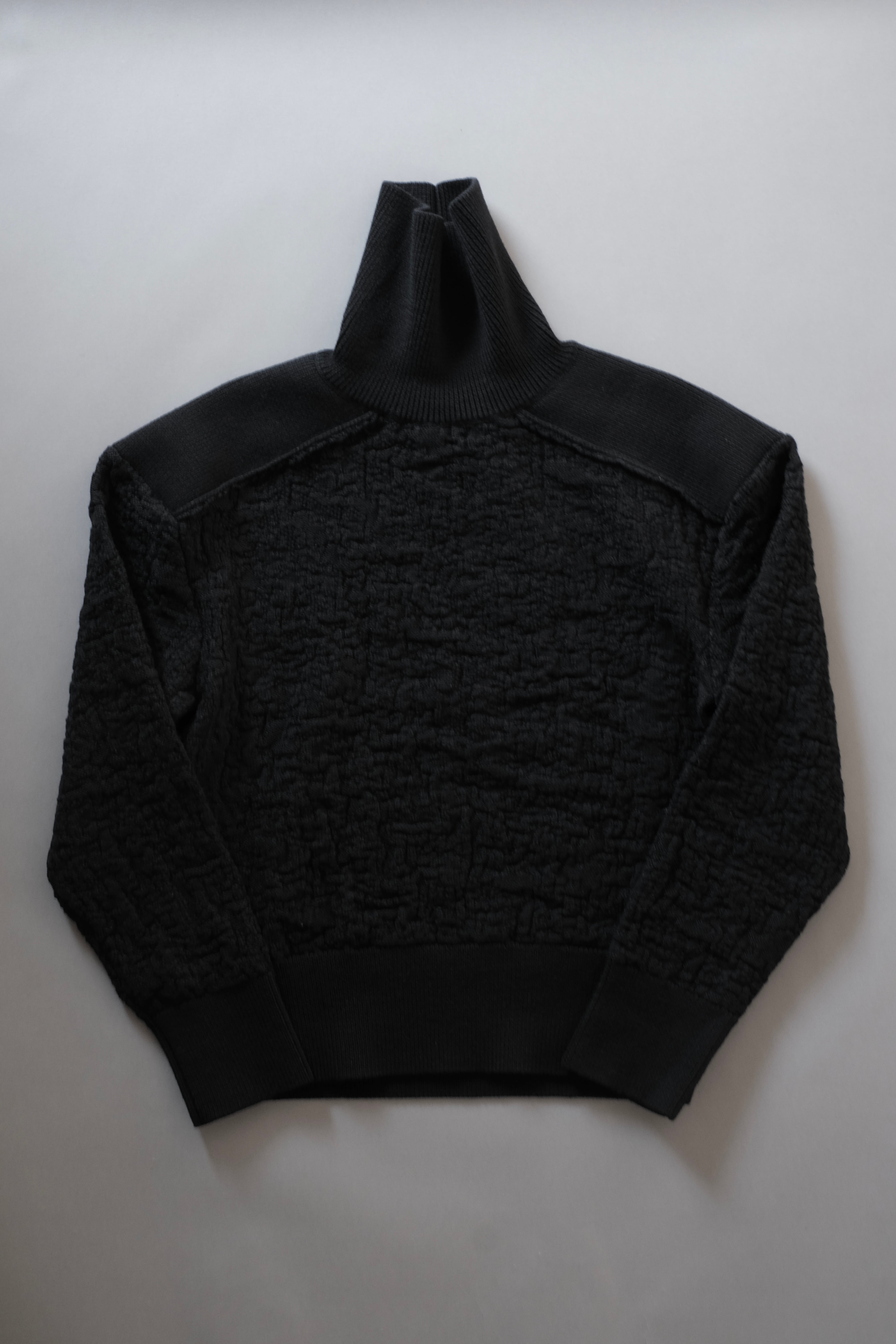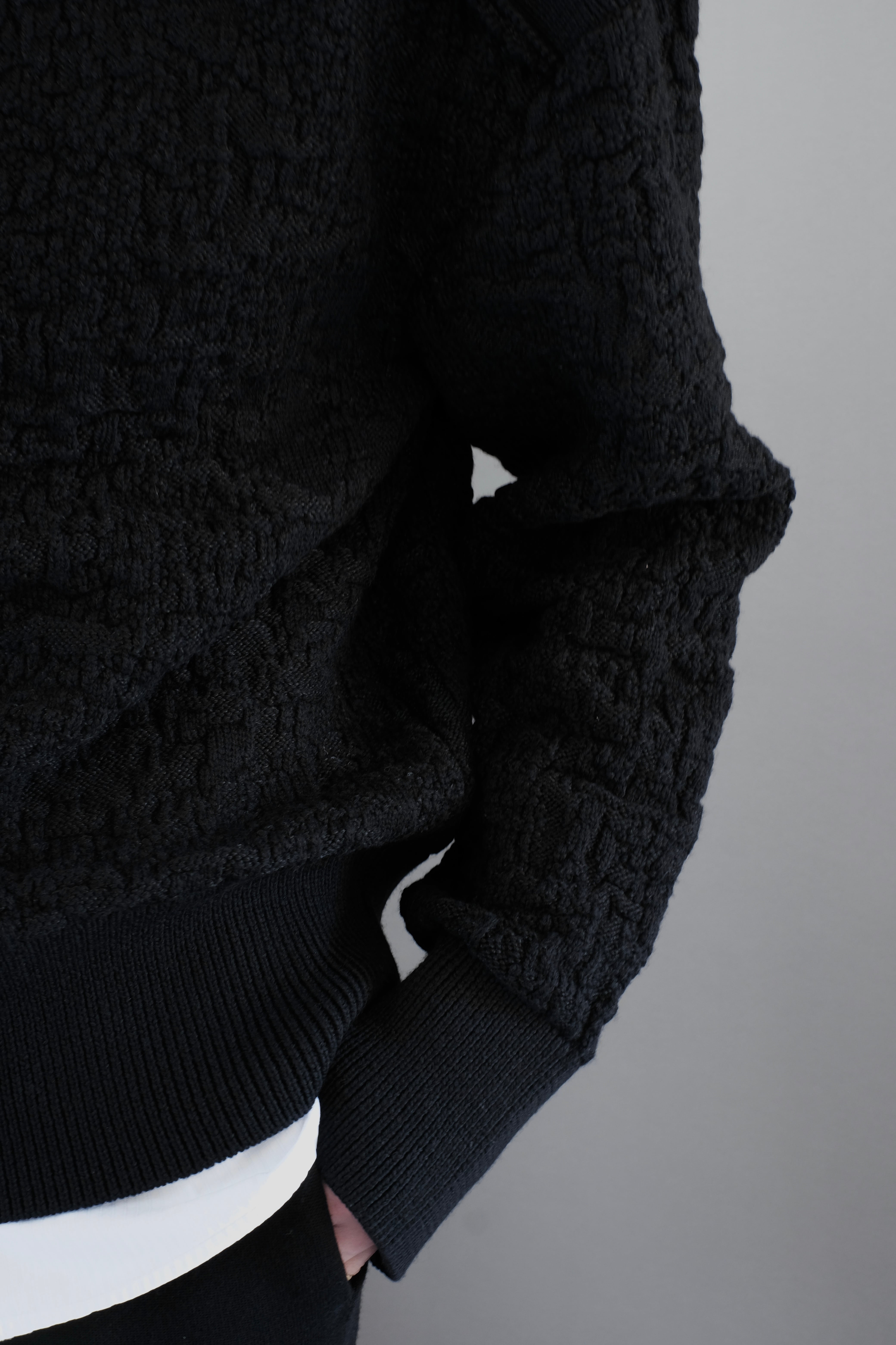 アルル地方で放牧されたメリノ種のウールと透明糸を立体的に編み込んだコマンドセーター。