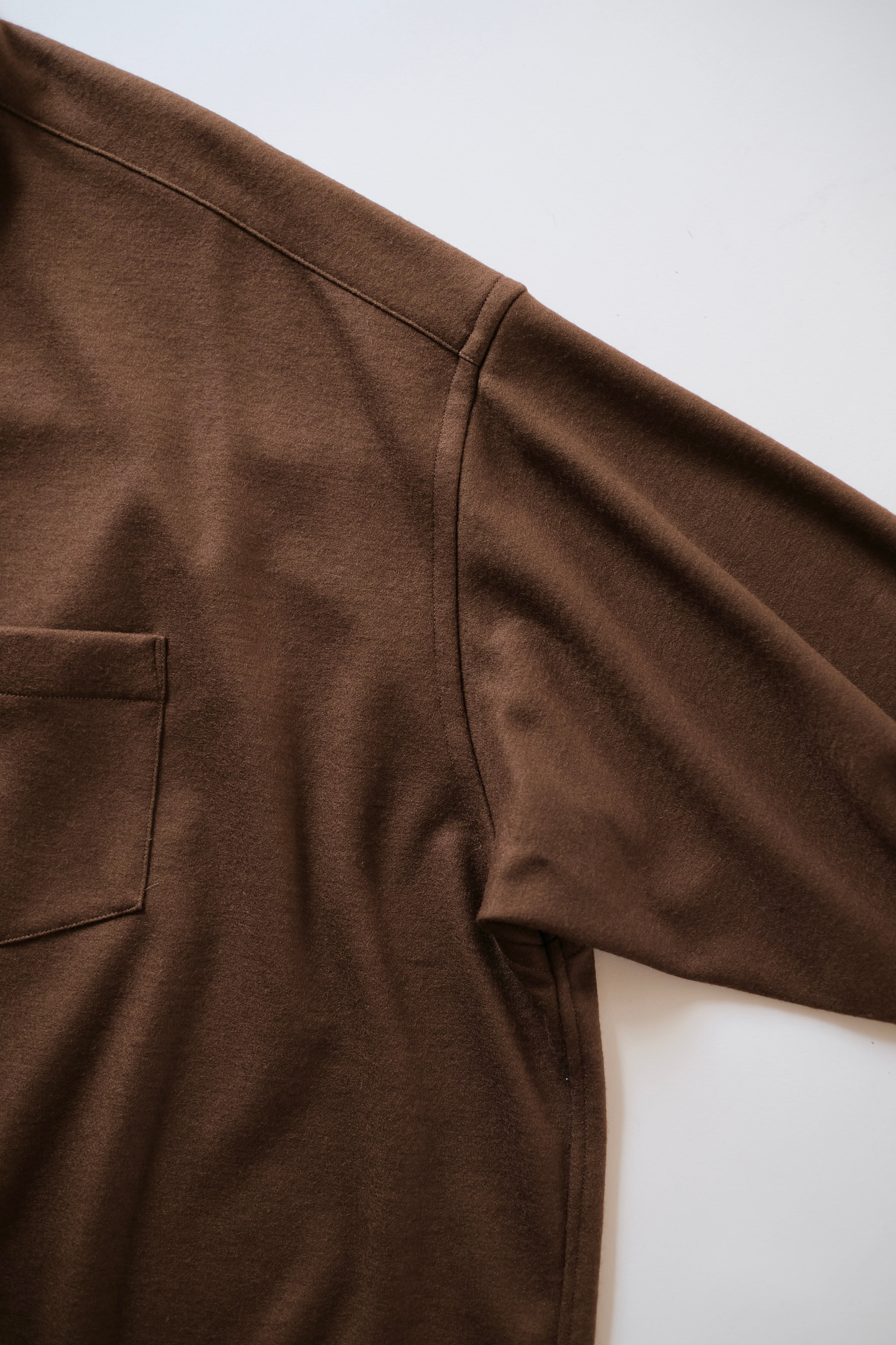 上質なウールで編み上げたスムースを高圧でミルド加工しフランネルのように仕上げた圧縮ウールスムース。