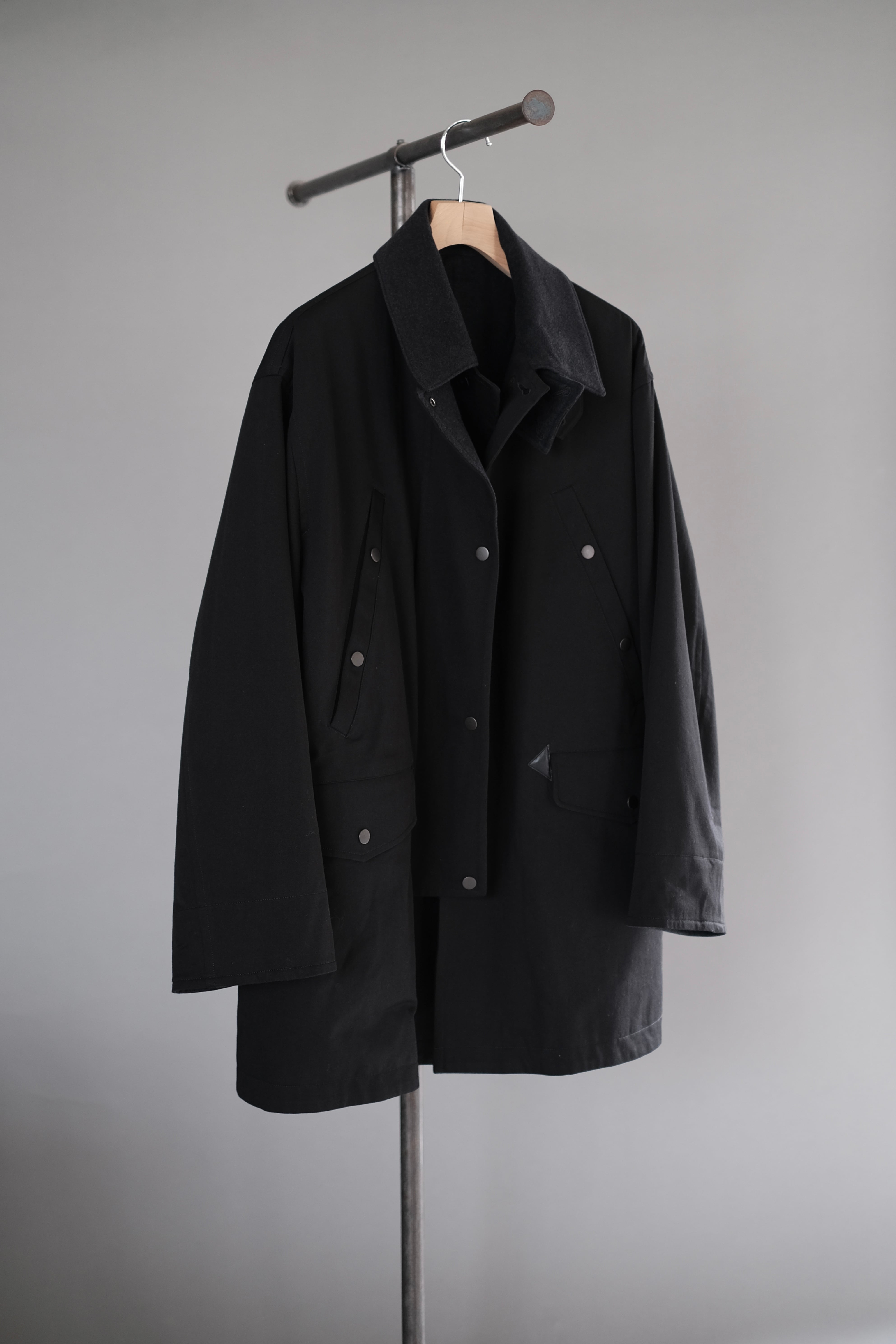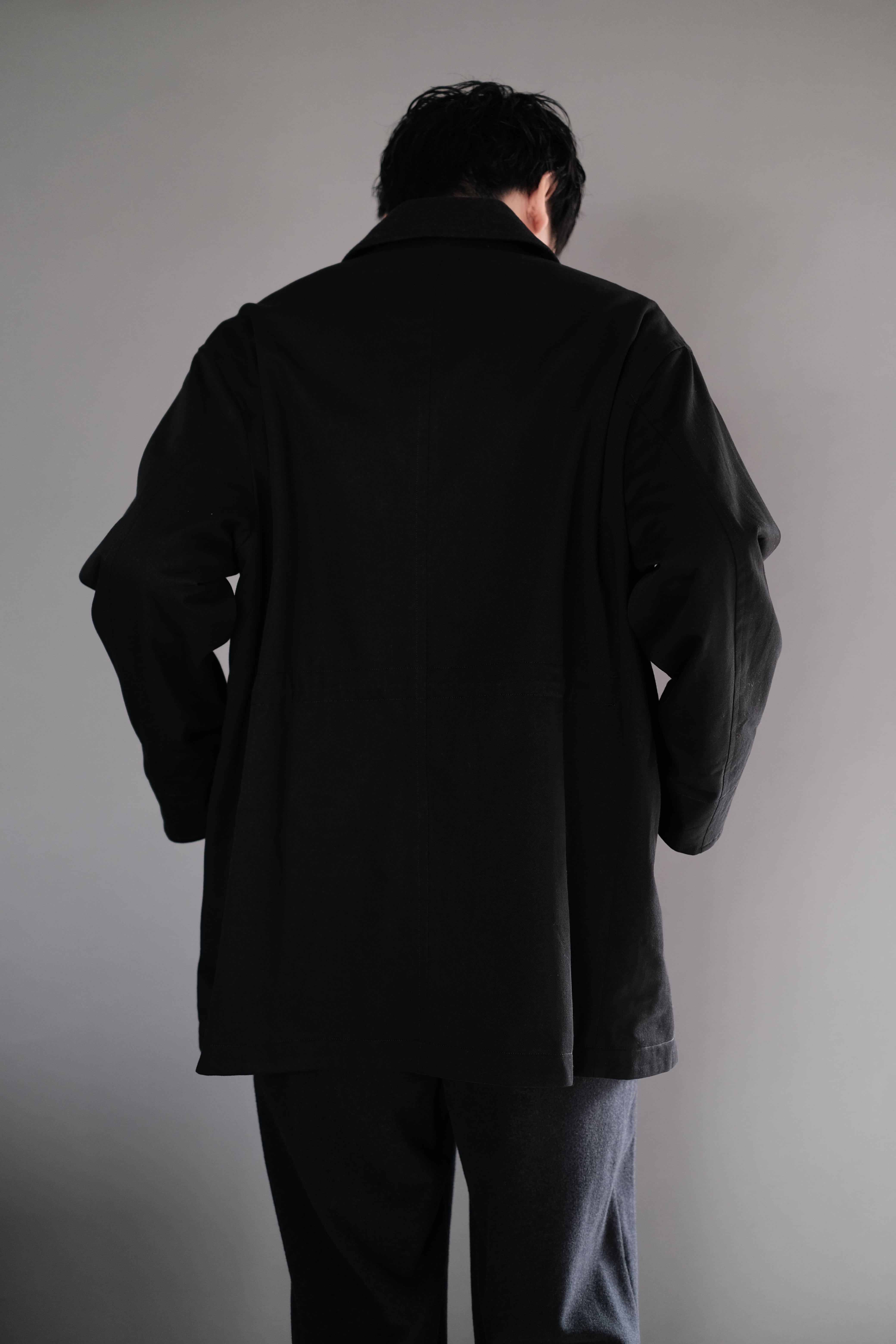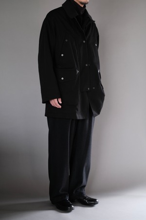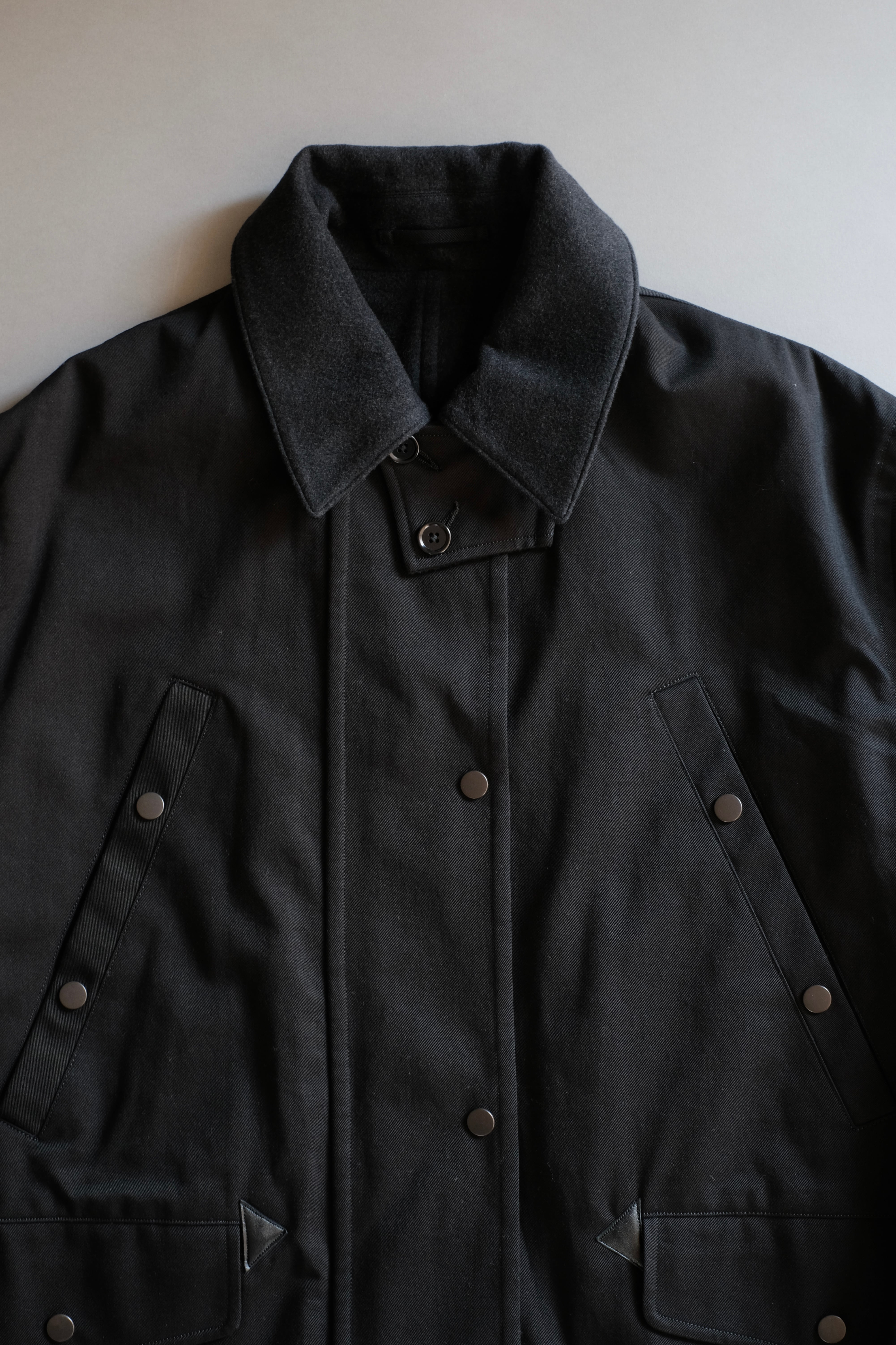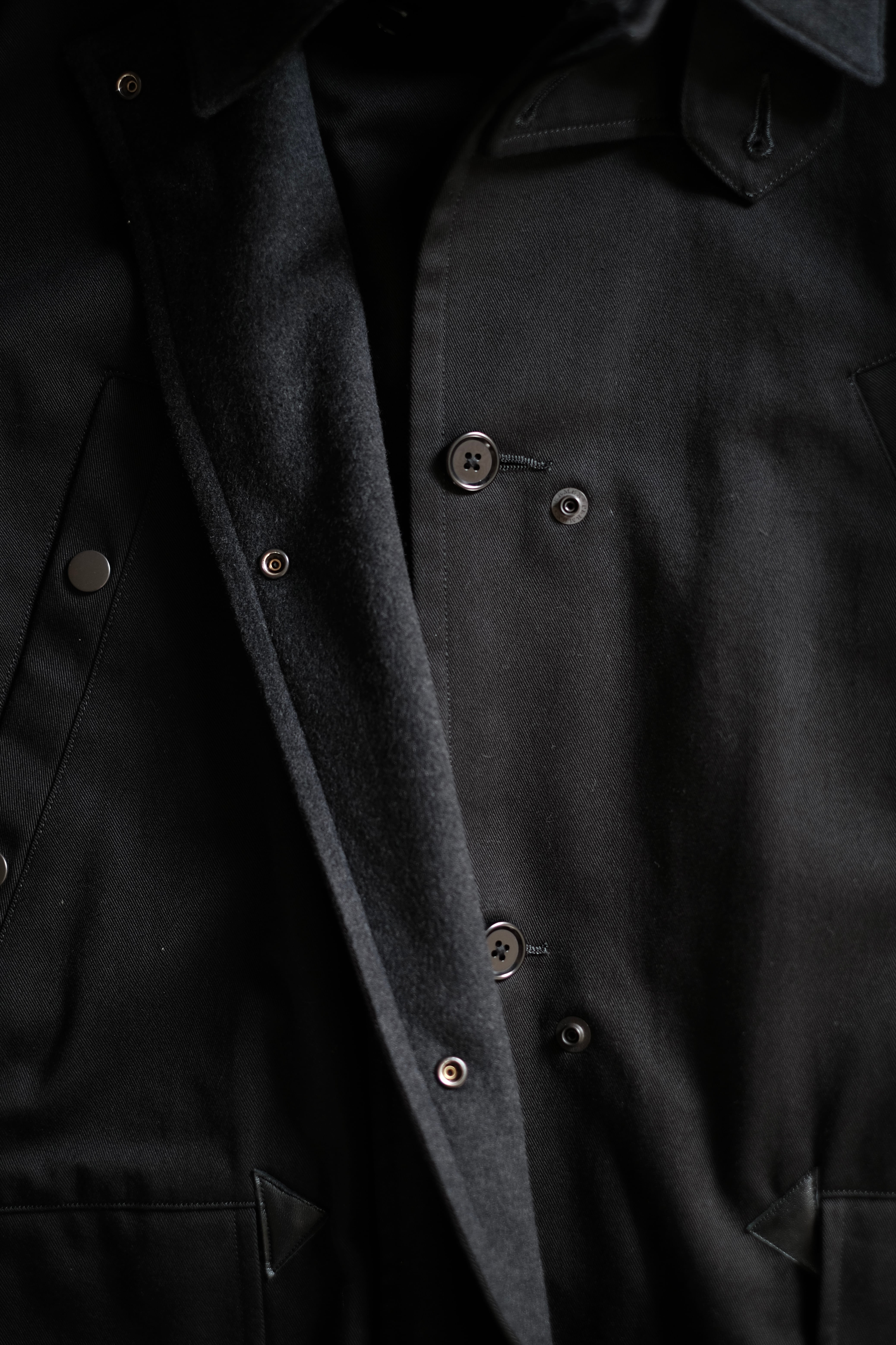 フライトジャケットやフィールドコートなどと、ハンティングジャケットの要素をミックスしたミドルレングスのミリタリーコート。