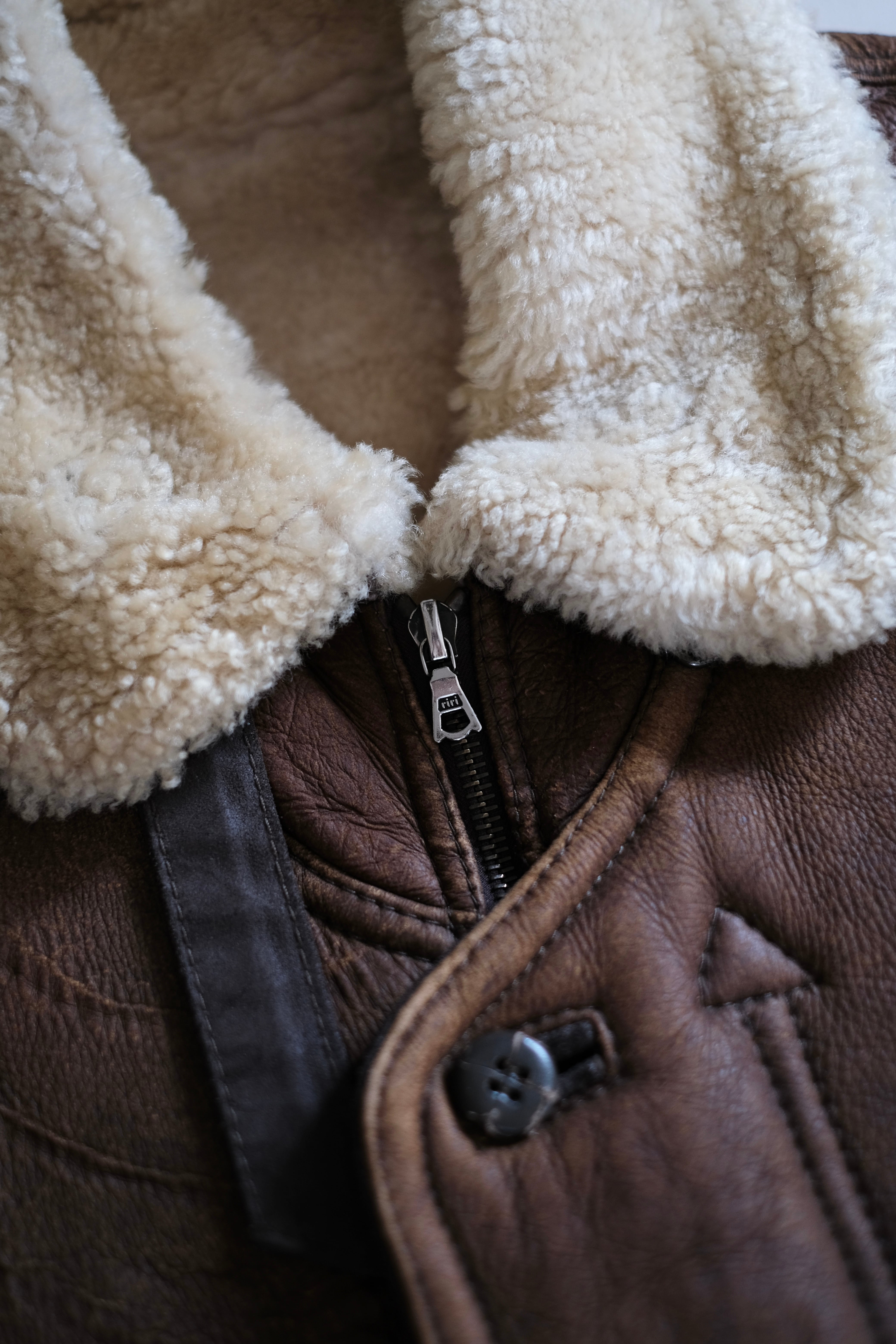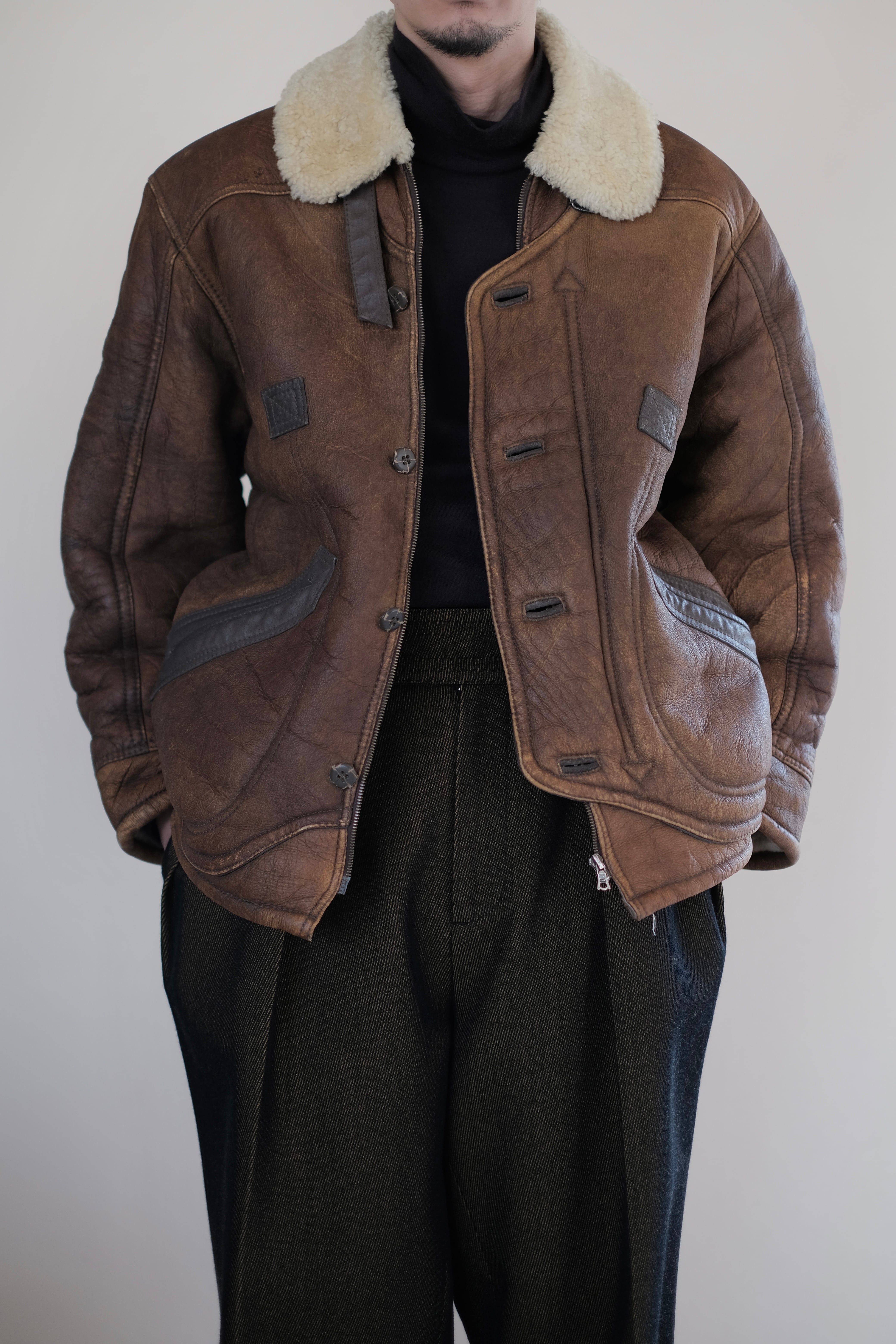 B-3タイプのフライトジャケットを思わせるリアルムートンジャケット。