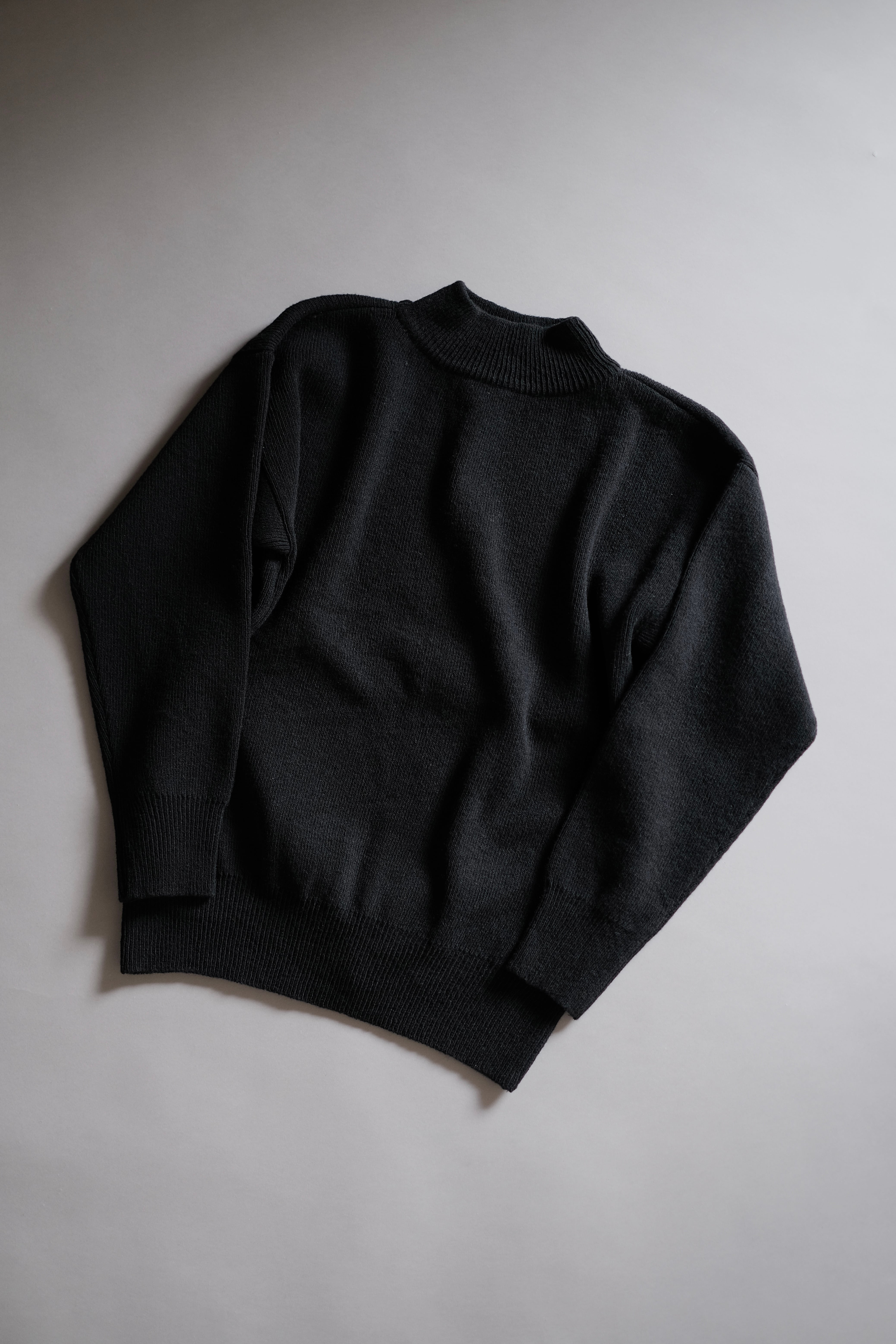 アウターインに着る防寒用として作られる軍物のセーターは、シルエットが細身で長いが、これはゆったり着られるサイズ感に仕上げている。