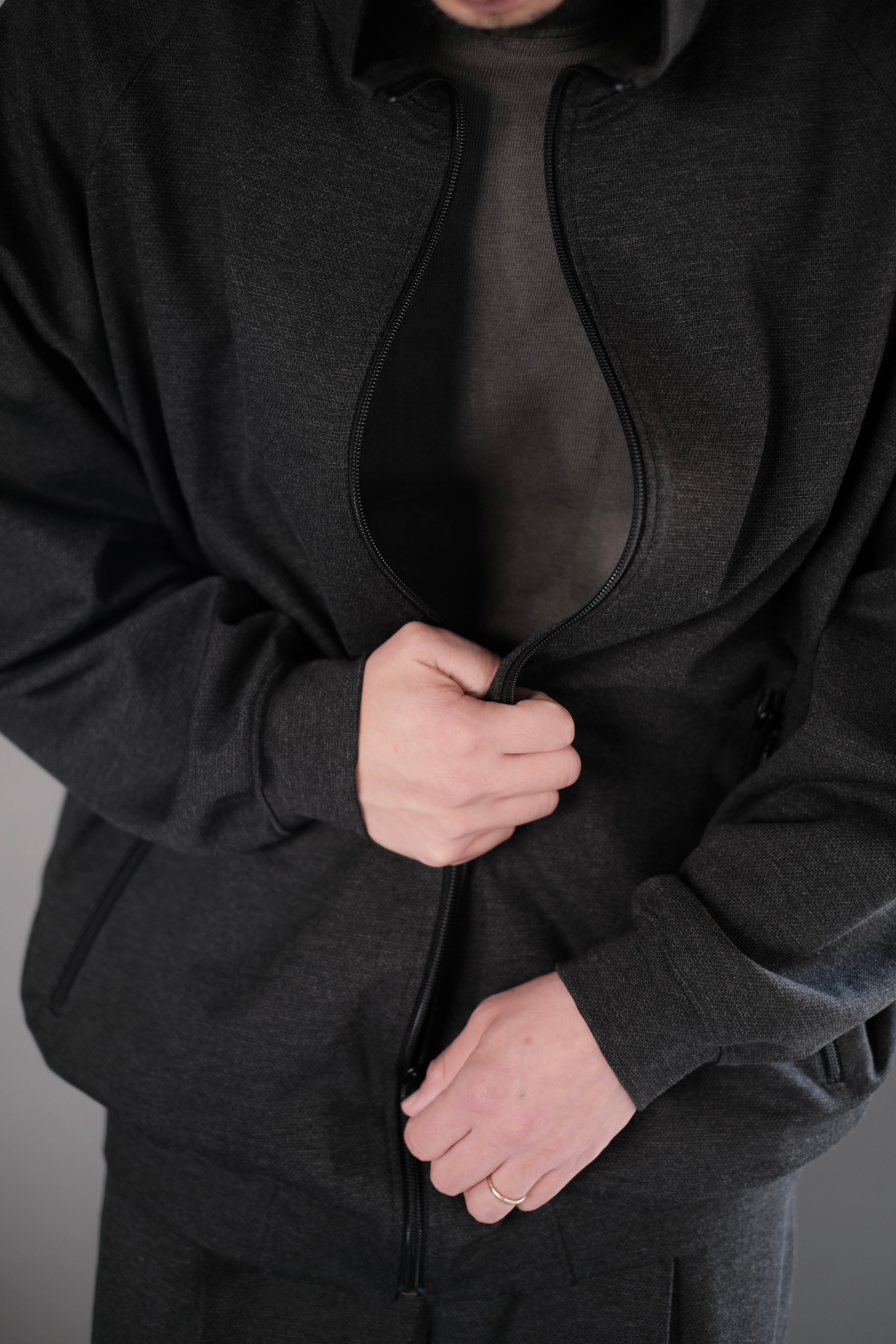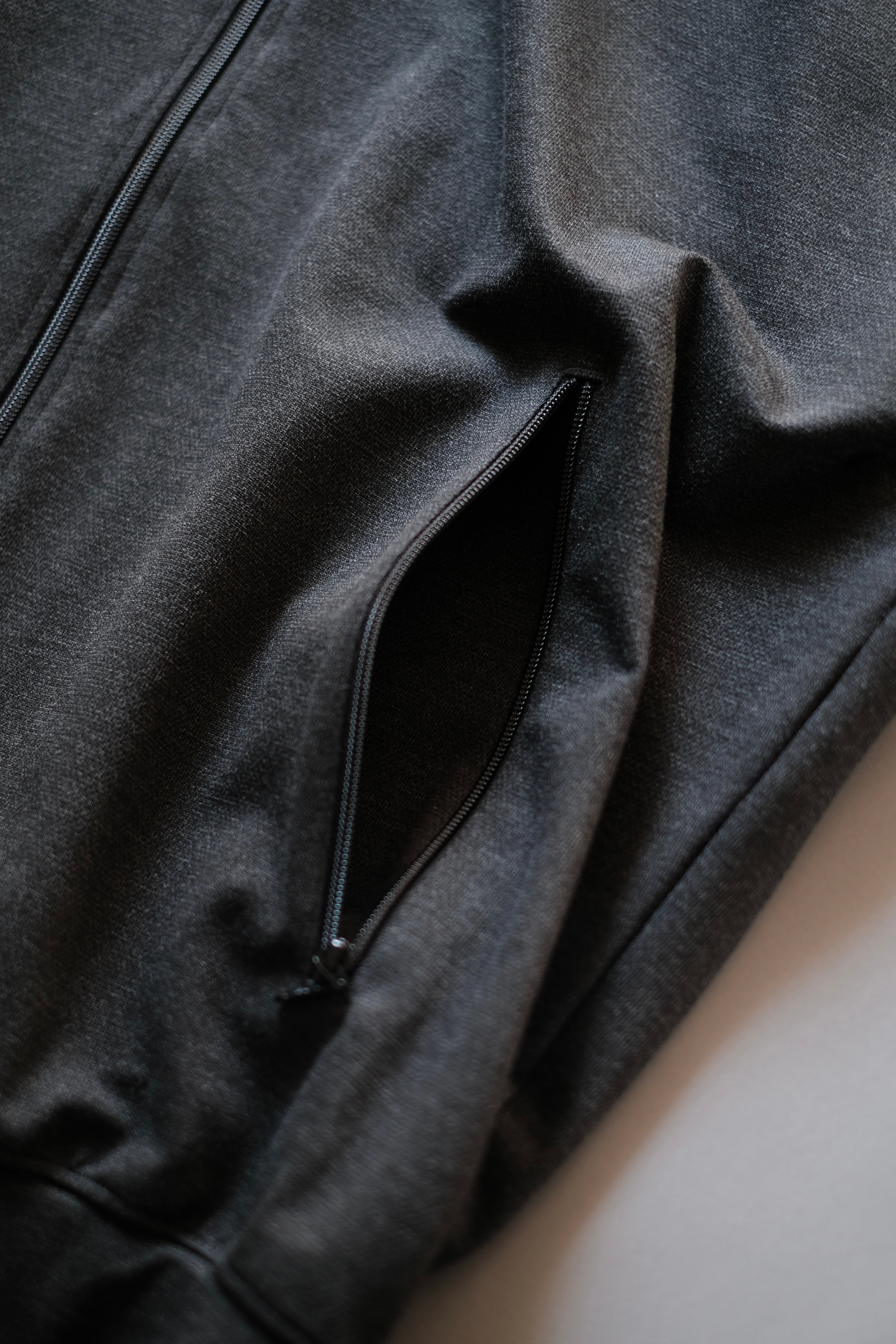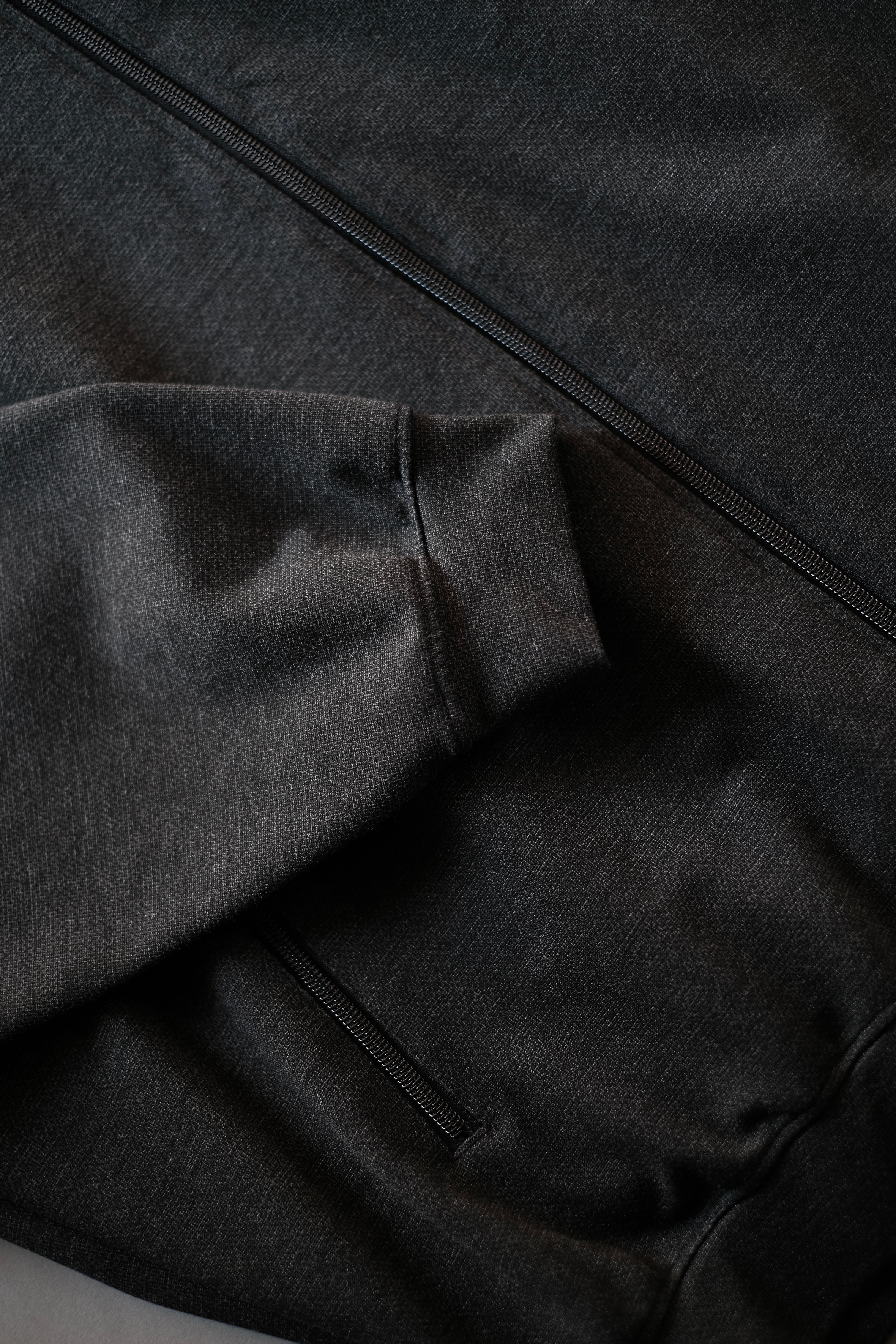 スタンドカラーとミニマルなフルジップデザインを組み合わせ、素材の上品さと軽快な着心地を兼ね備えた一着。