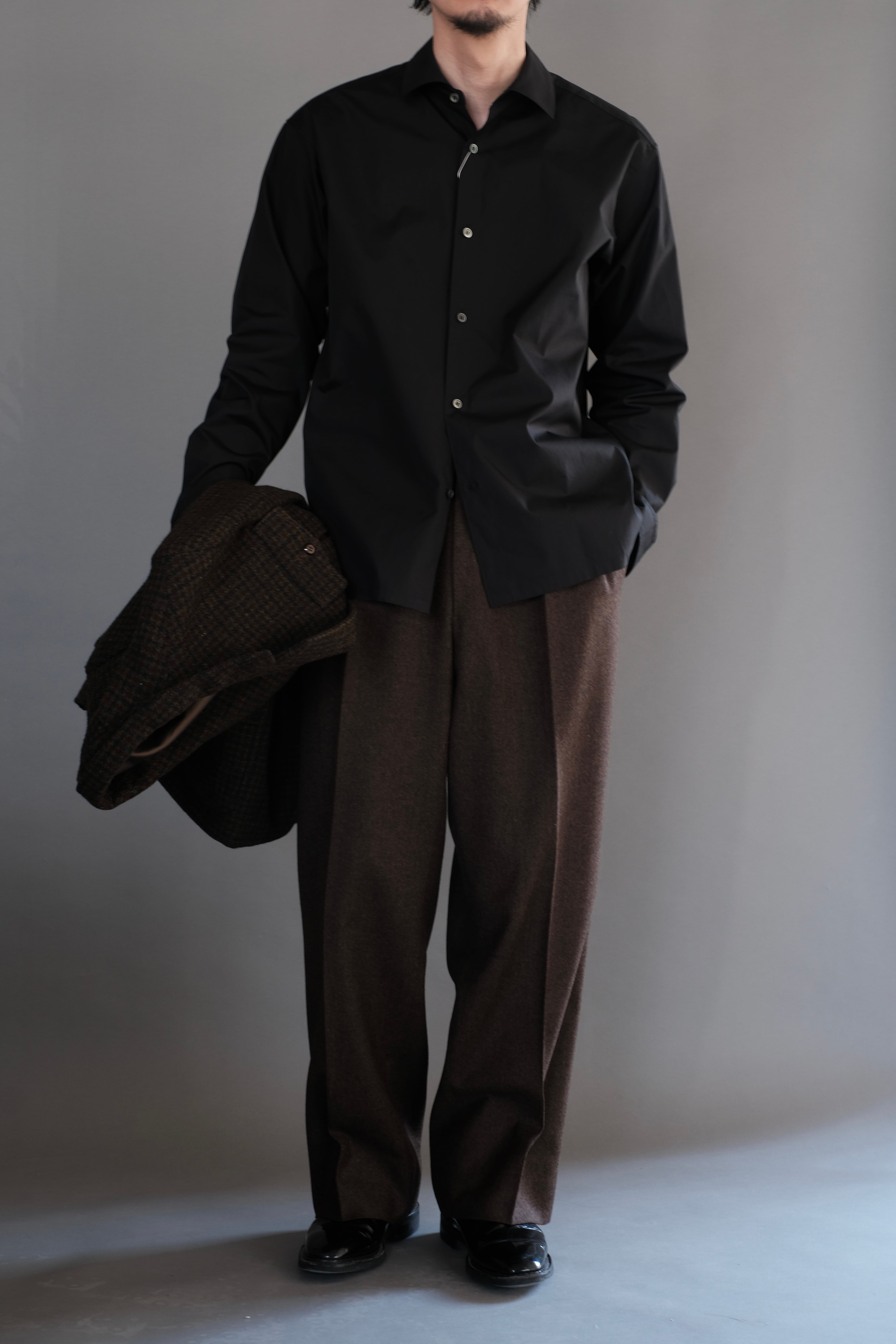 レザーやデニム、ニットウェアを強みとしたコレクションを展開しており、イタリアのインカス社のタンニンレザーやトスカーナのムートンといった上質な素材に、京都の染めや伝統技法を絡めたプロダクトを製作。