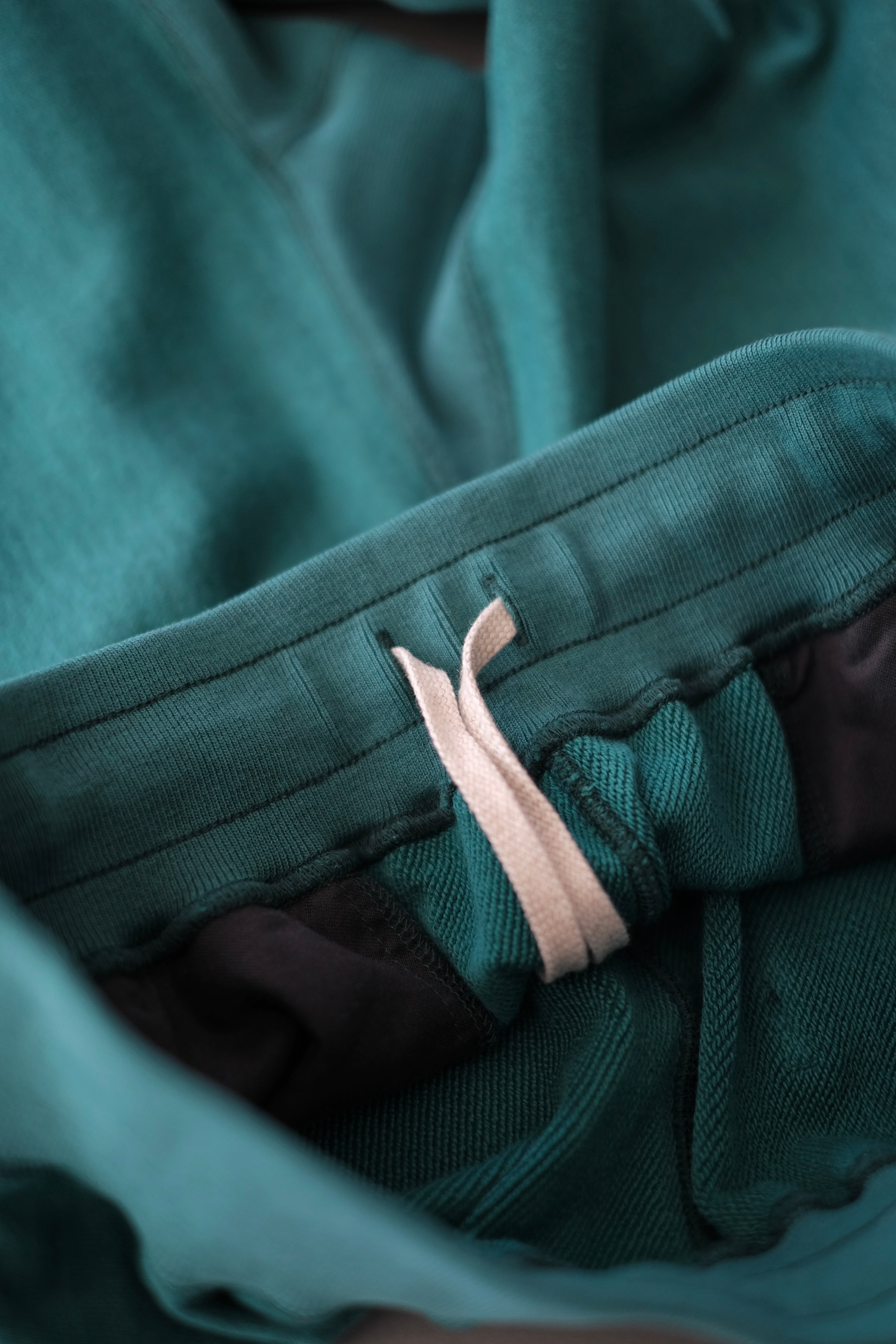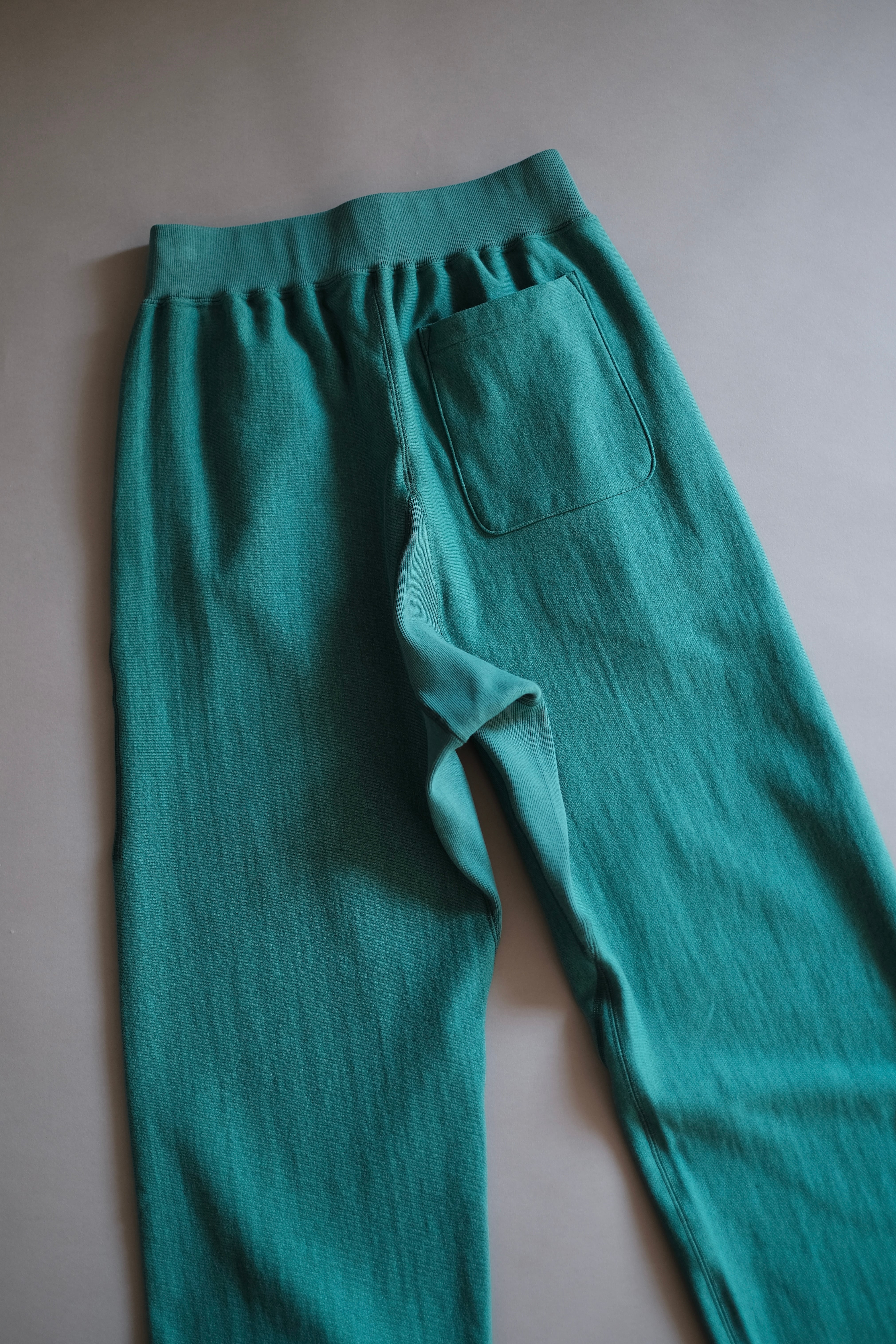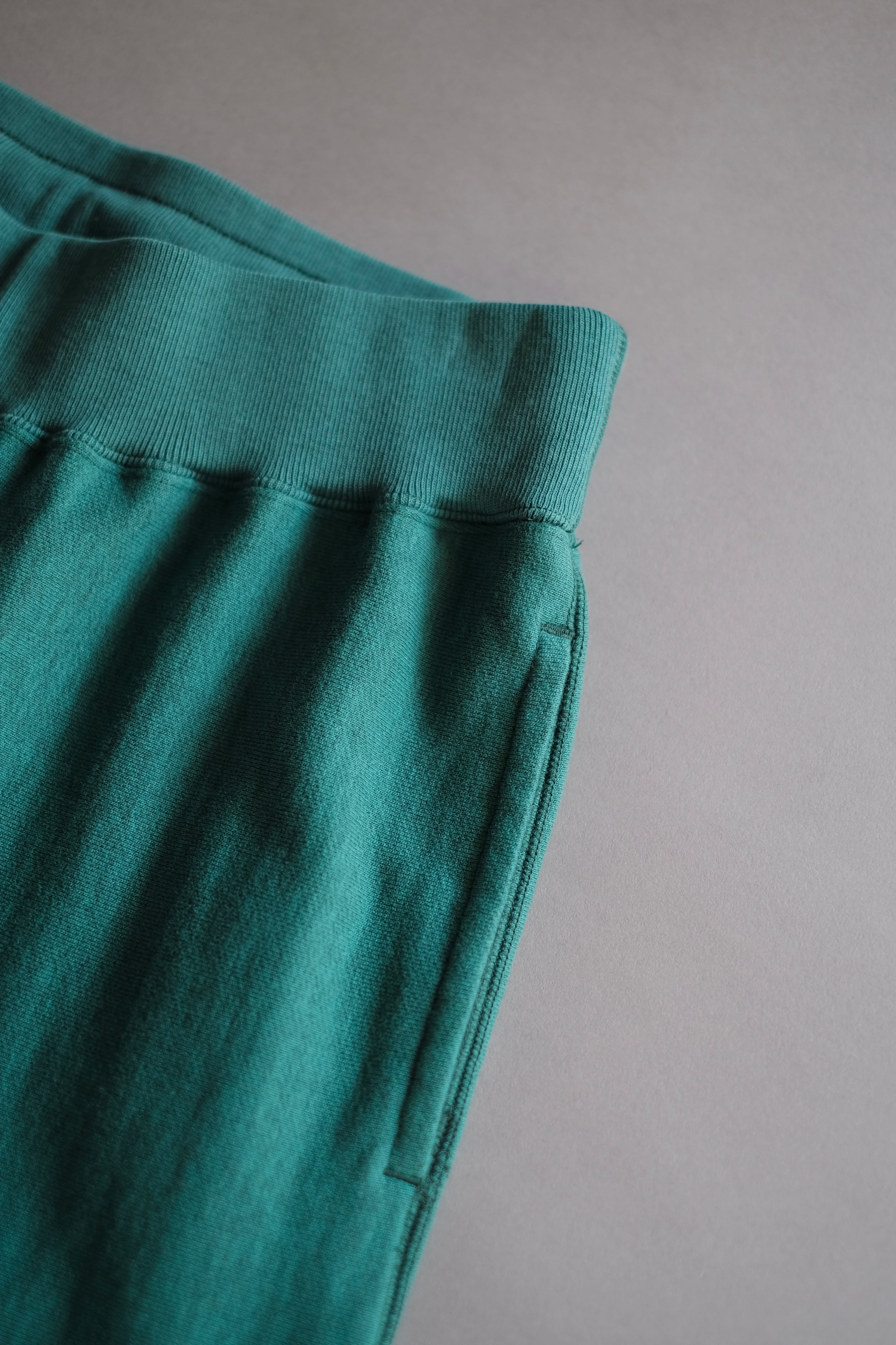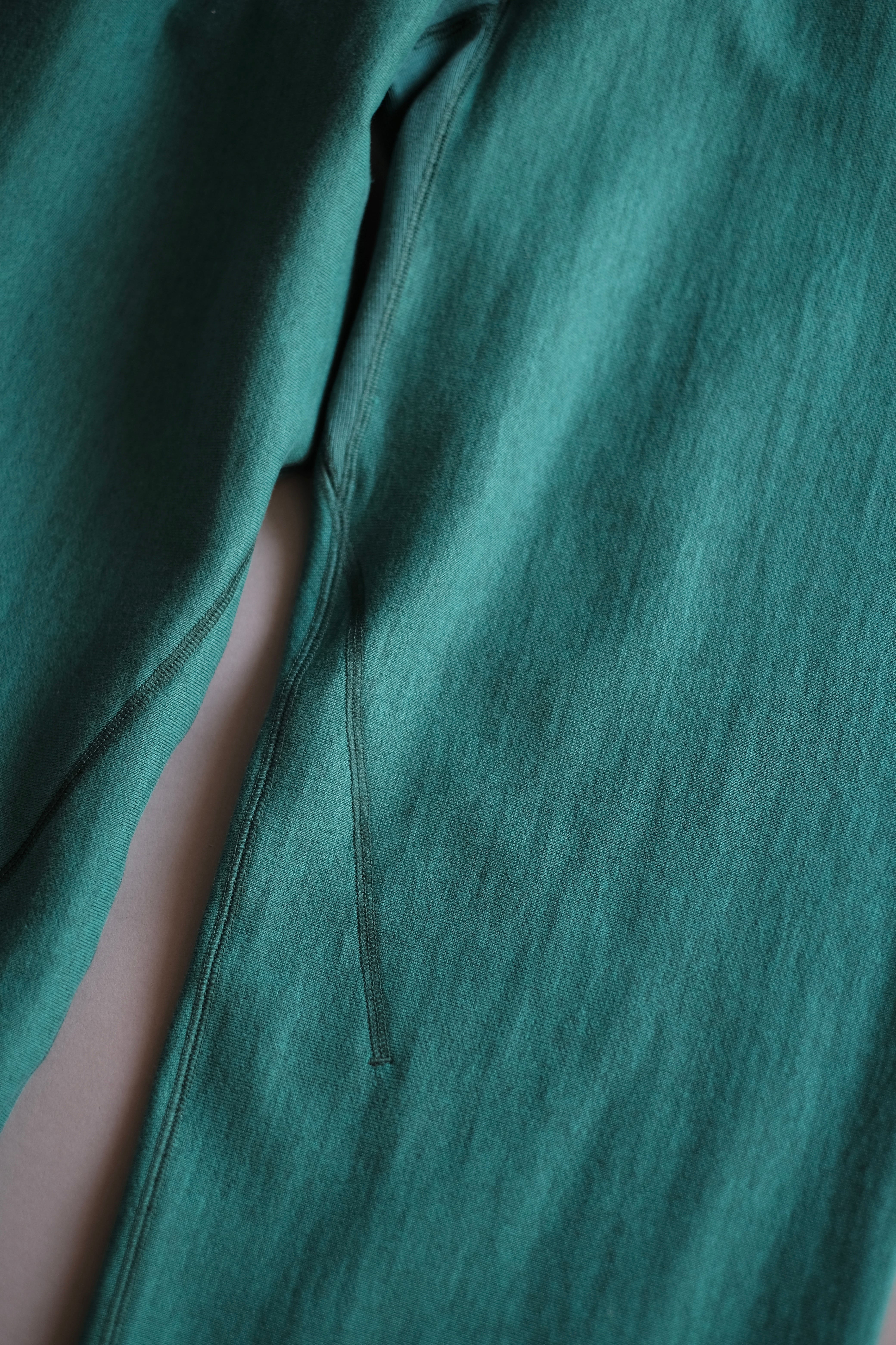 リブの切り替えやステッチワークでアクセントをつけたスウェットパンツは、アウトシームを排除した直線的なパターンで、スラックスかのようなシルエットが特徴。