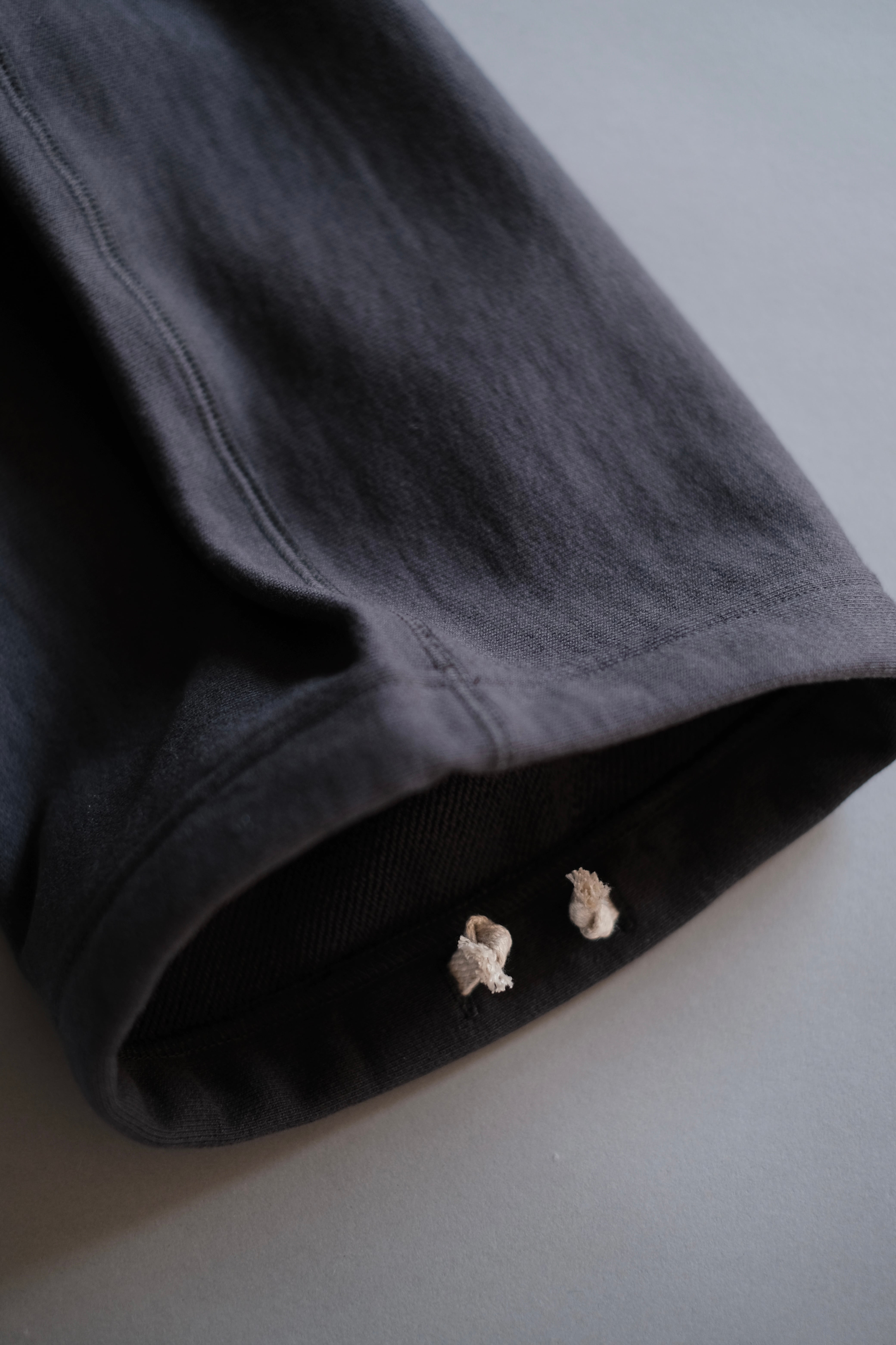 表糸に粗挽き杢グレーの強撚糸、裏糸に無撚糸を使用した裏毛。