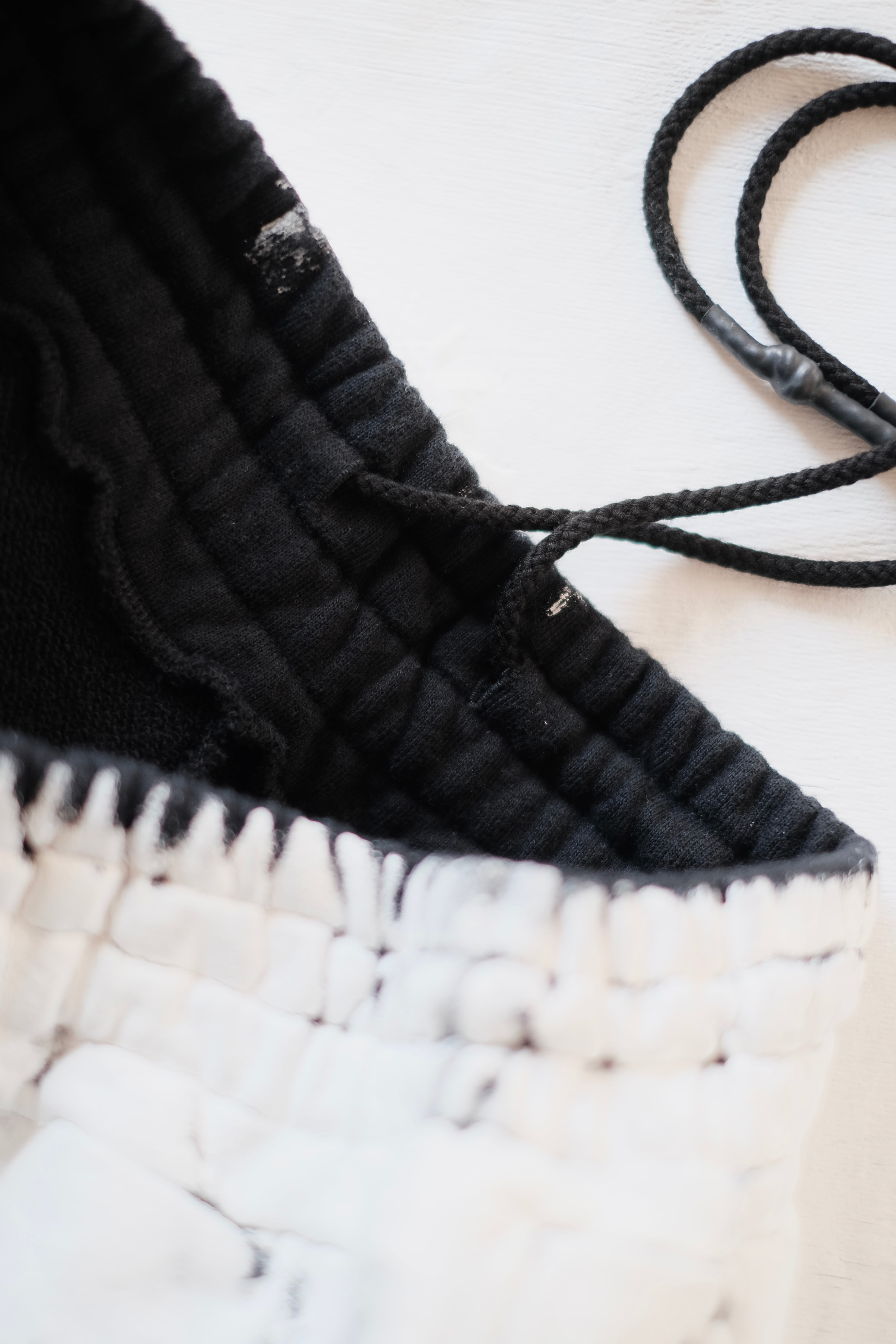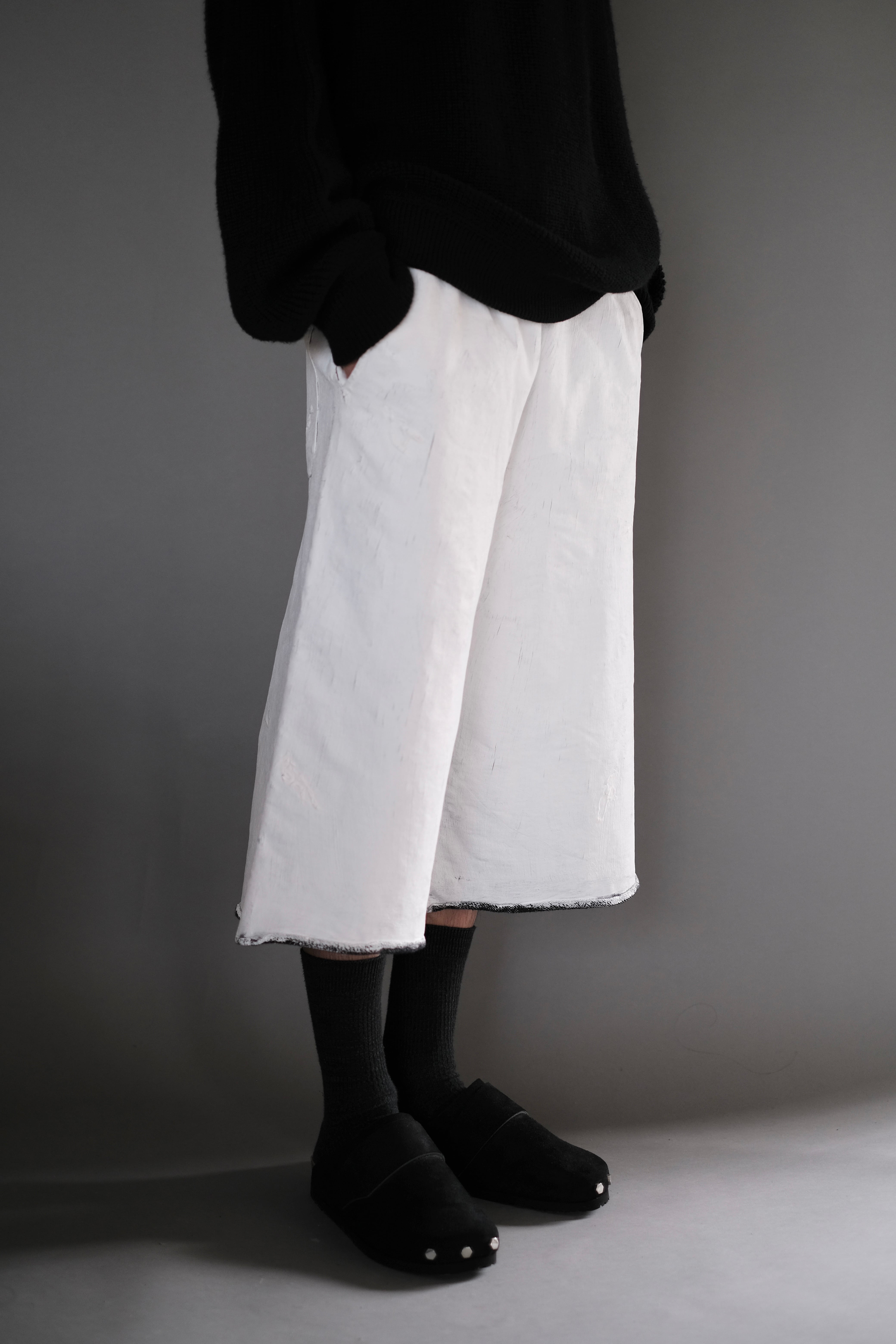 裏毛素材、ウエストゴム。