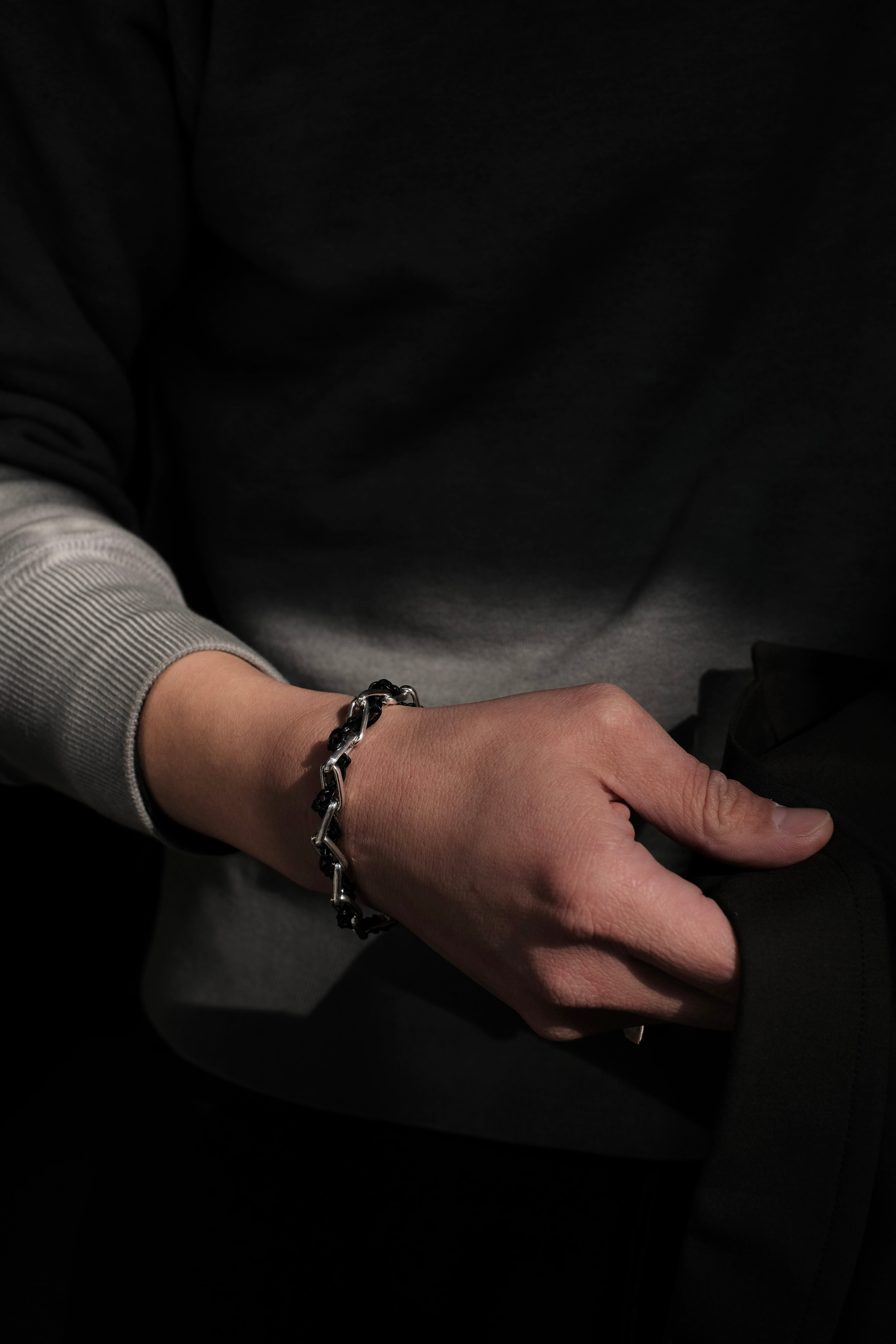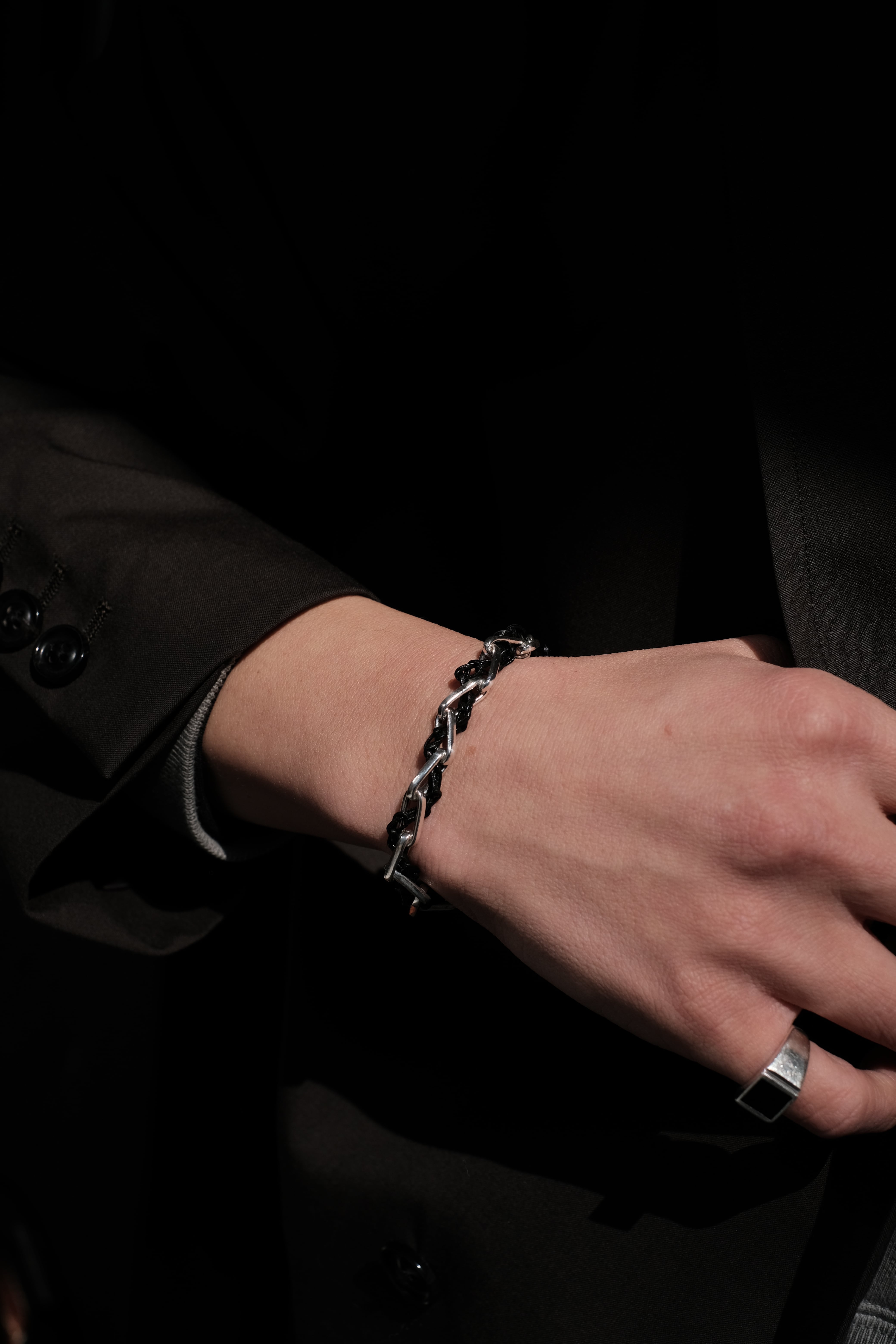 CLASSICHAINにレザーコードをオリジナルの編み方で編み込んでいます。