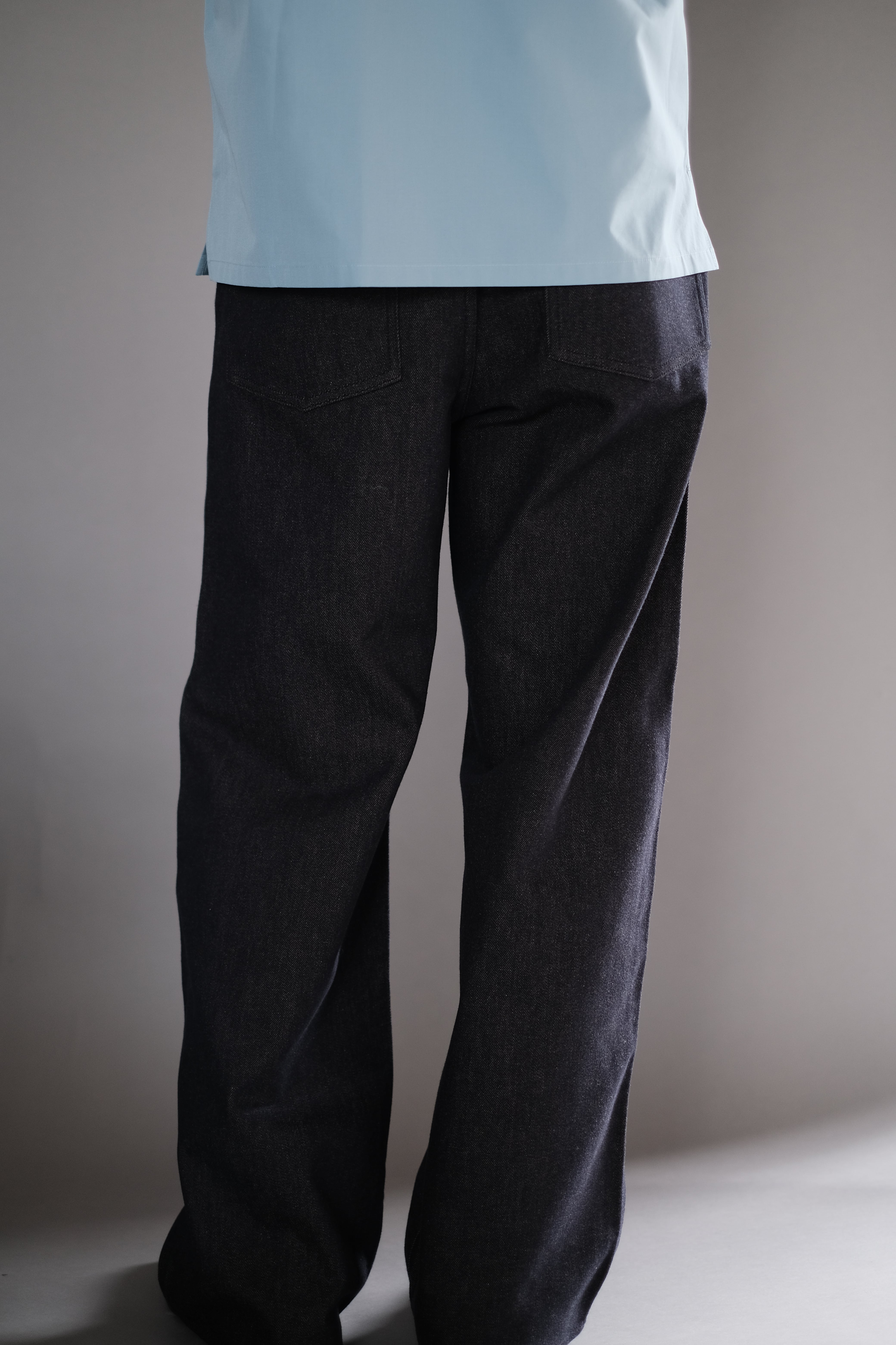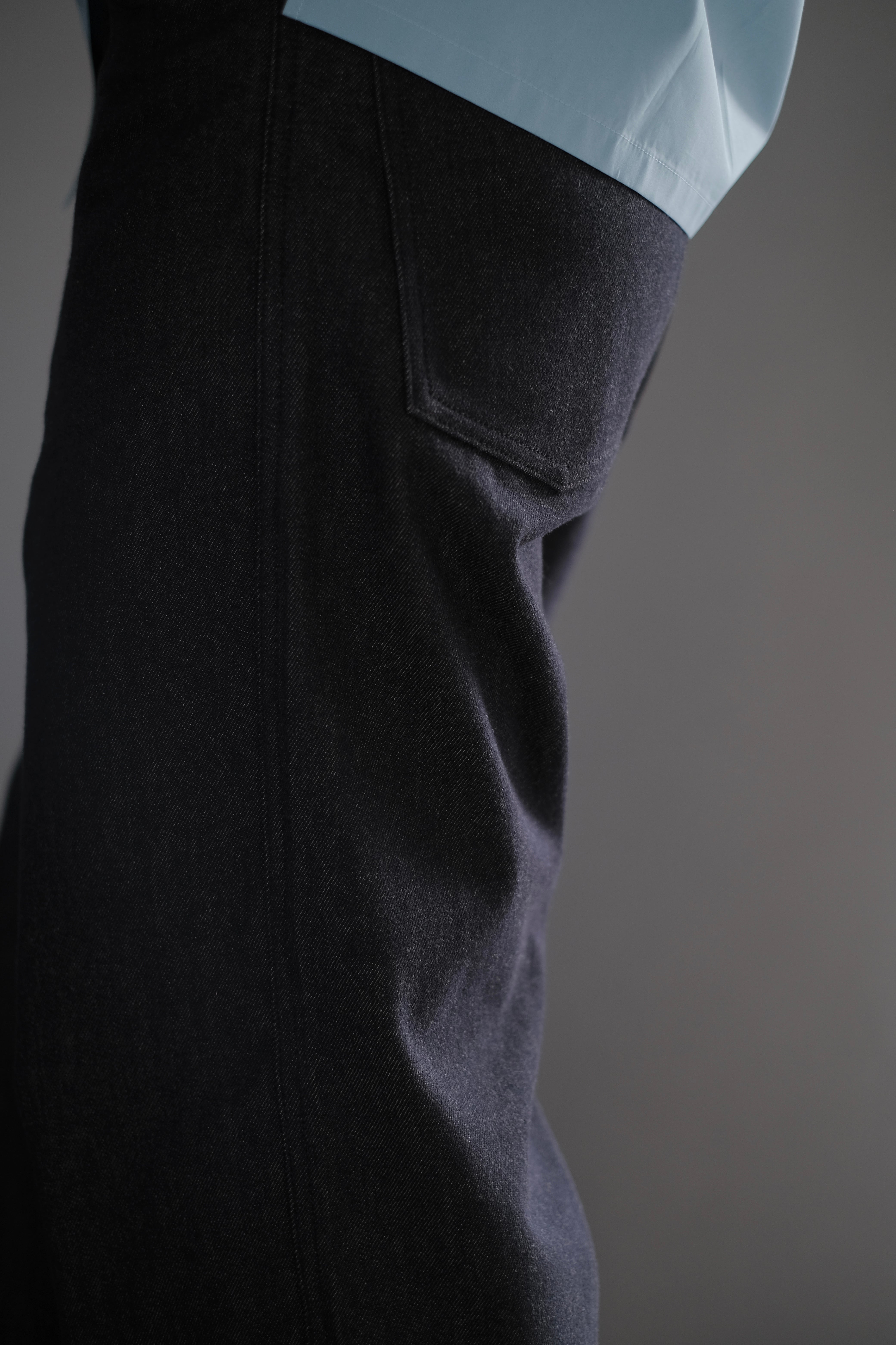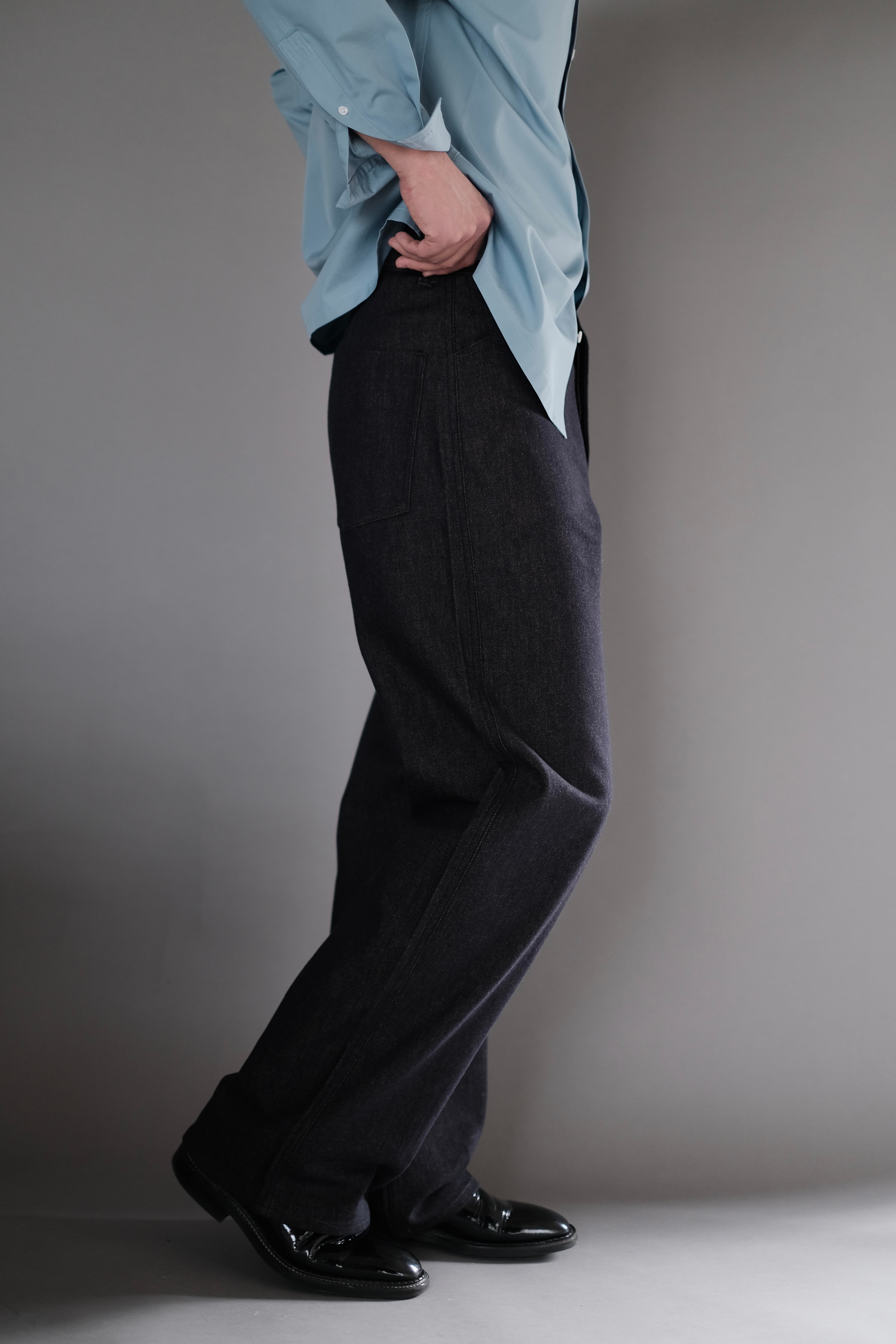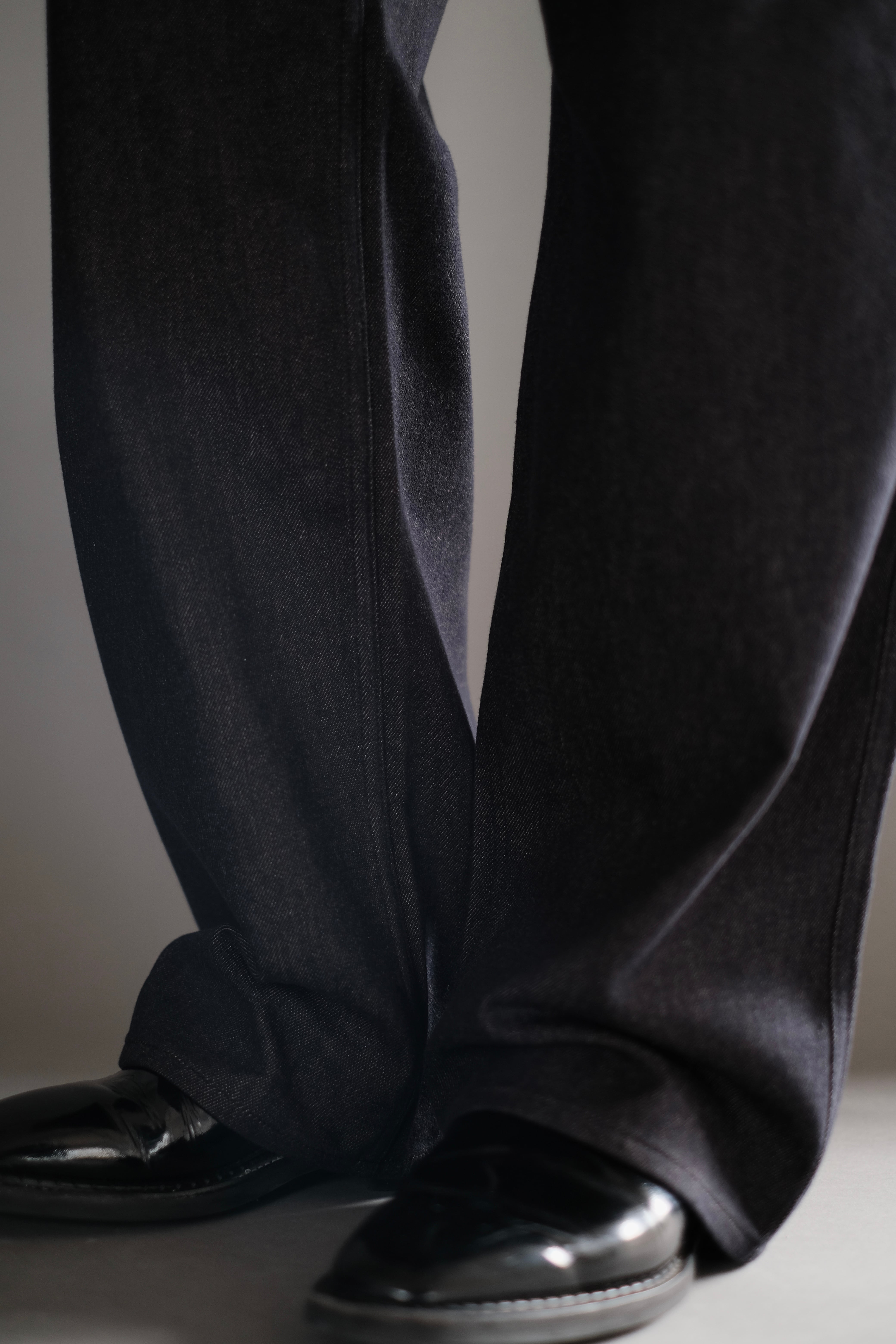カシミアとコットンをブレンドしたデニムを使用した、5ポケットのストレートトラウザーパンツ。