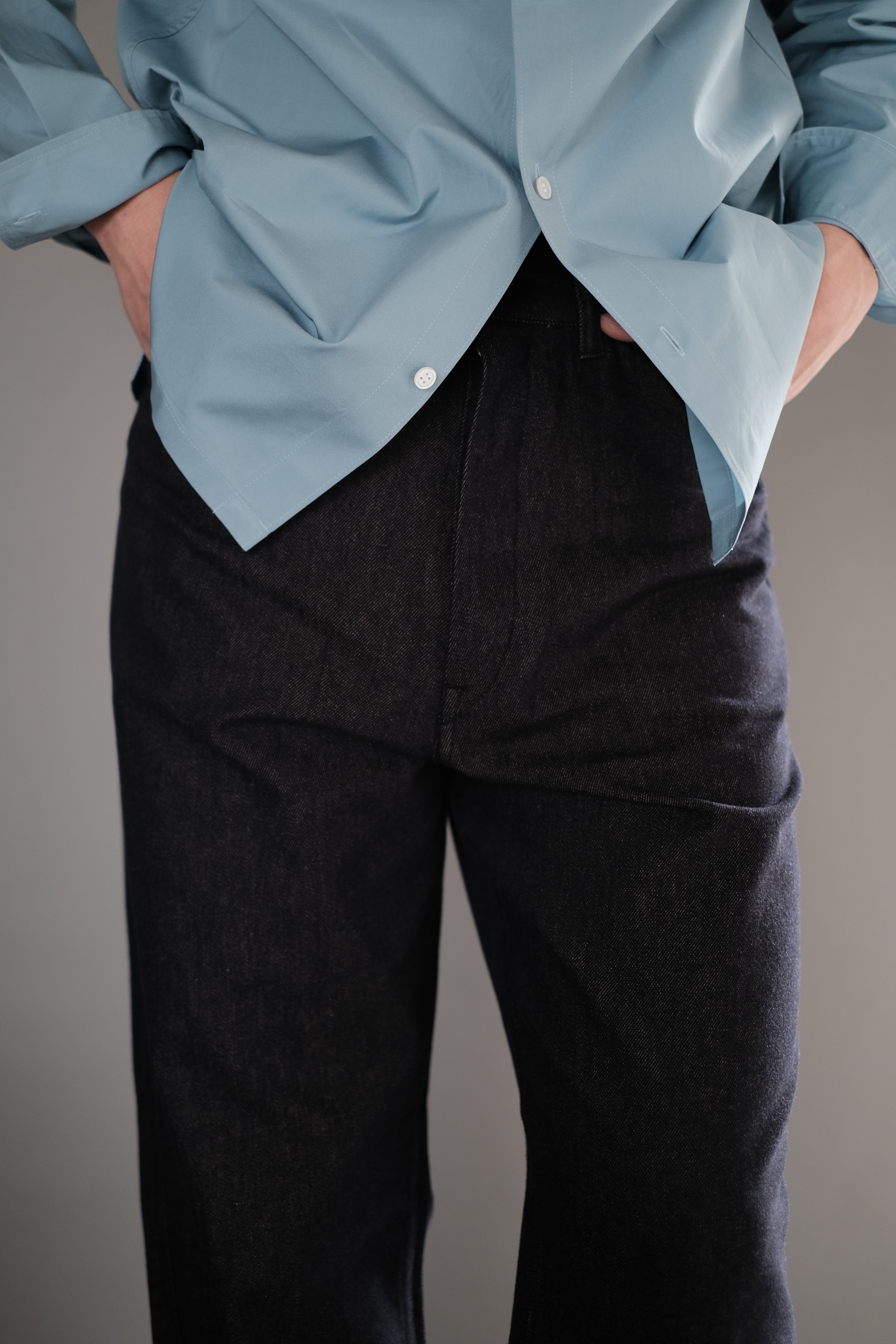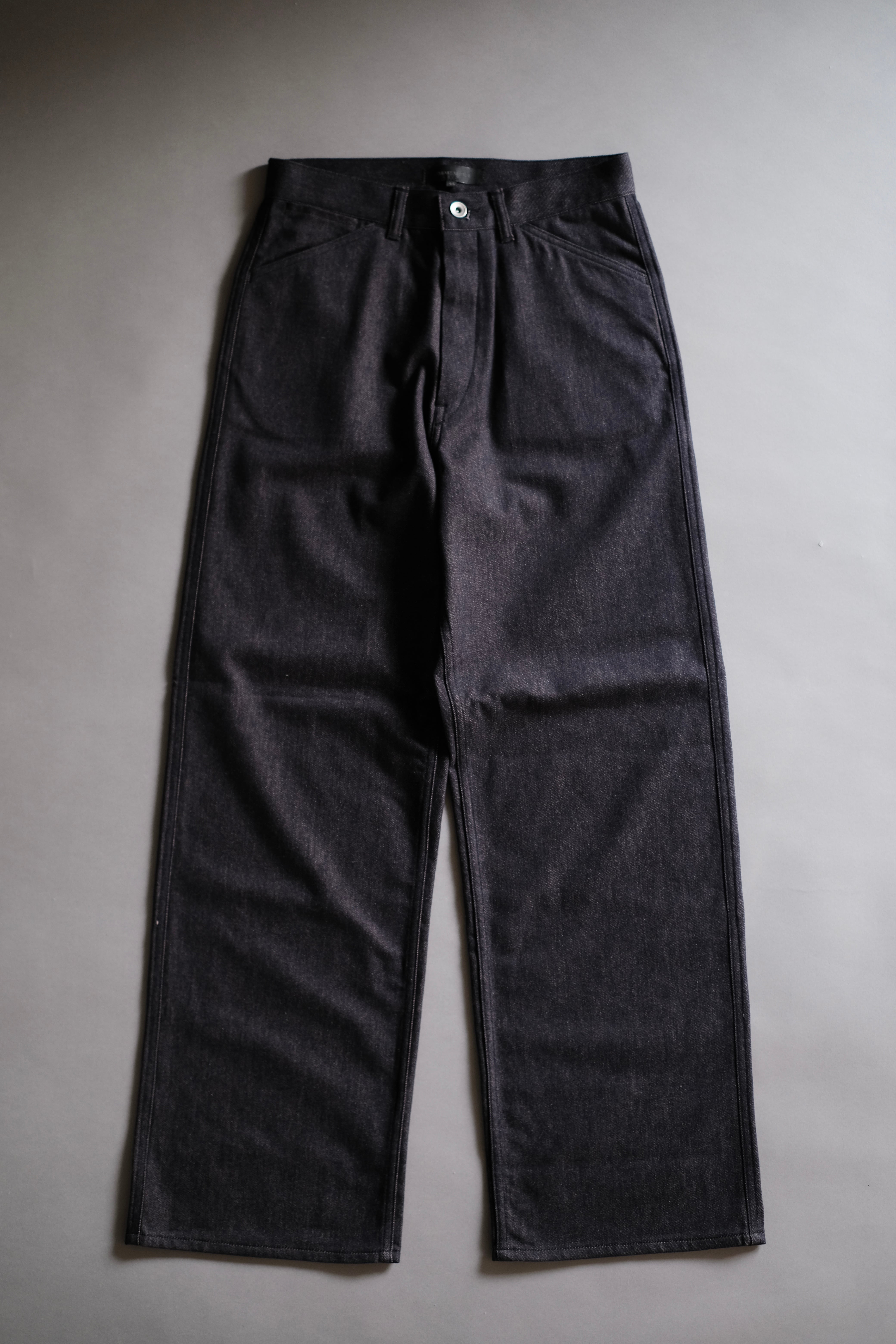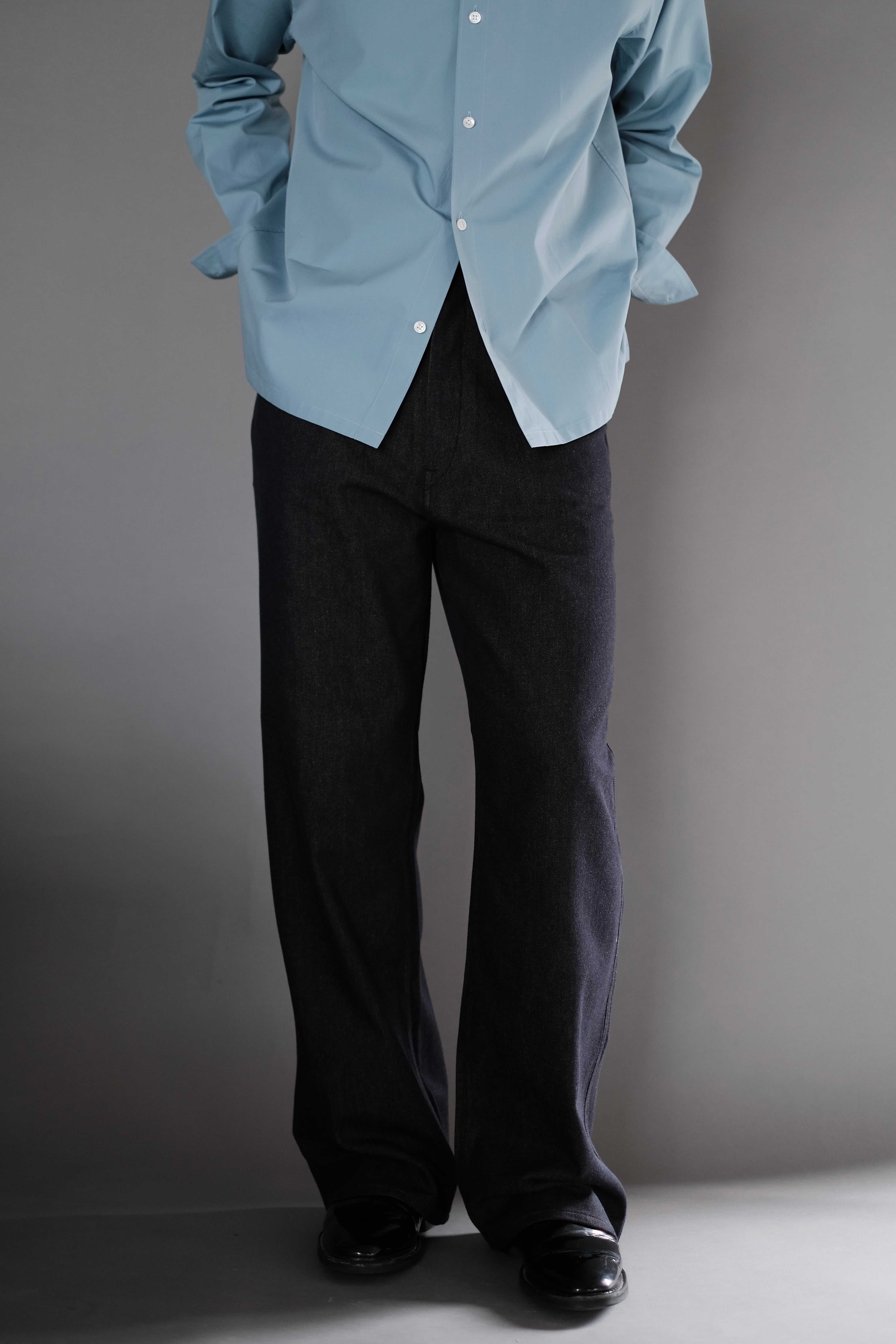 カシミアとコットンをブレンドしたデニムを使用した、5ポケットのストレートトラウザーパンツ。