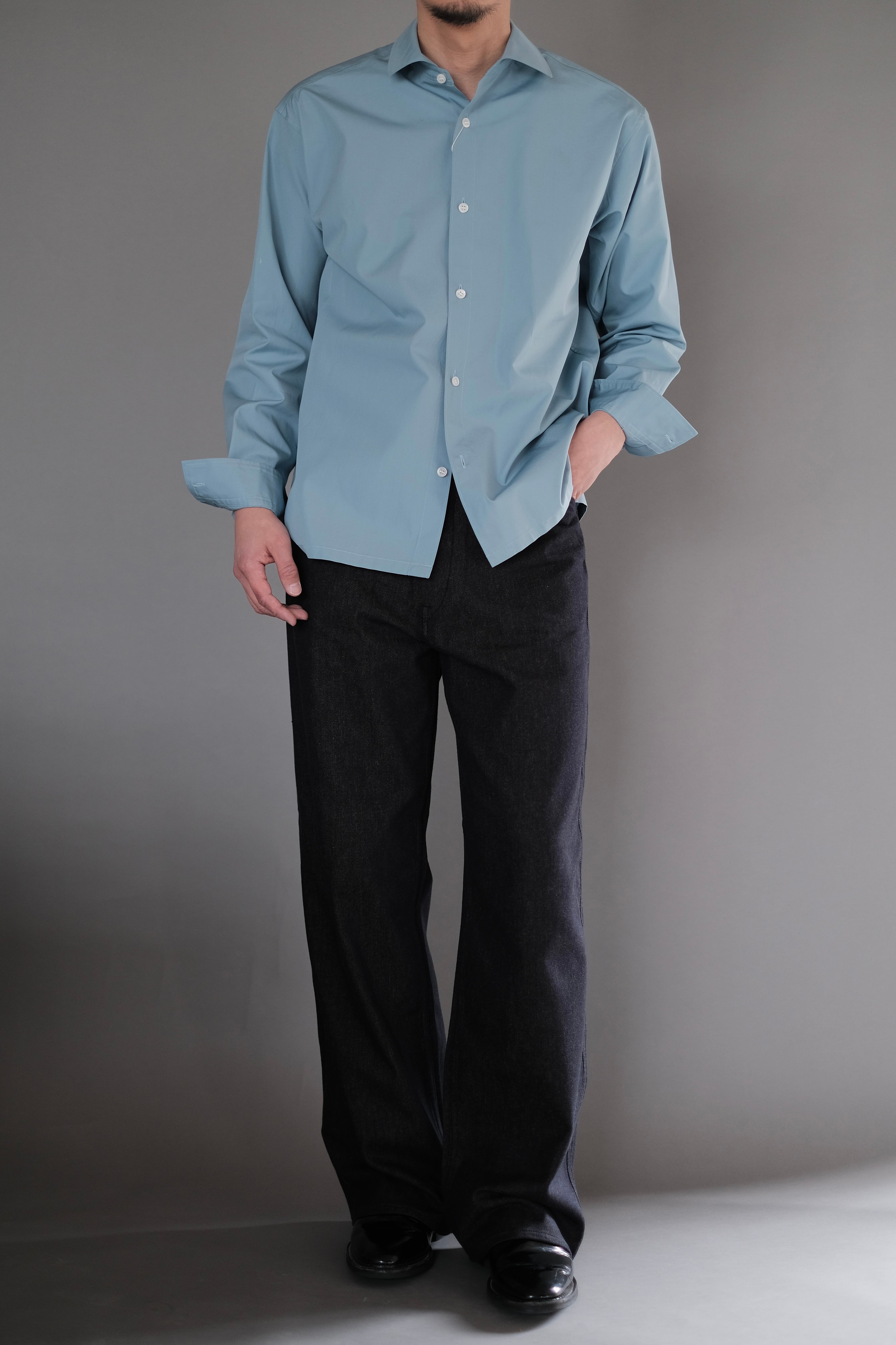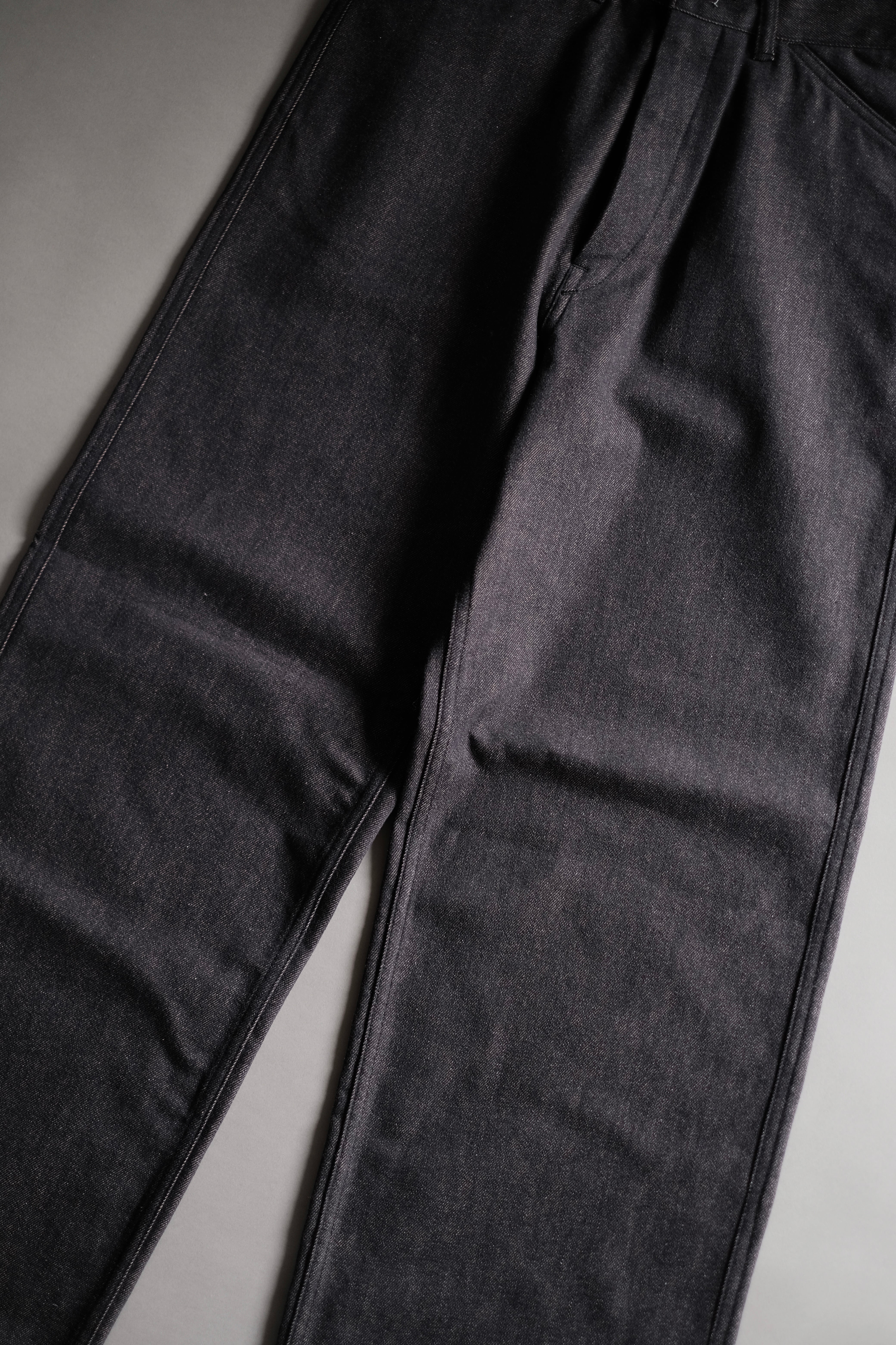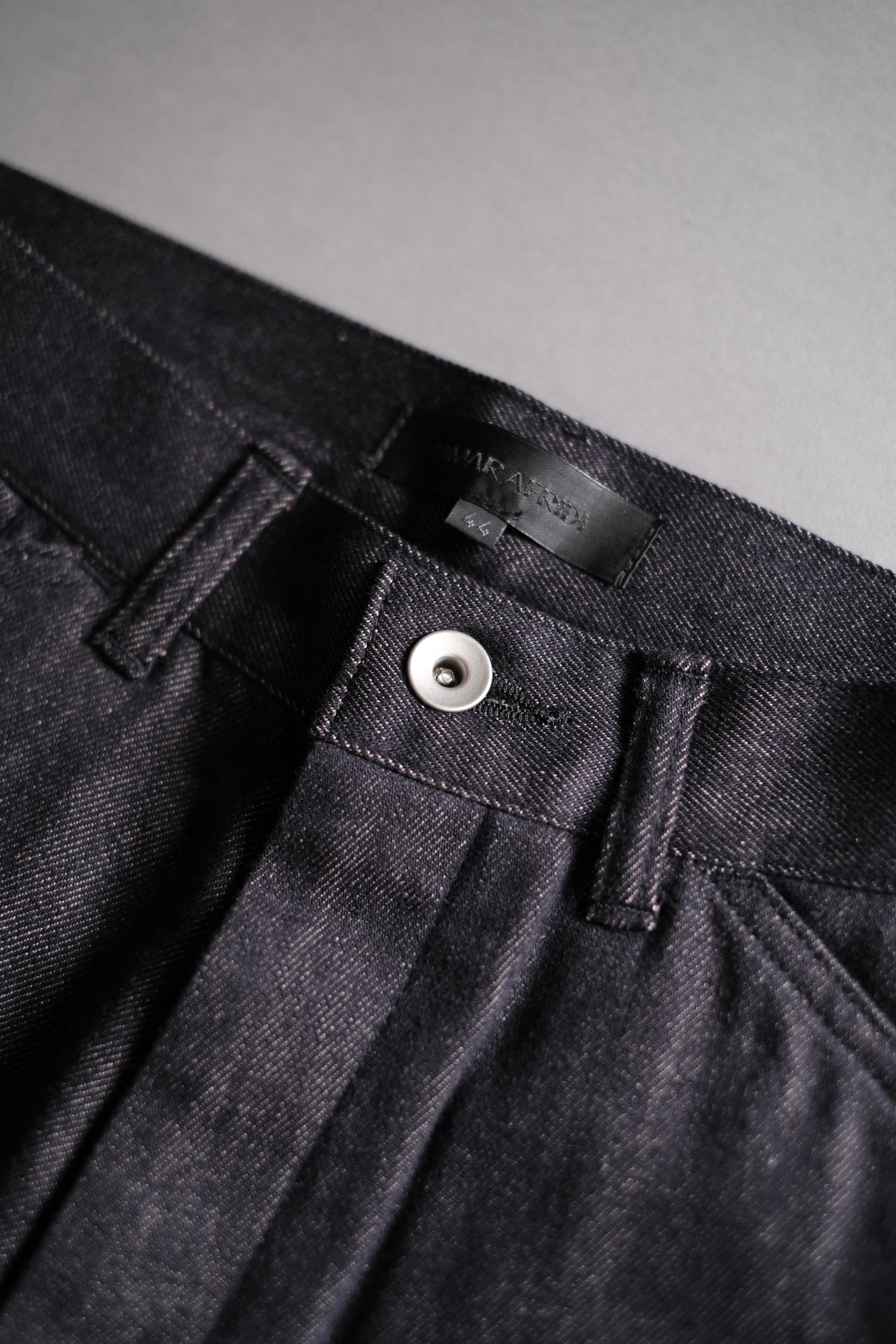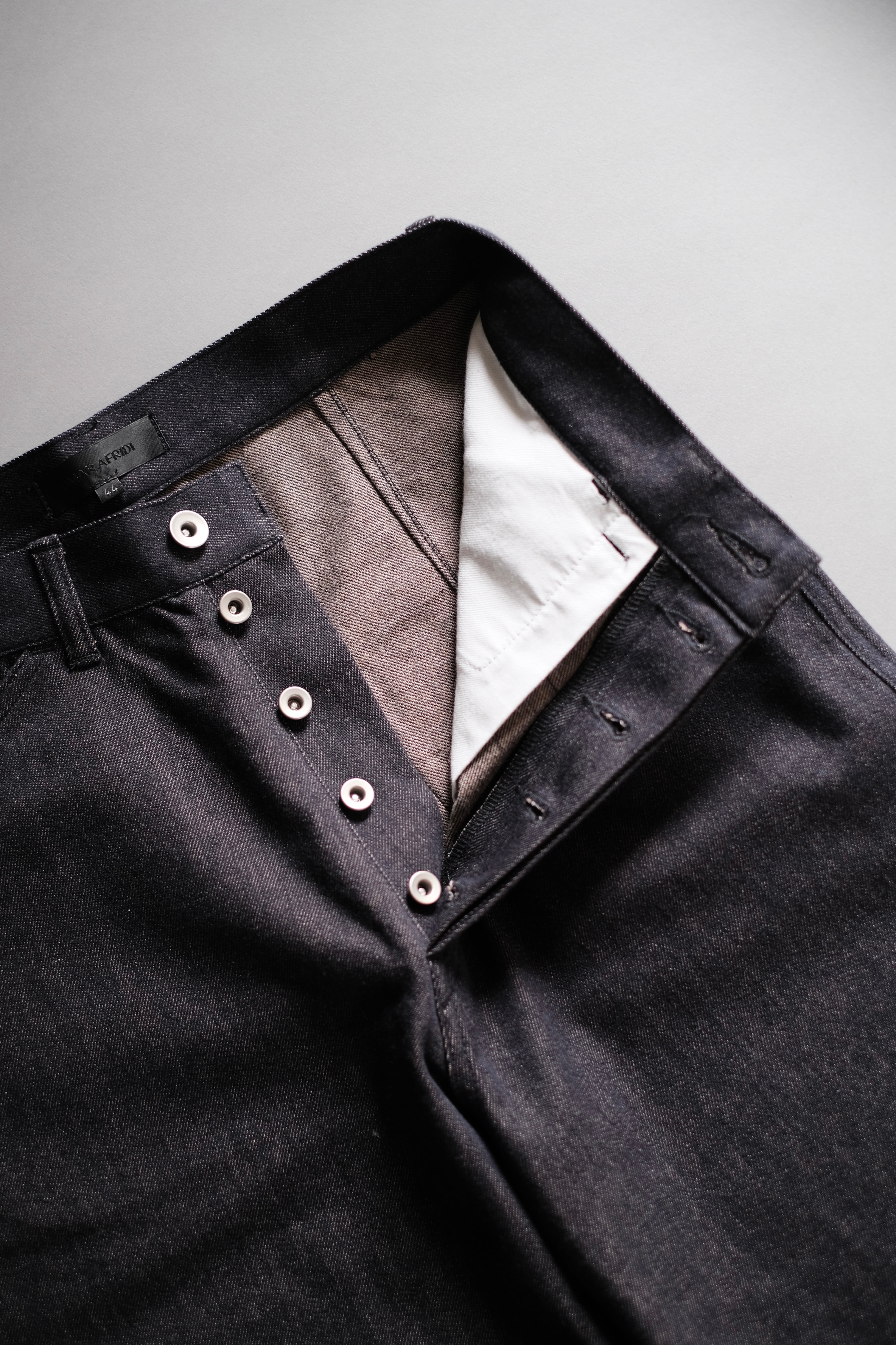 カシミアとコットンをブレンドしたデニムを使用した、5ポケットのストレートトラウザーパンツ。