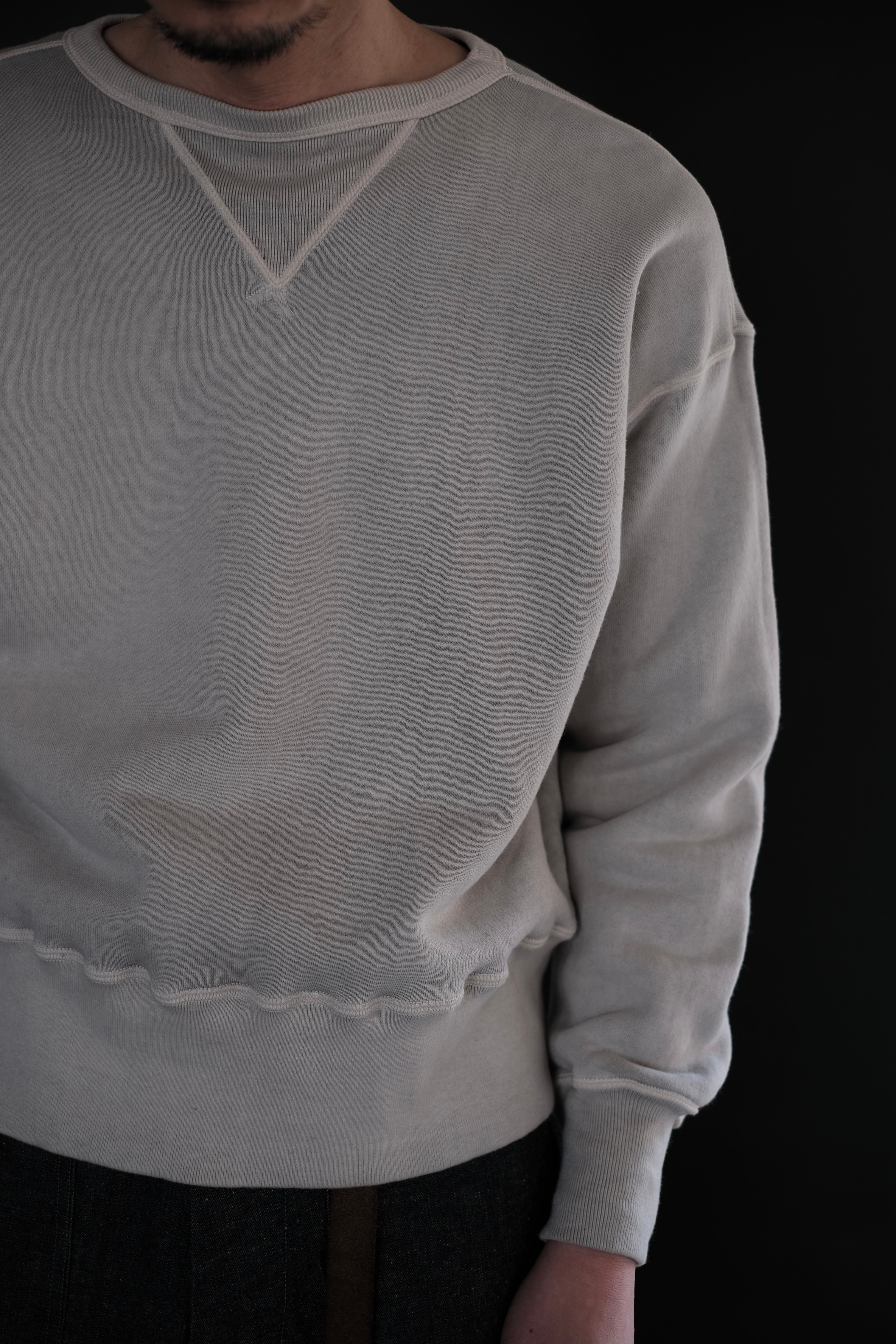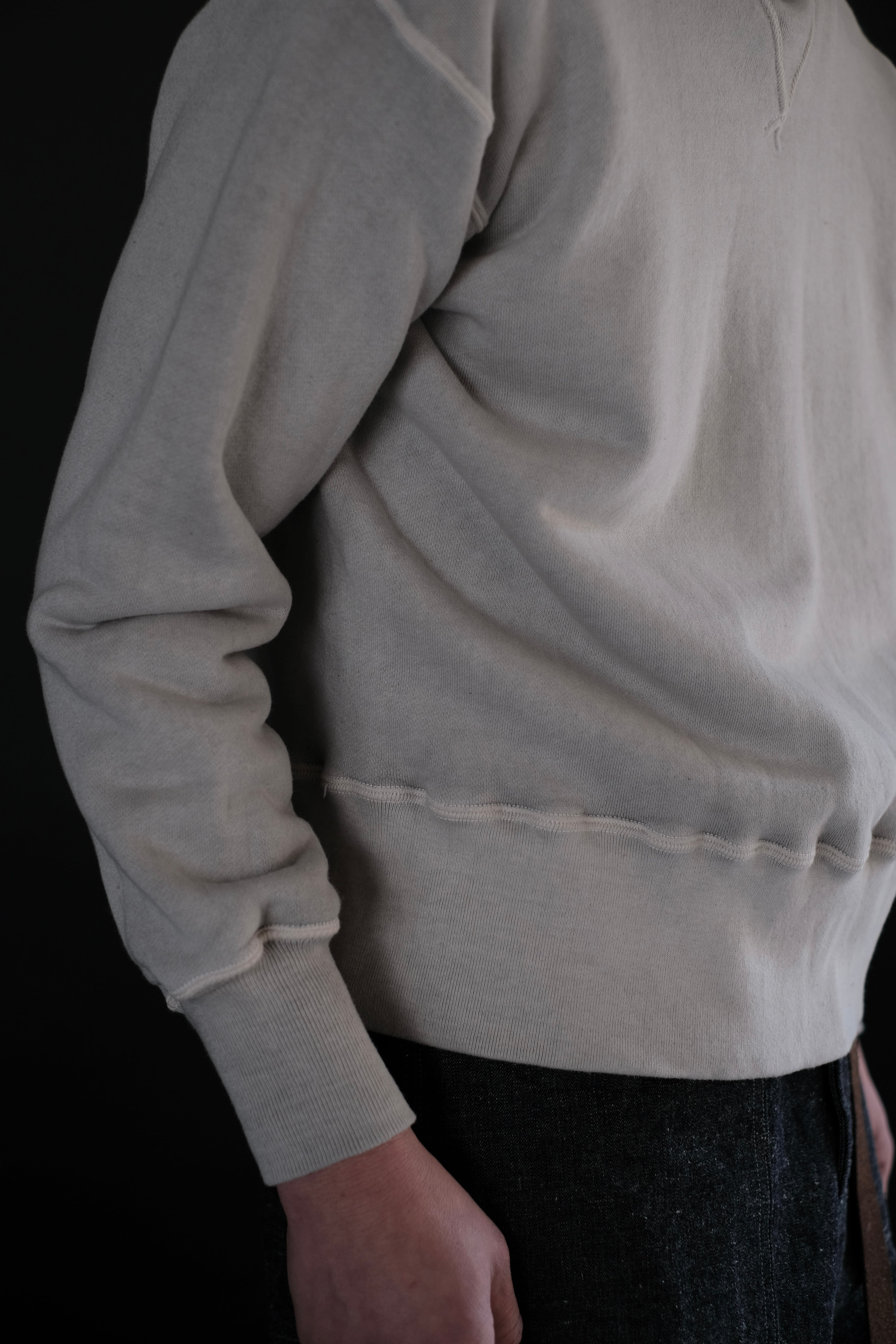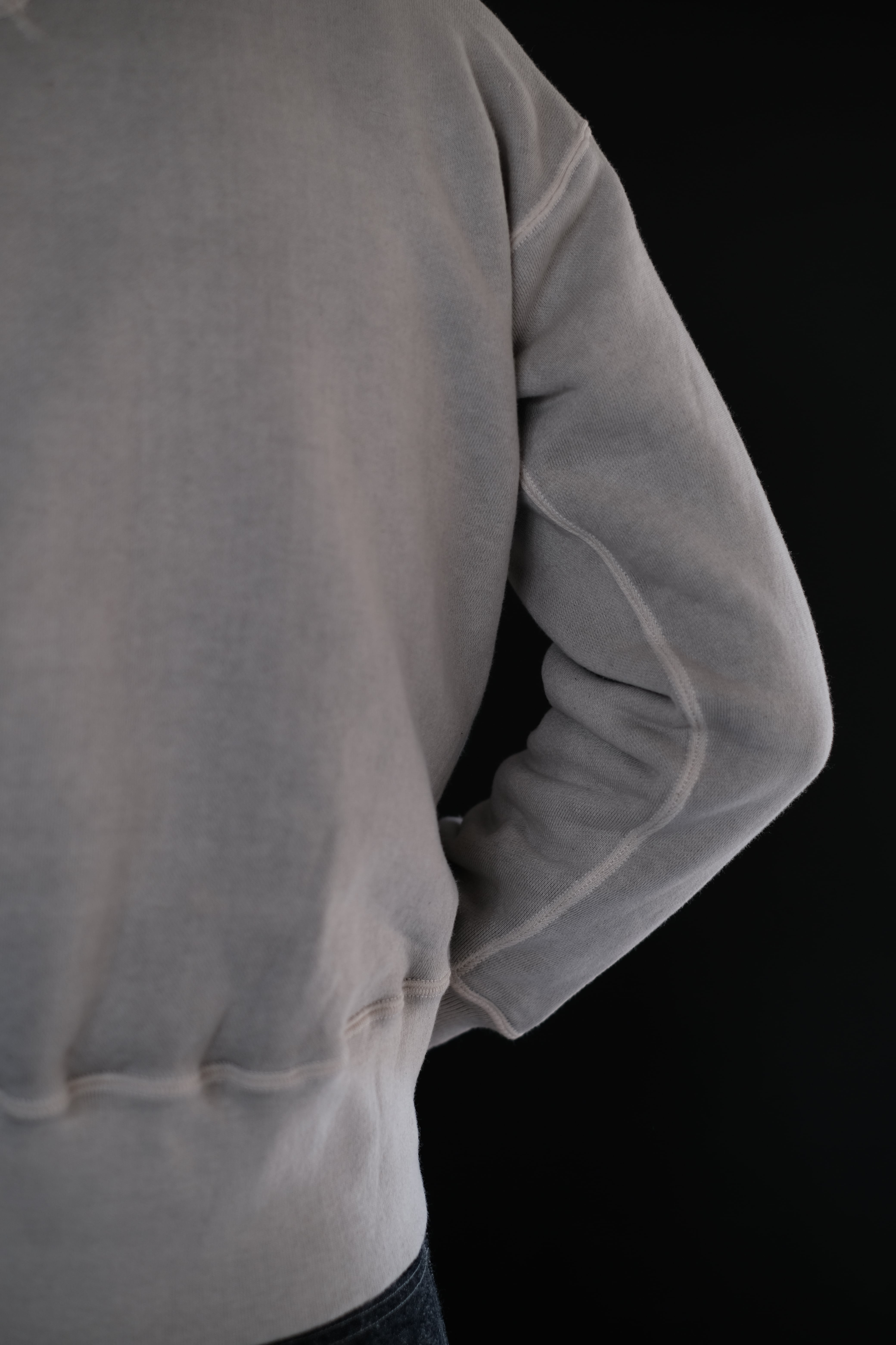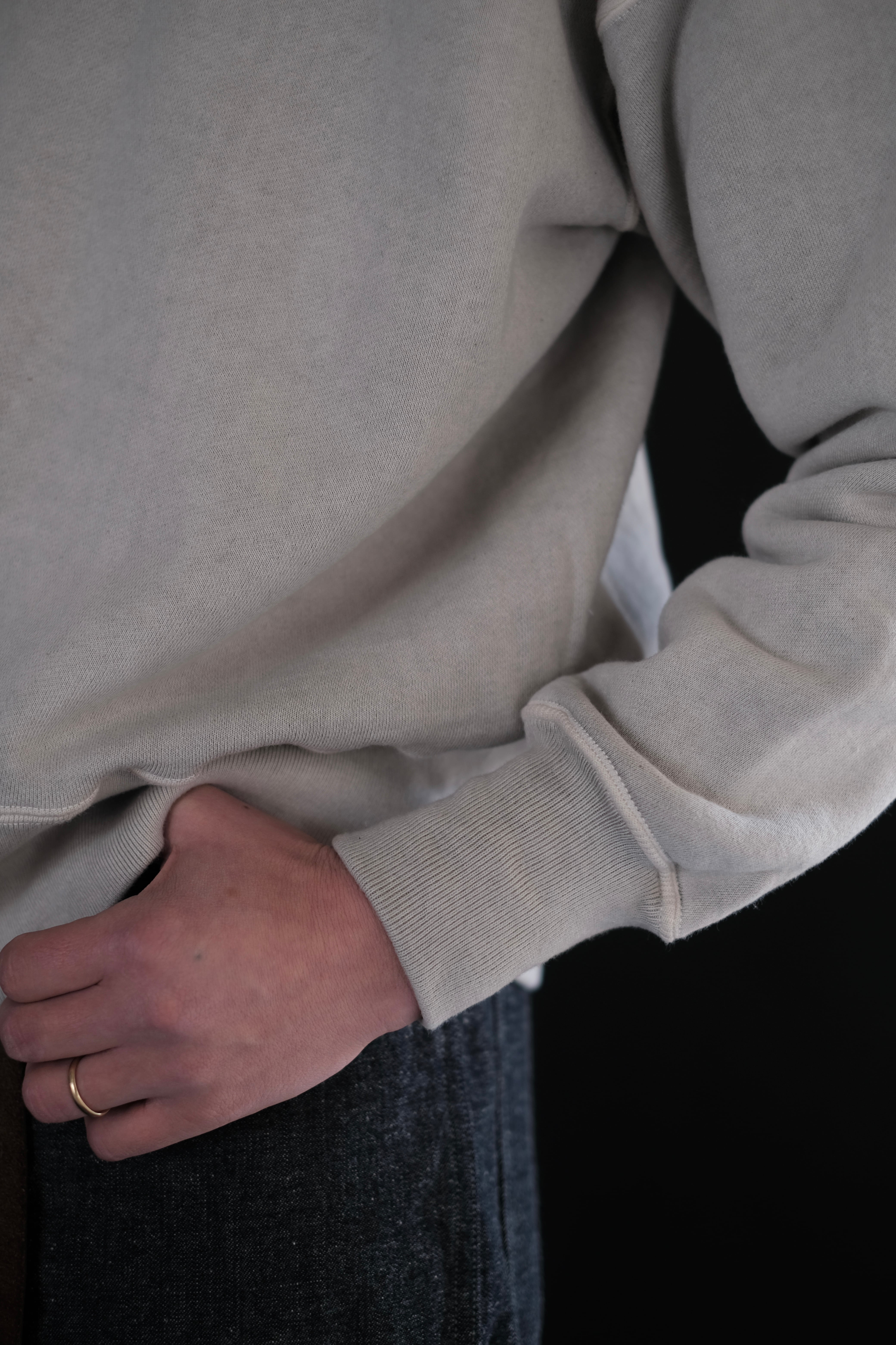 人工素材が広く普及する以前、1950年代より前のアメリカン・スポーツウェアの原点に着想を得て生まれたスウェットシャツ。Lot.601 Tee Shirt と同様に、直接的な裁断による平面的なかたちが特徴である。