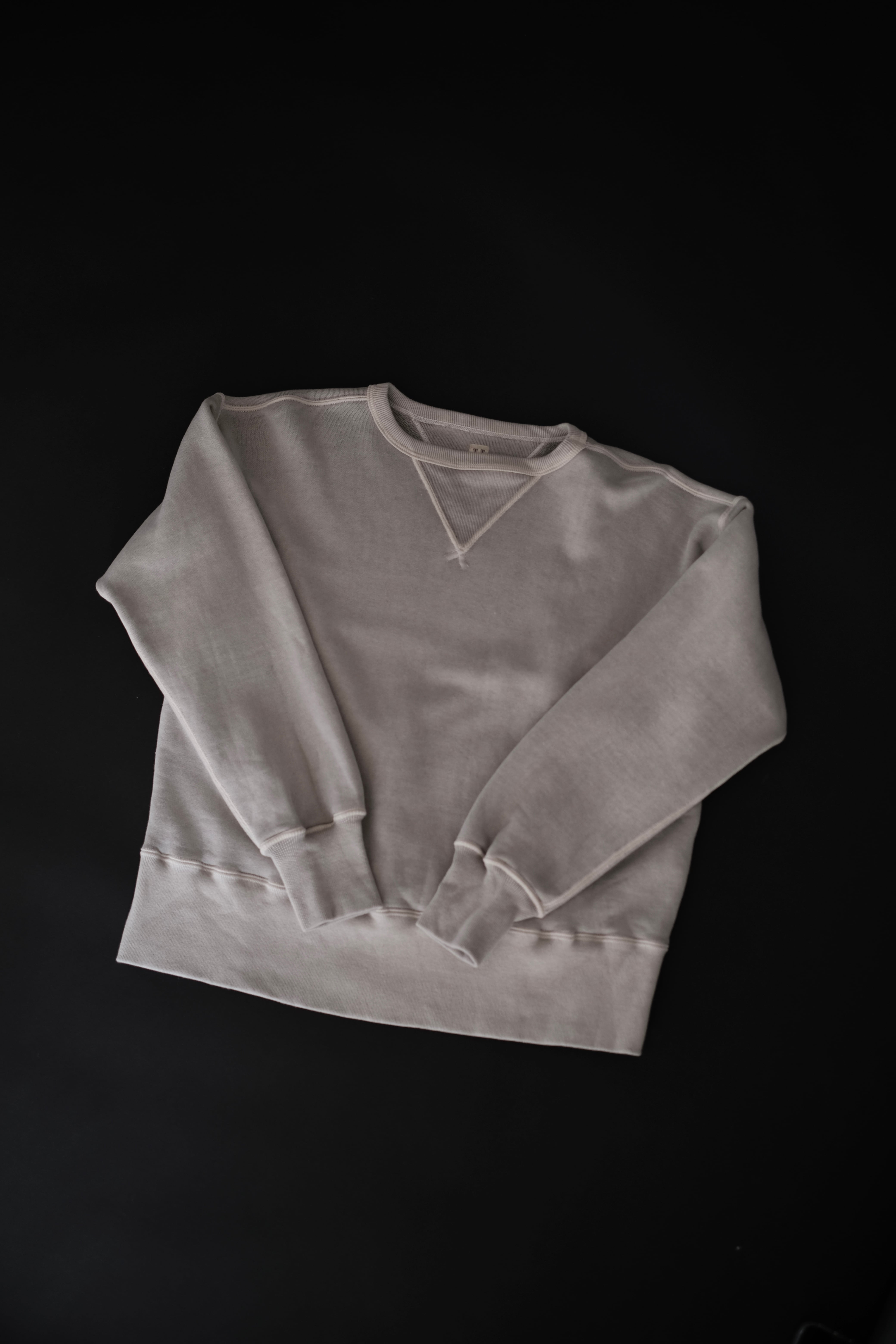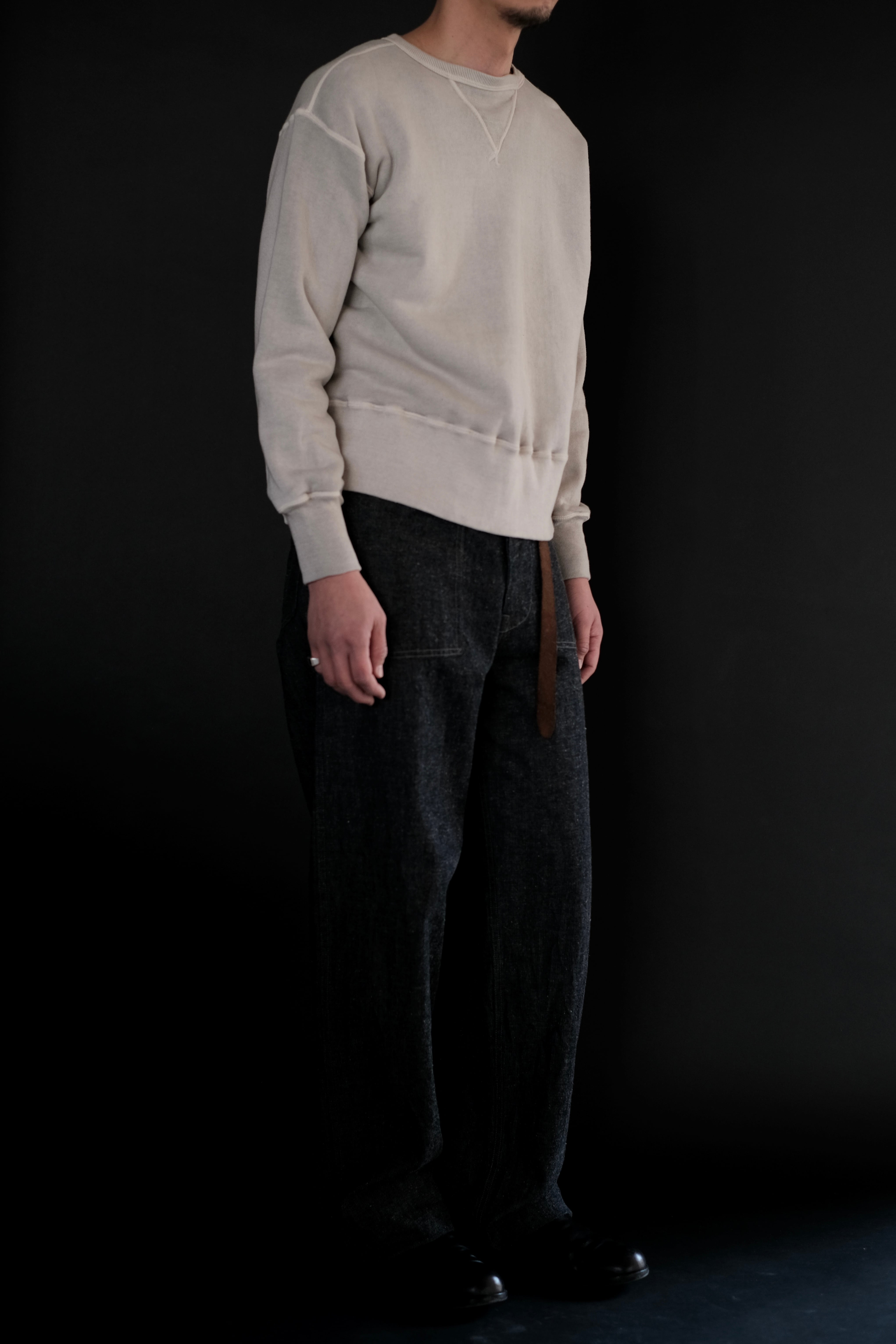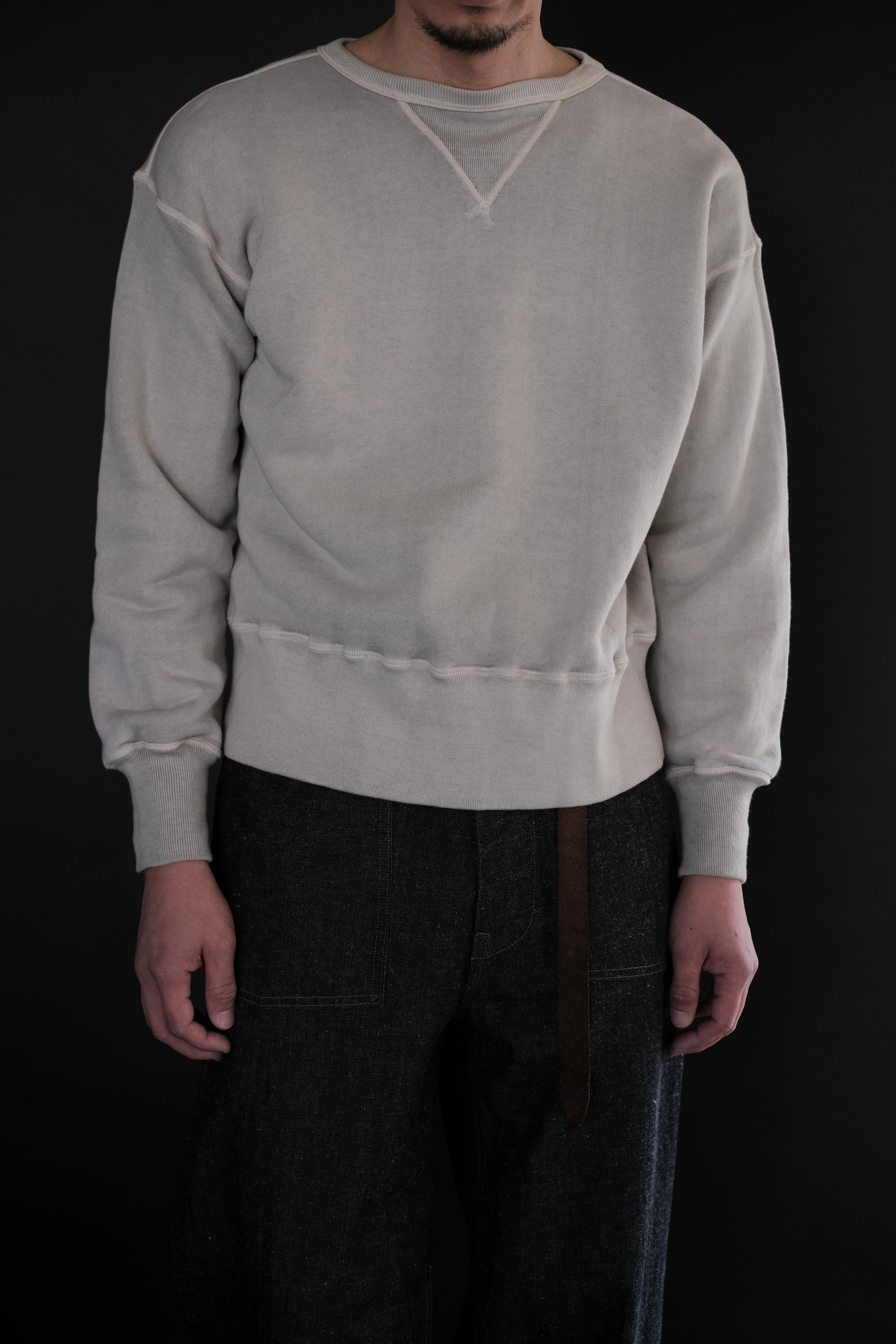 人工素材が広く普及する以前、1950年代より前のアメリカン・スポーツウェアの原点に着想を得て生まれたスウェットシャツ。Lot.601 Tee Shirt と同様に、直接的な裁断による平面的なかたちが特徴である。