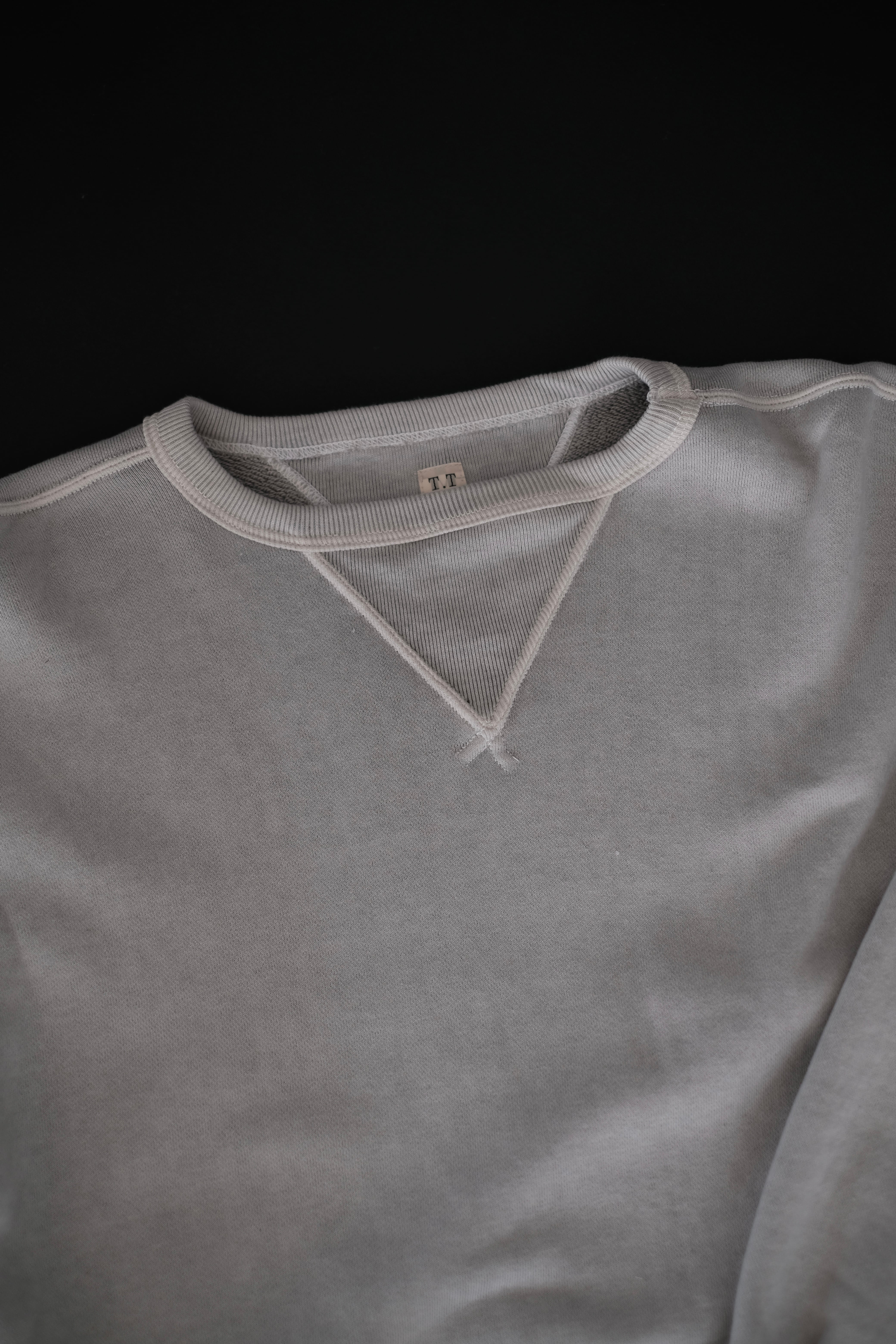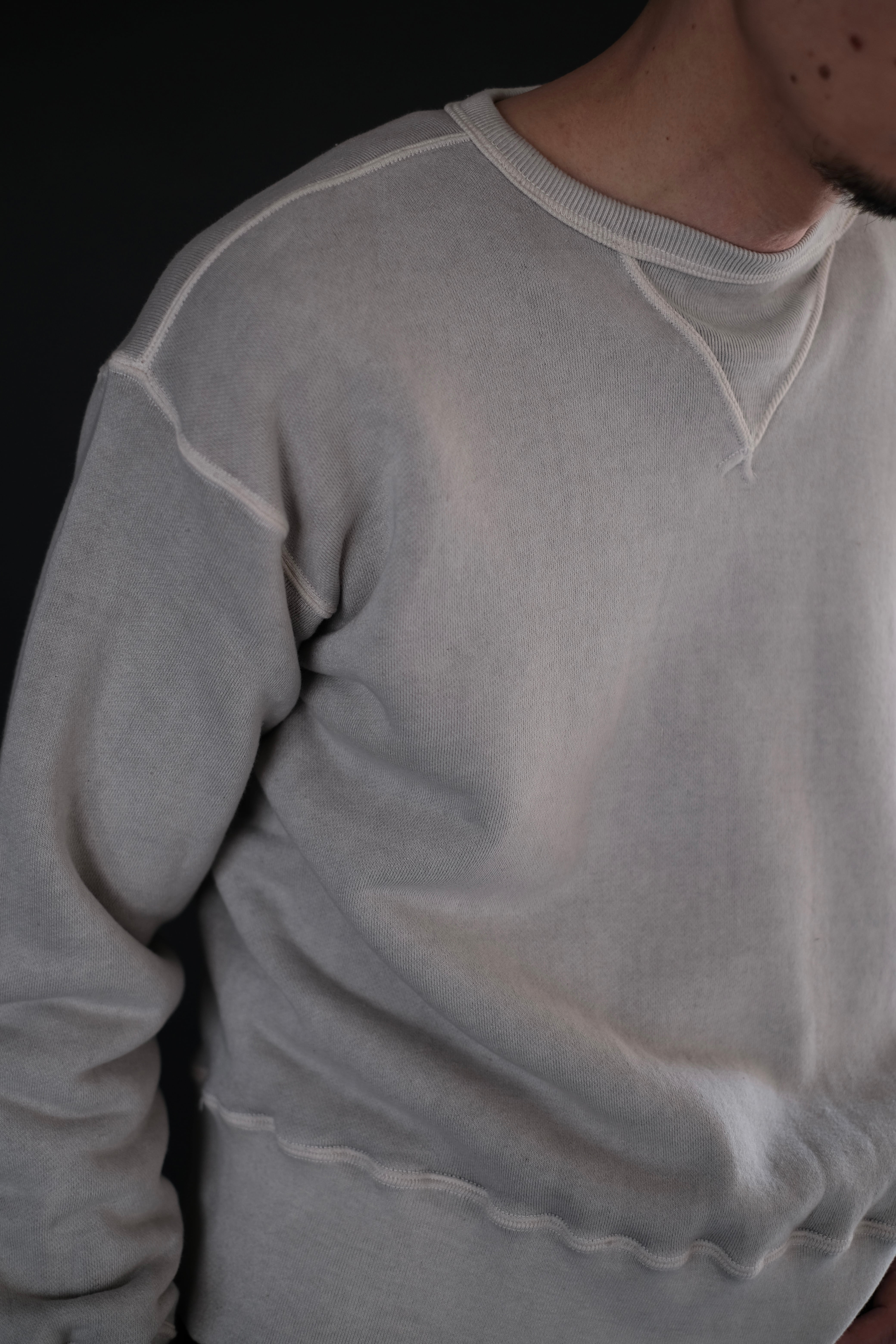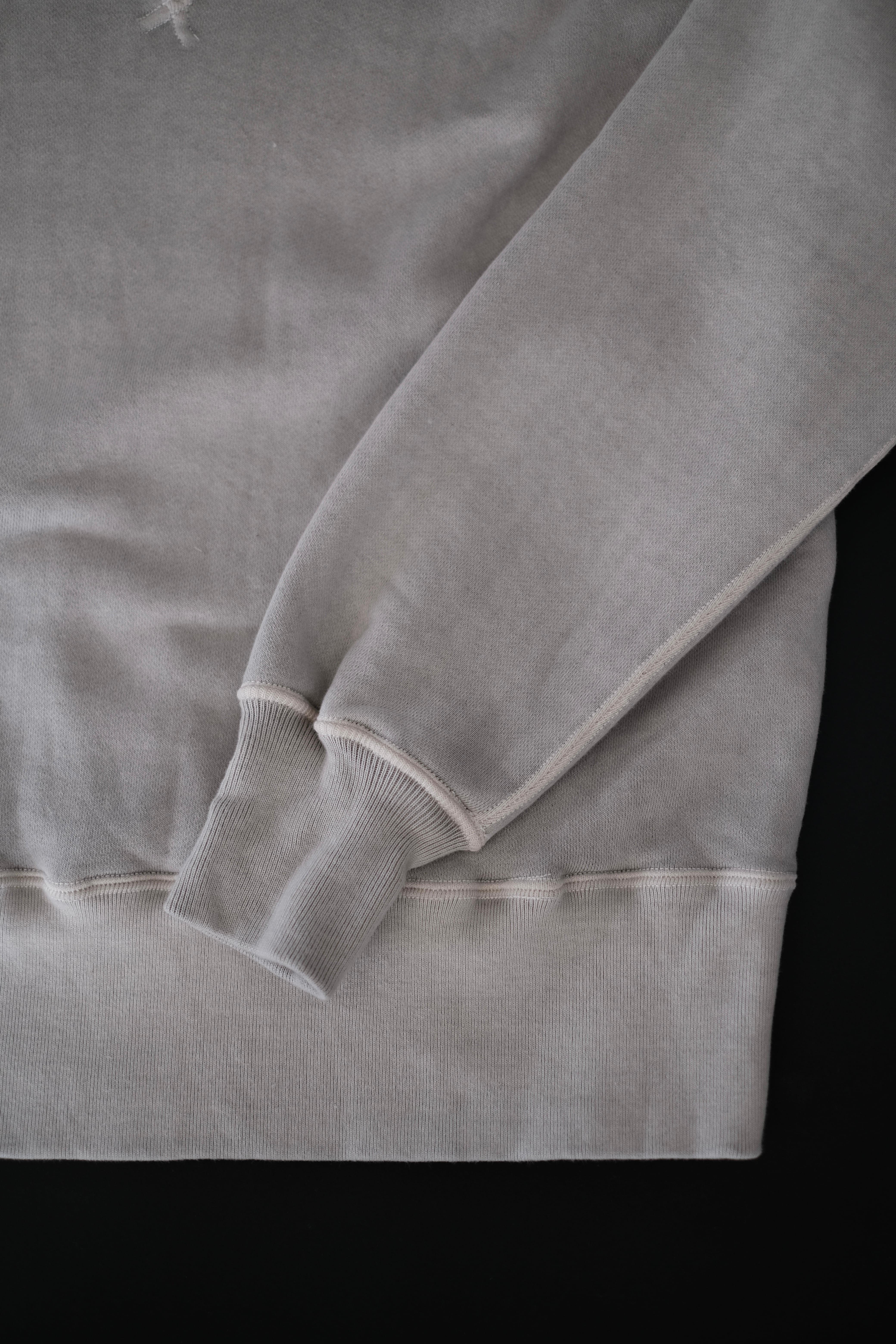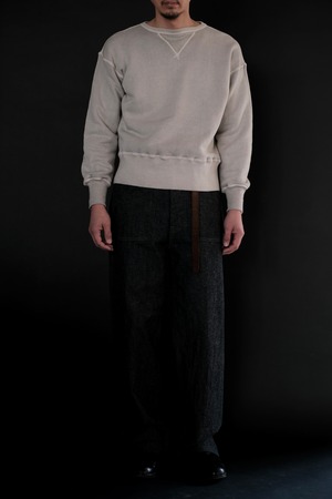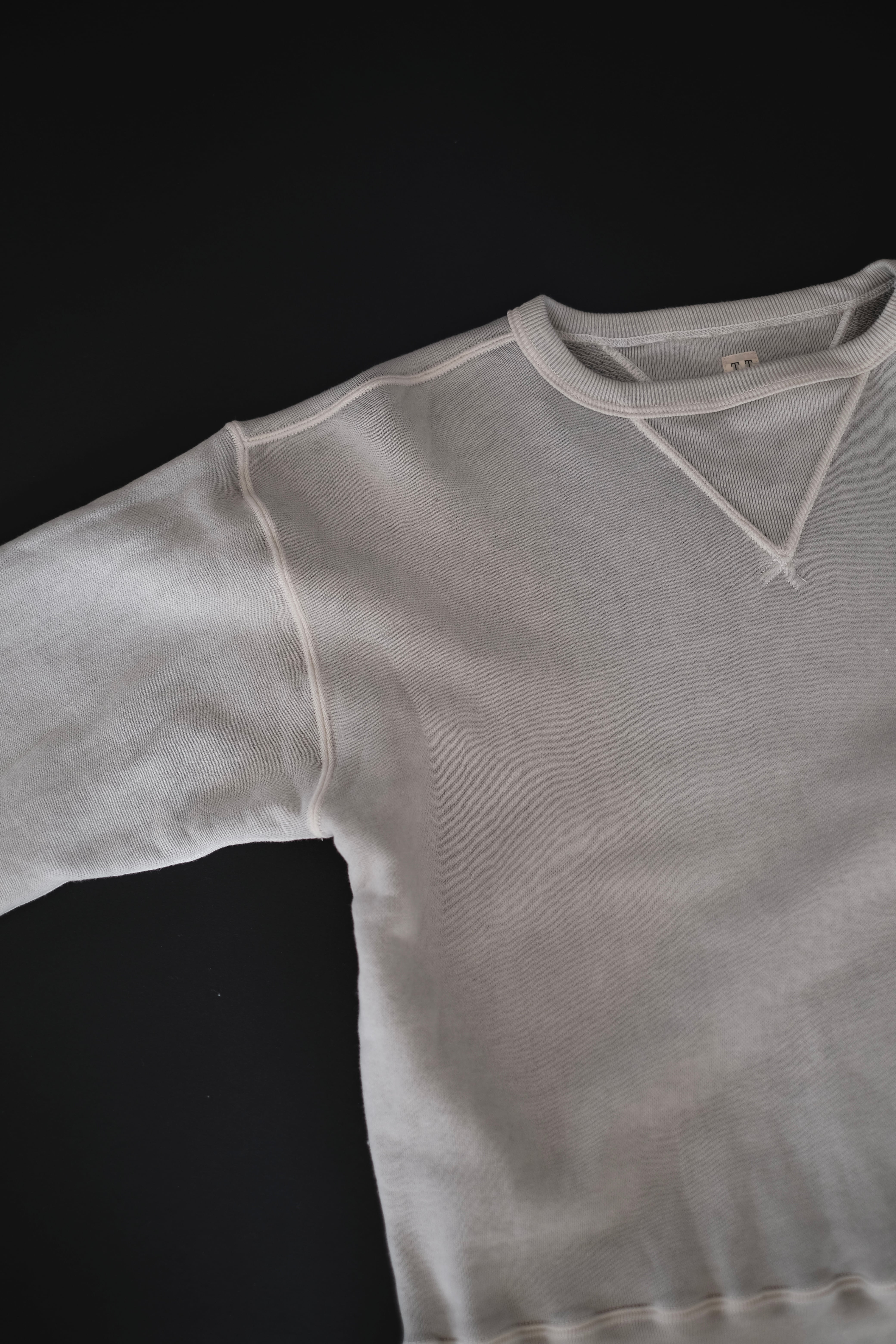 人工素材が広く普及する以前、1950年代より前のアメリカン・スポーツウェアの原点に着想を得て生まれたスウェットシャツ。Lot.601 Tee Shirt と同様に、直接的な裁断による平面的なかたちが特徴である。