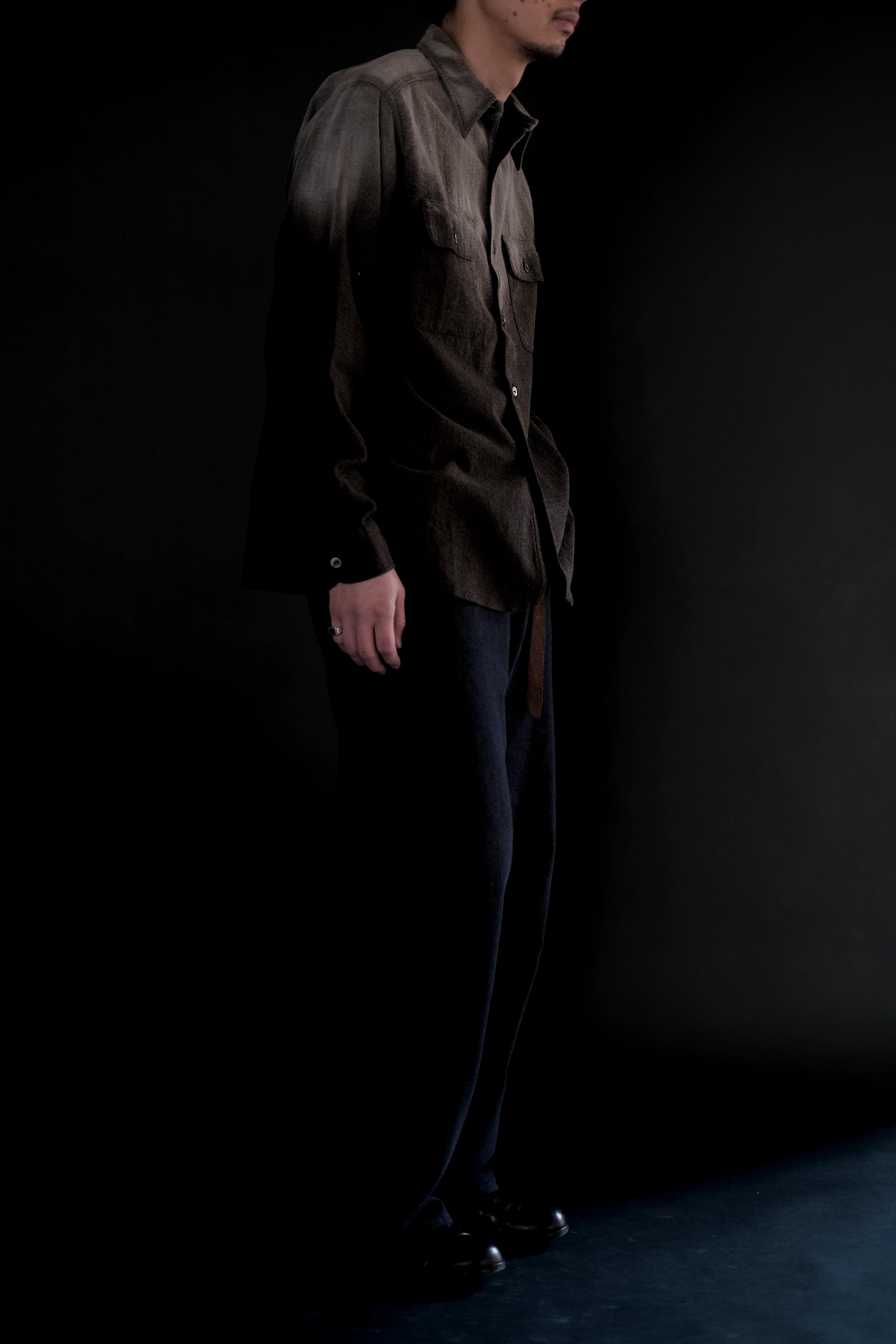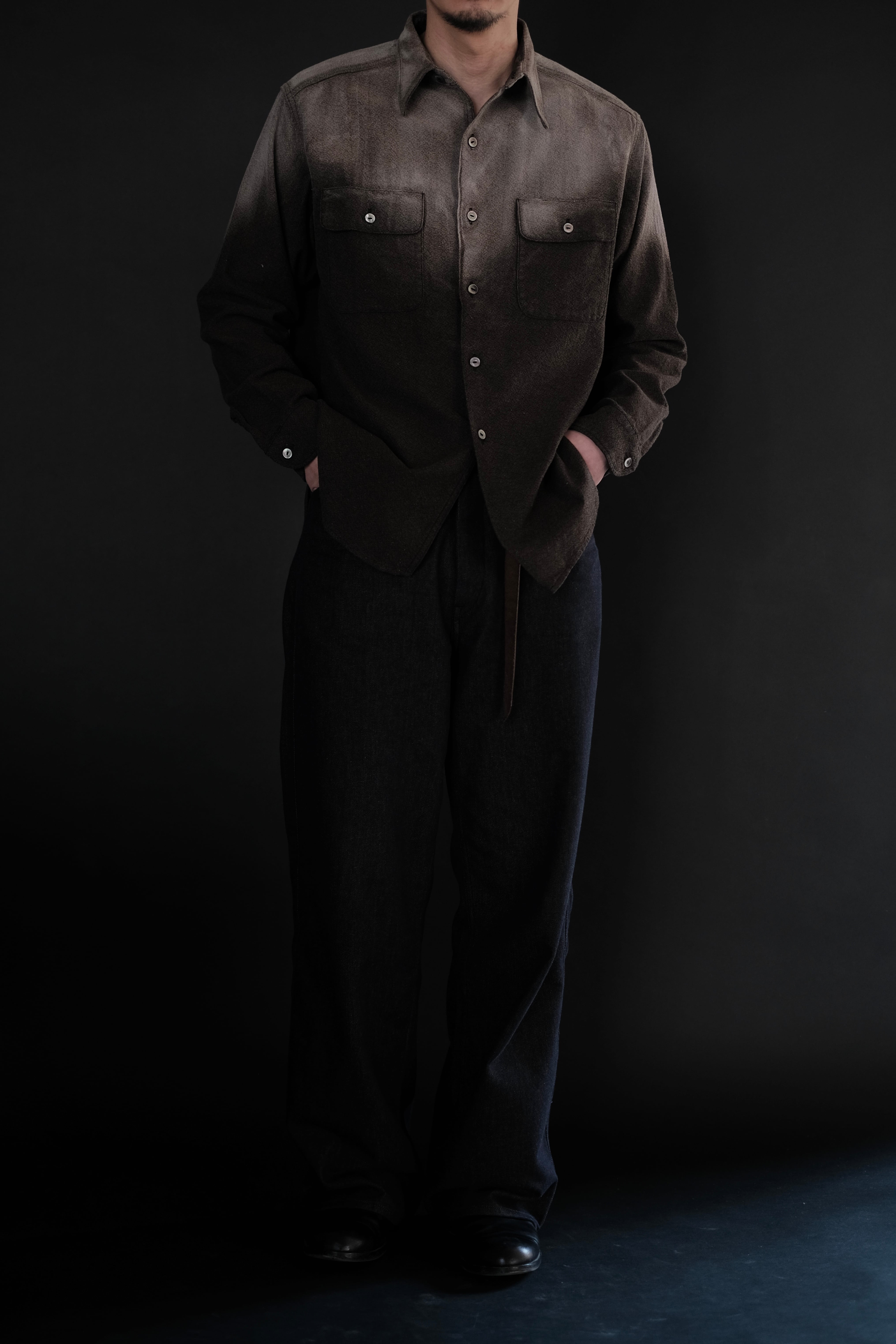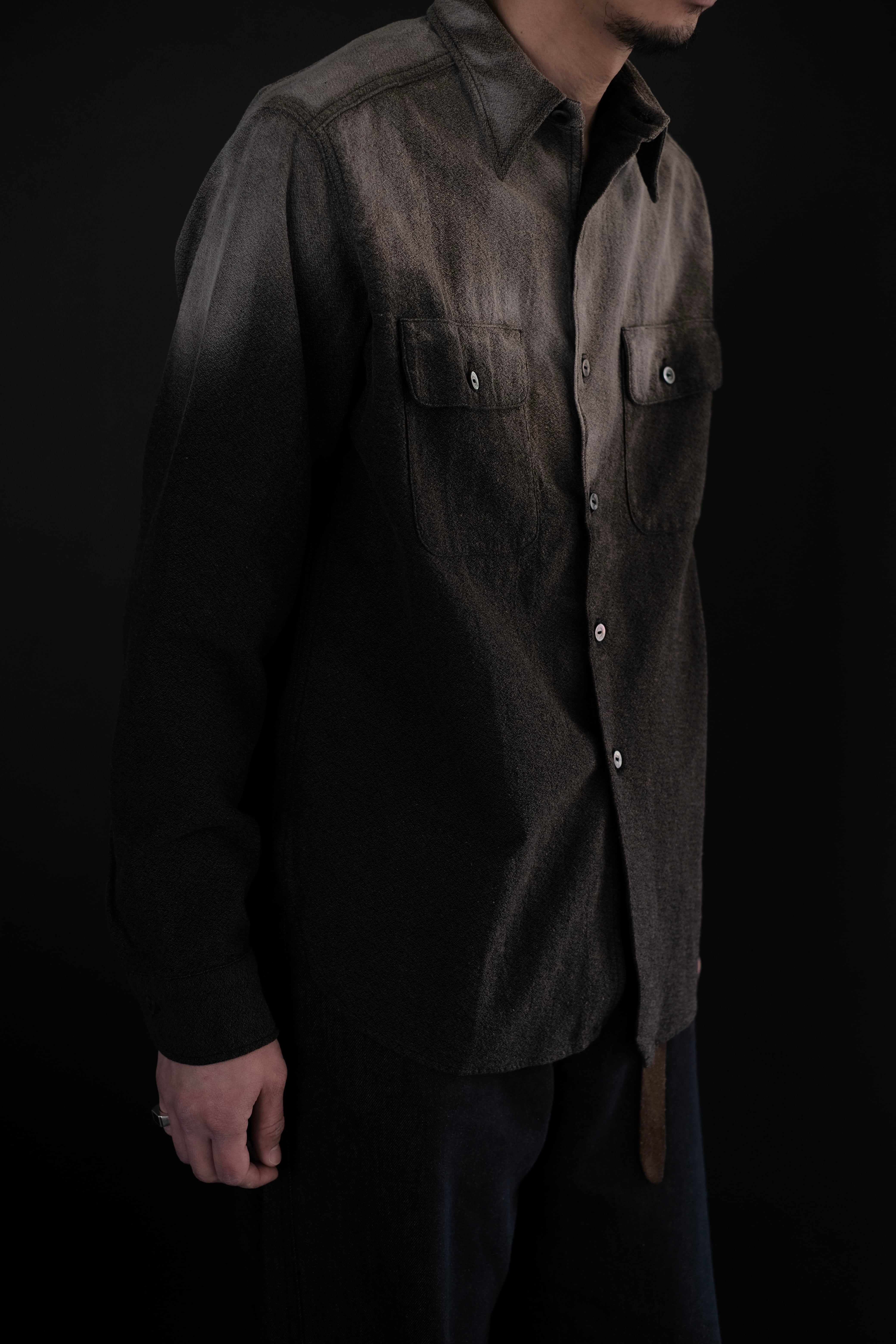 1950年代のワークシャツの中でも、前立てがなく、ポケットがシングルステッチという特徴を持つ、ドレスシャツ工場で縫製されていたアイテムをベースに再構築。