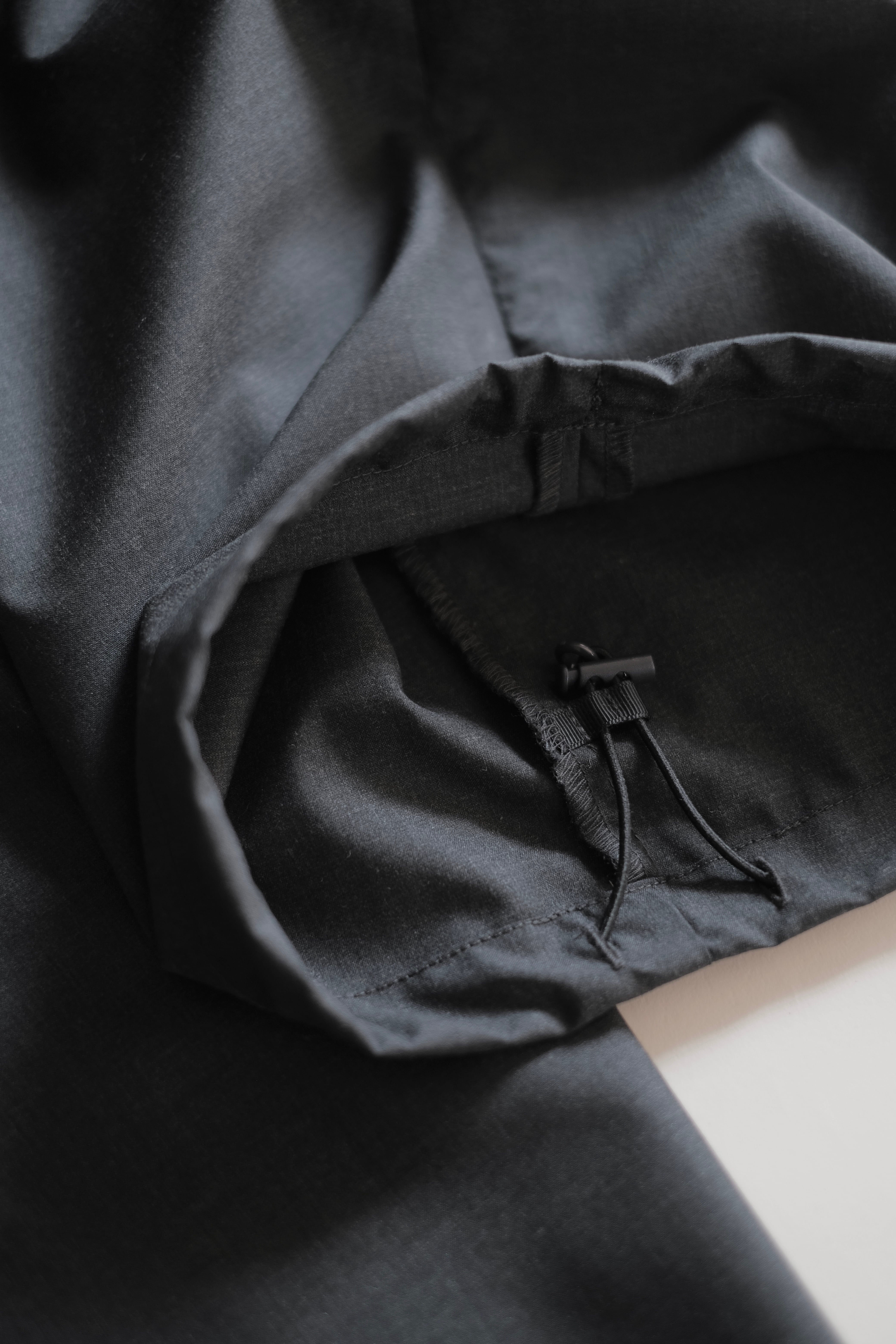 ウエストにはゴムを配備し、裾はドローコードとアジャスターの仕様で調節が可能。