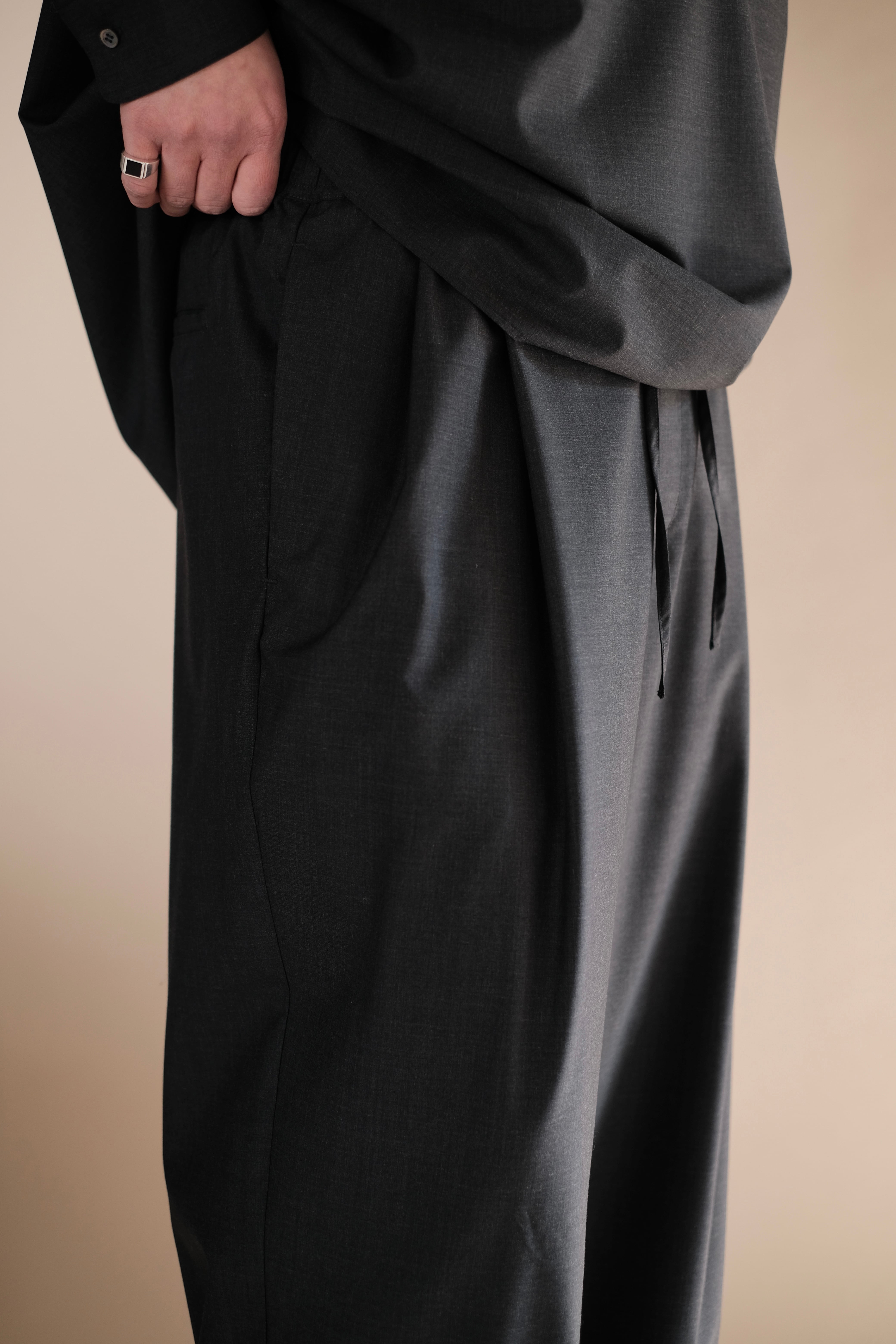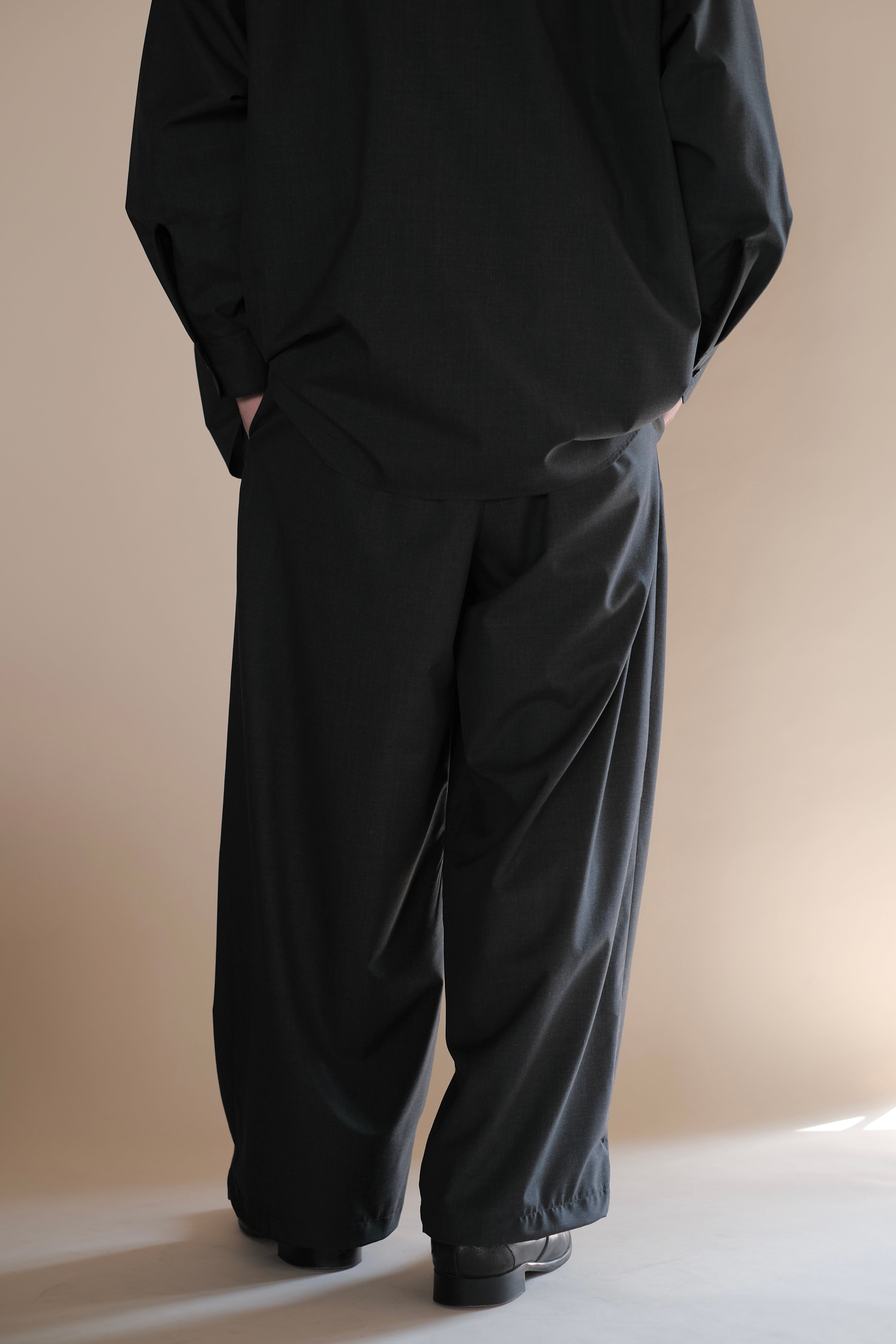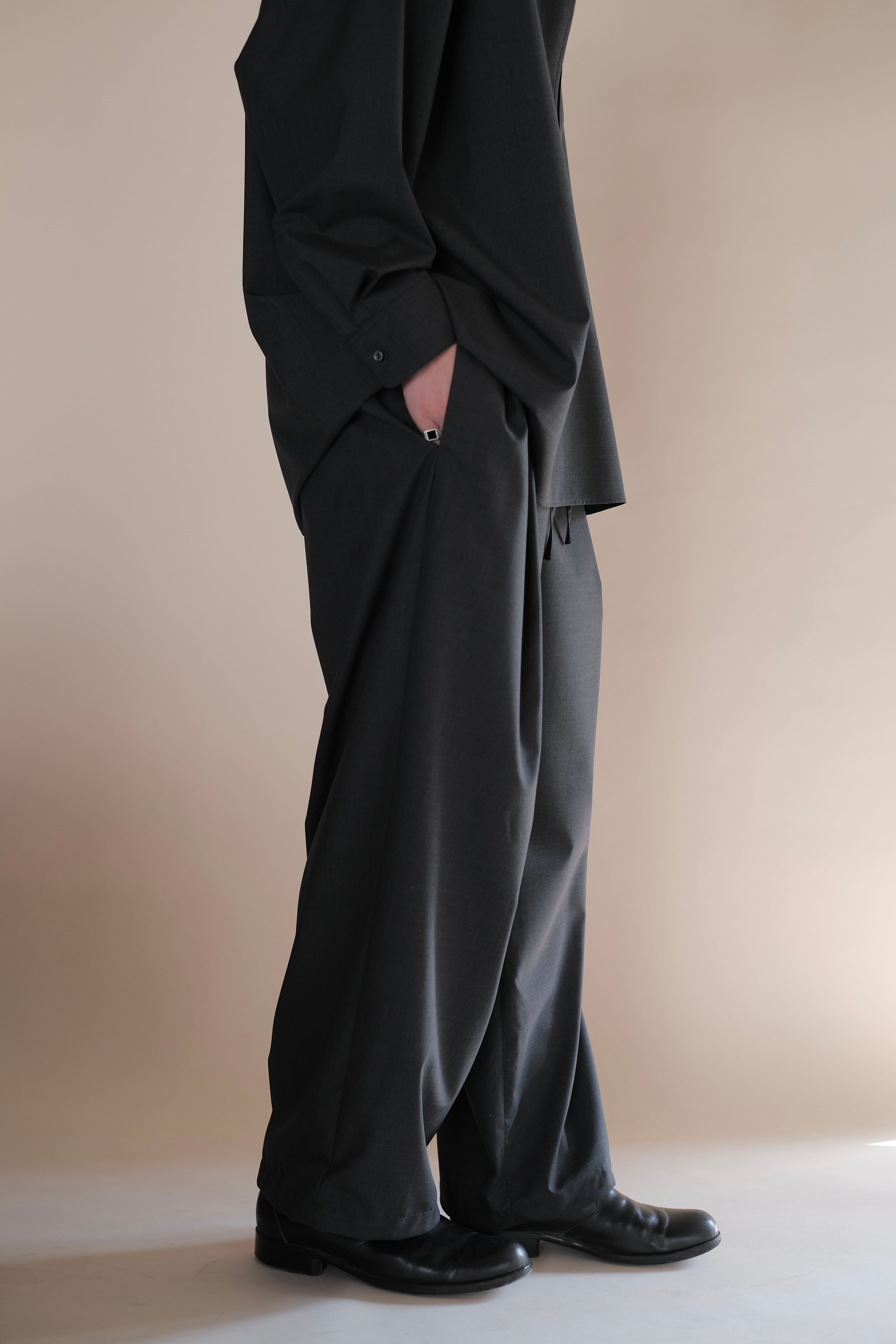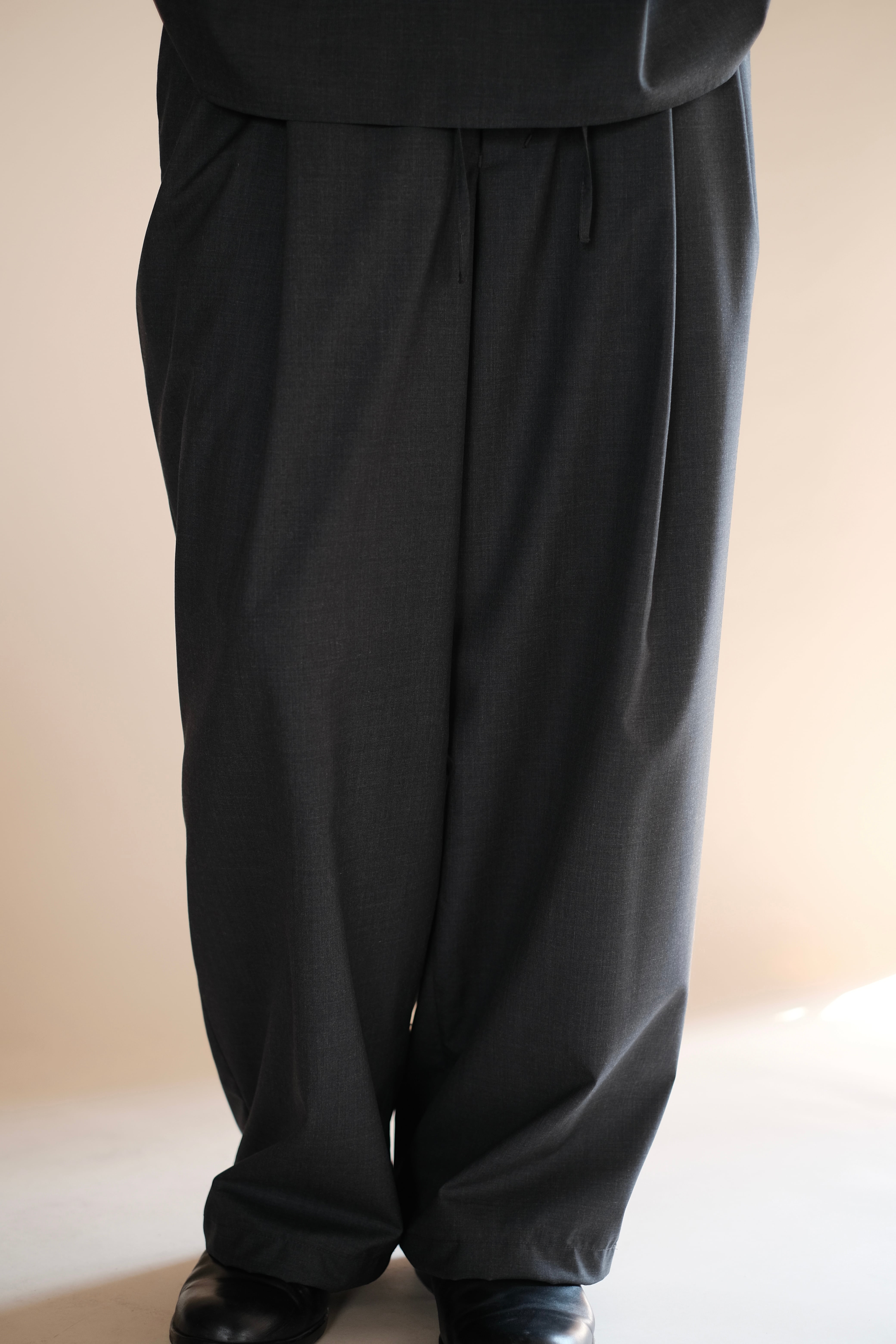 腰回りにゆとりを持たせたワイドテーパードシルエット。