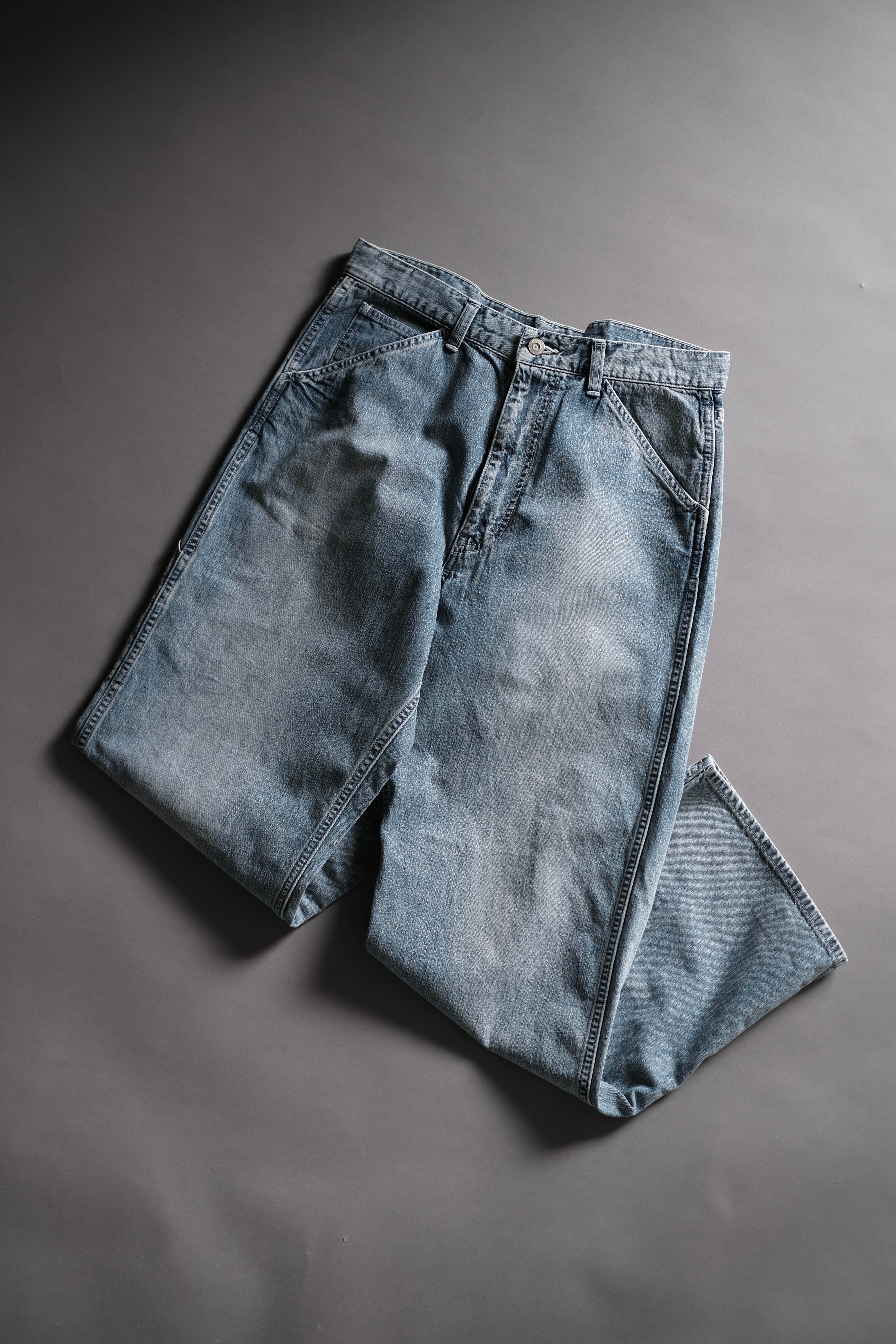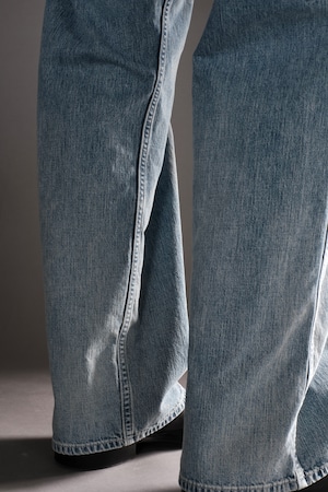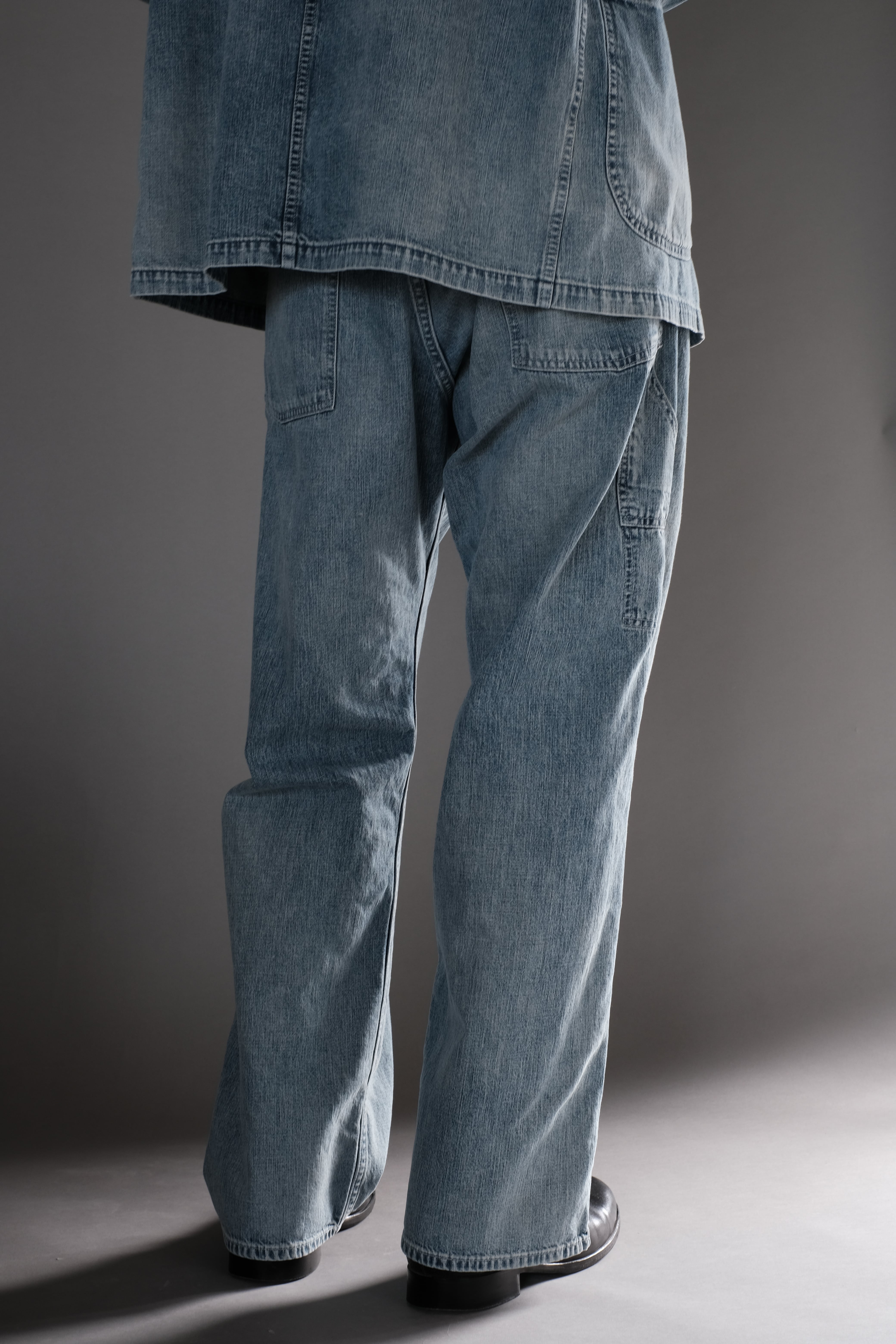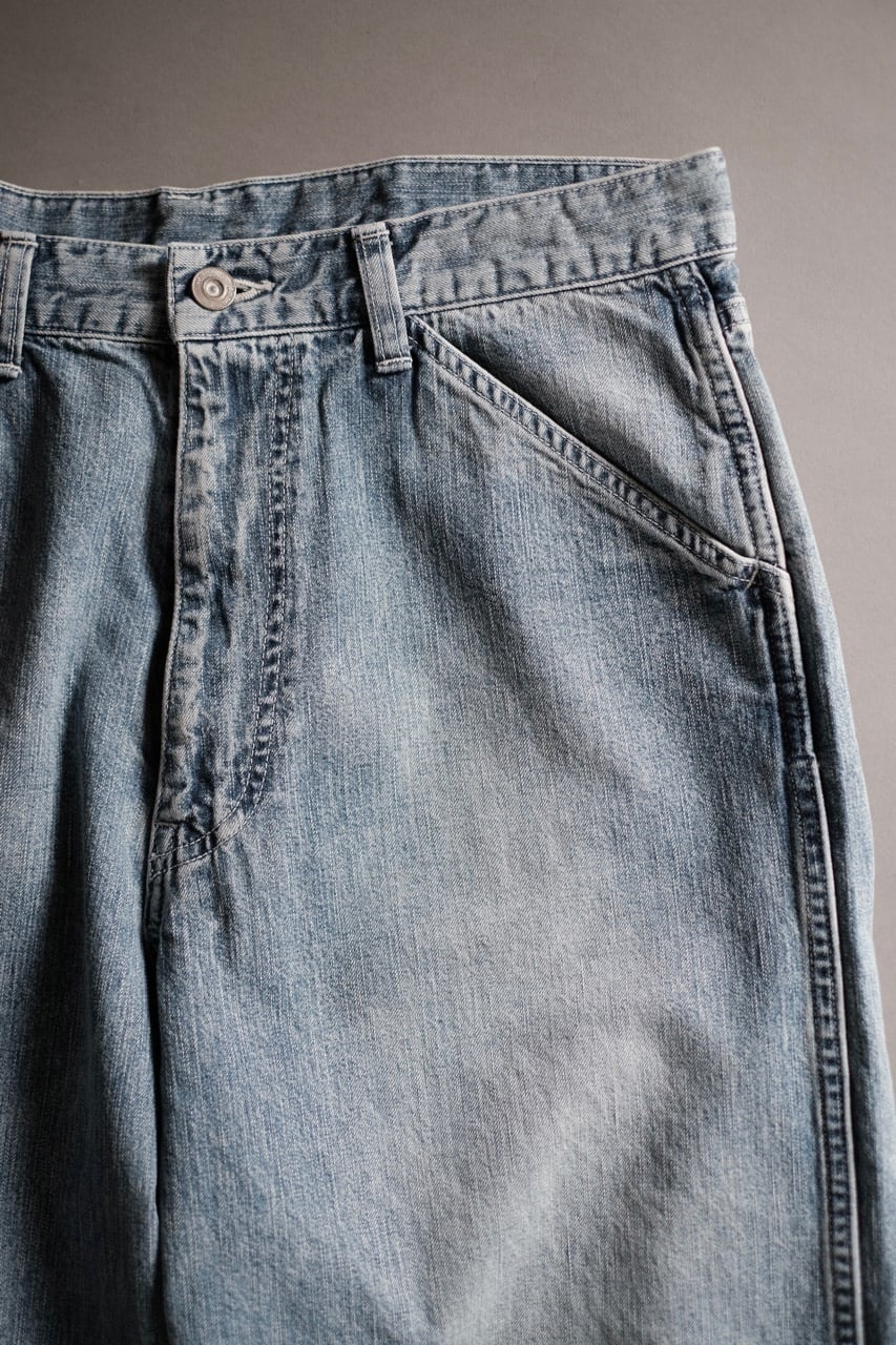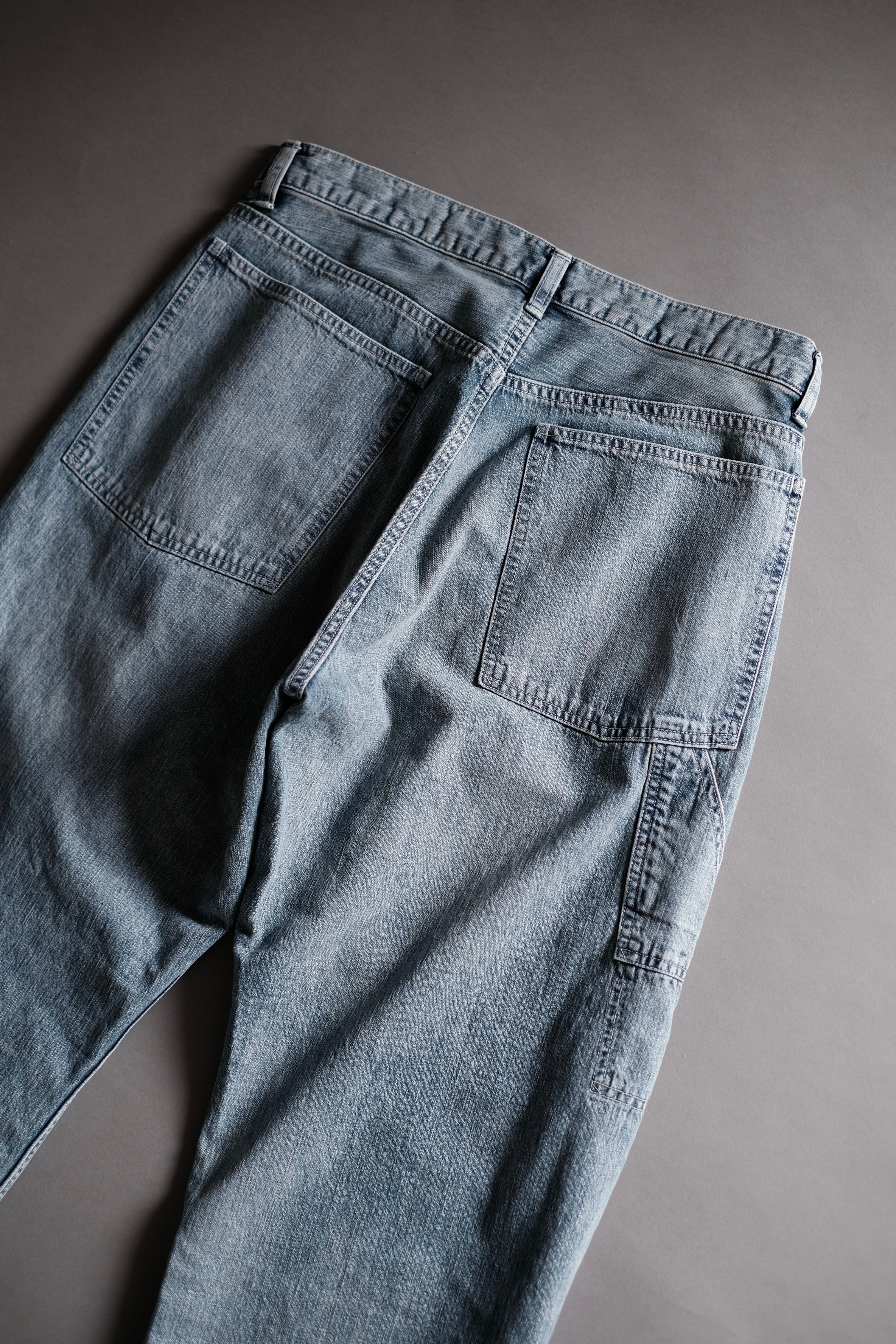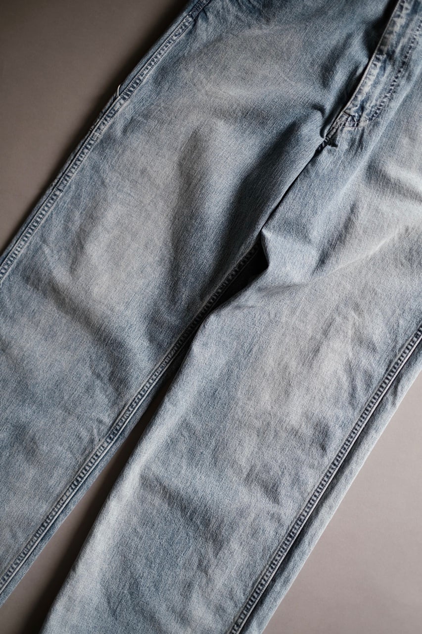 所謂ビンテージの色落ちとはまた違ったムードを目指し、手作業と洗い加工をいくつも組み合わせながら、奥行きのあるフェードや色彩の濃淡を細かく調整して仕上げています。