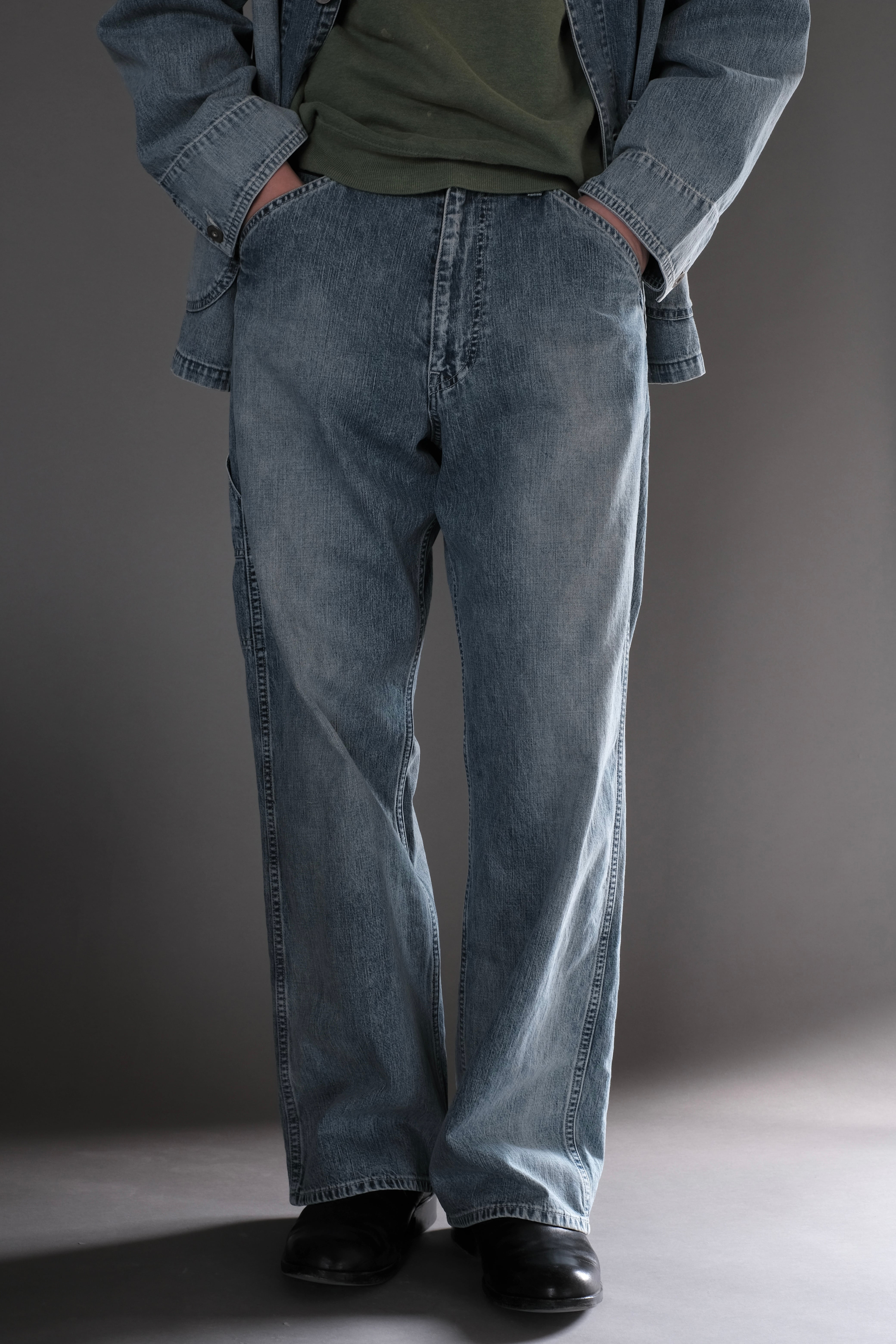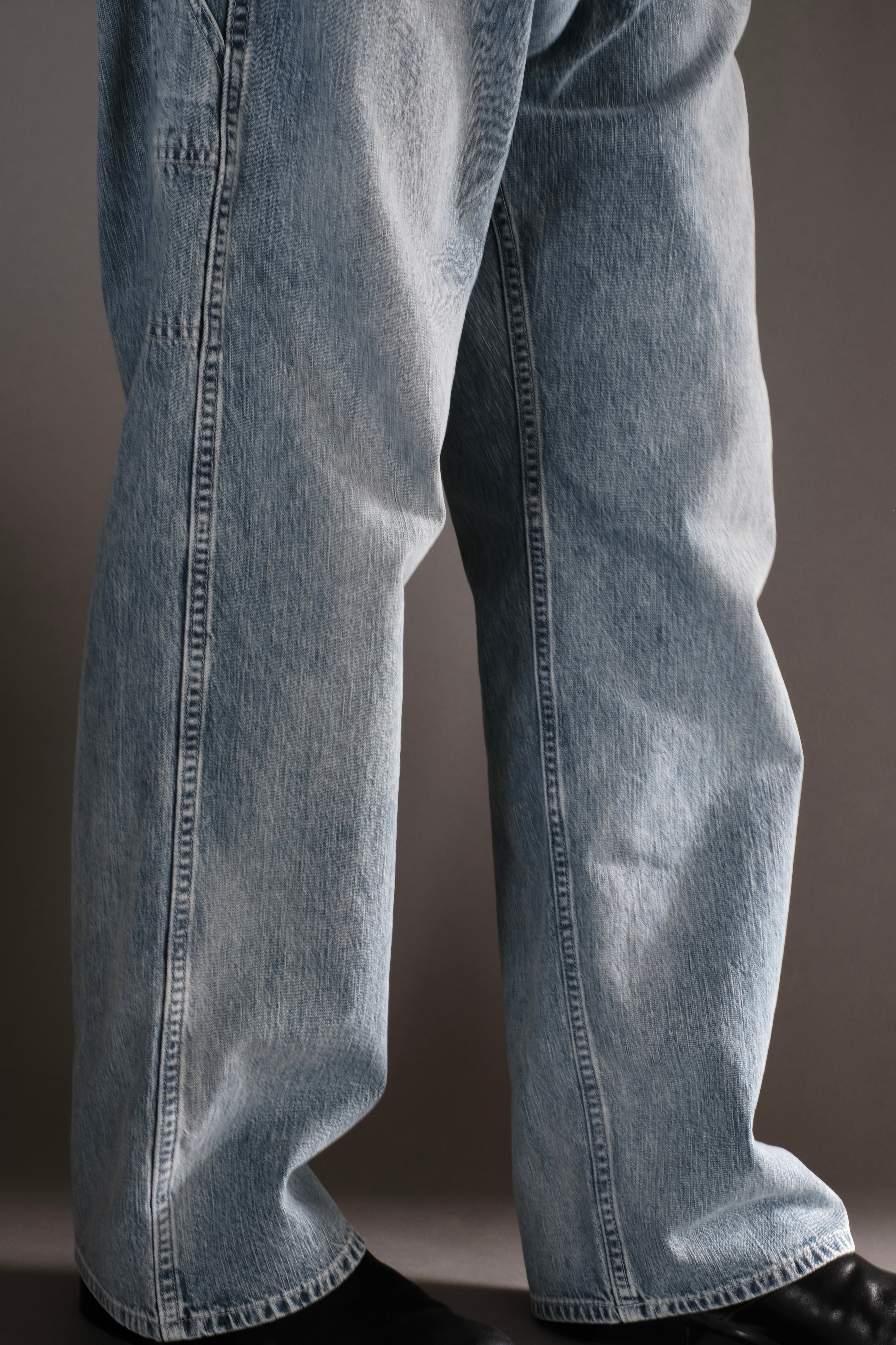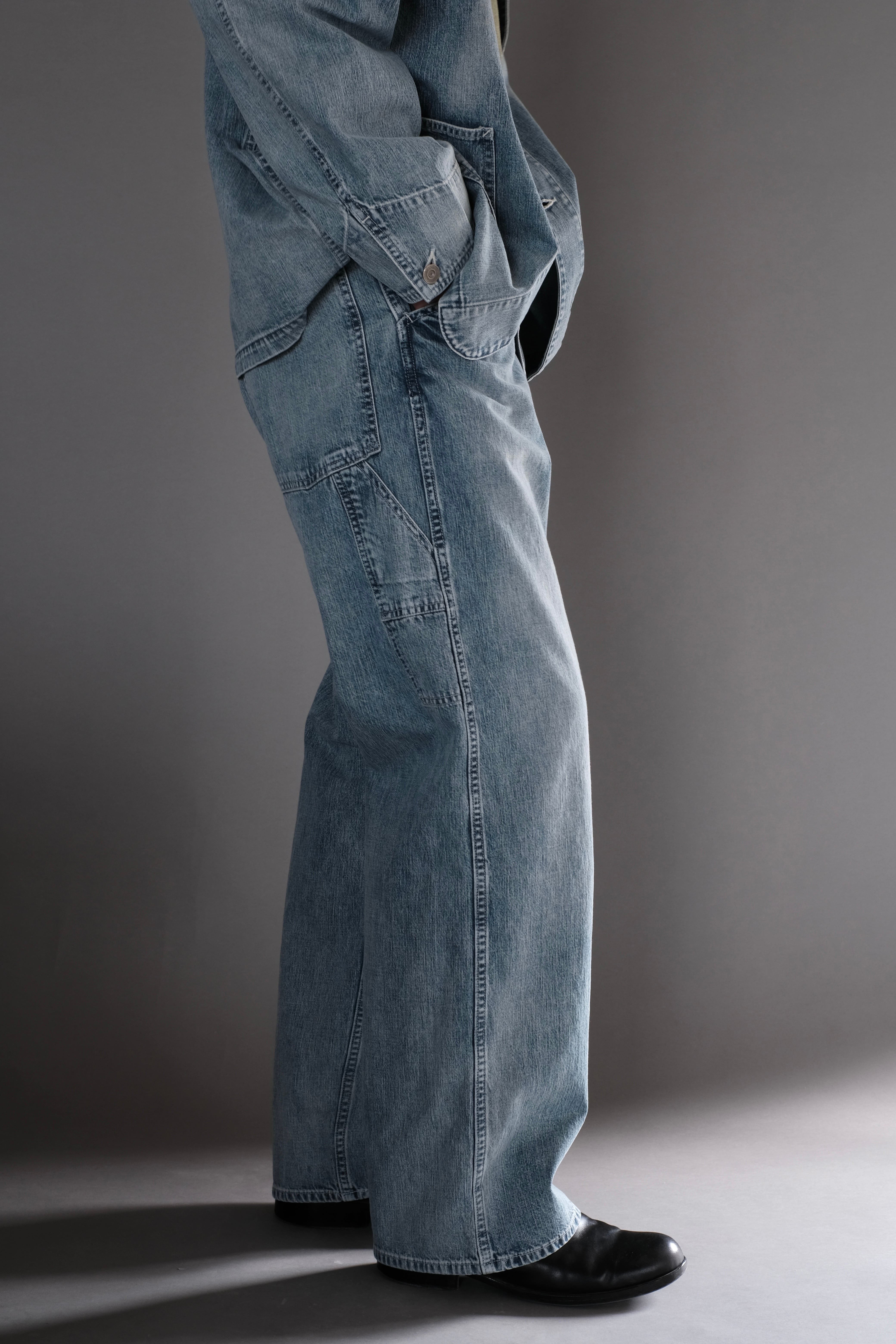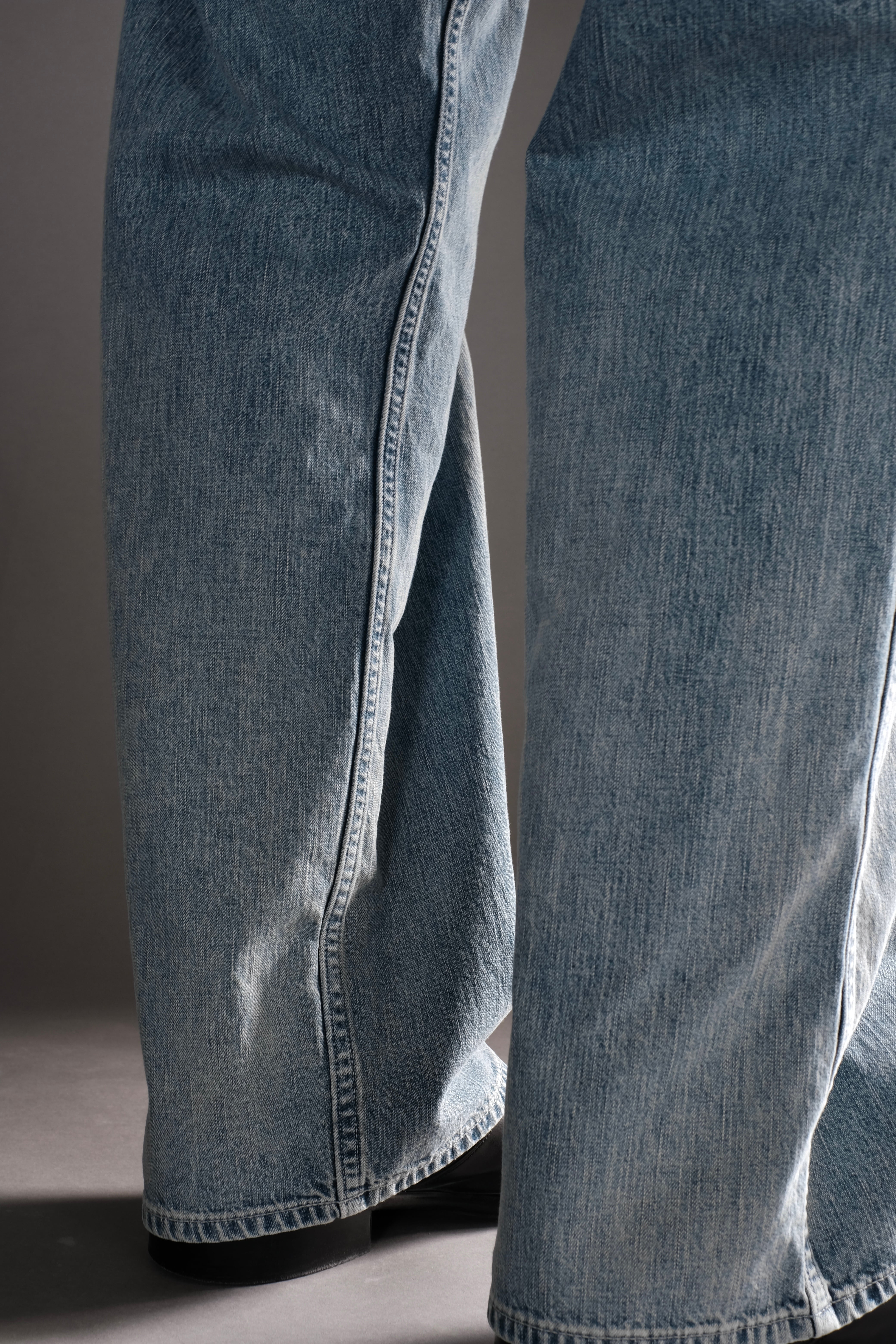 所謂ビンテージの色落ちとはまた違ったムードを目指し、手作業と洗い加工をいくつも組み合わせながら、奥行きのあるフェードや色彩の濃淡を細かく調整して仕上げています。