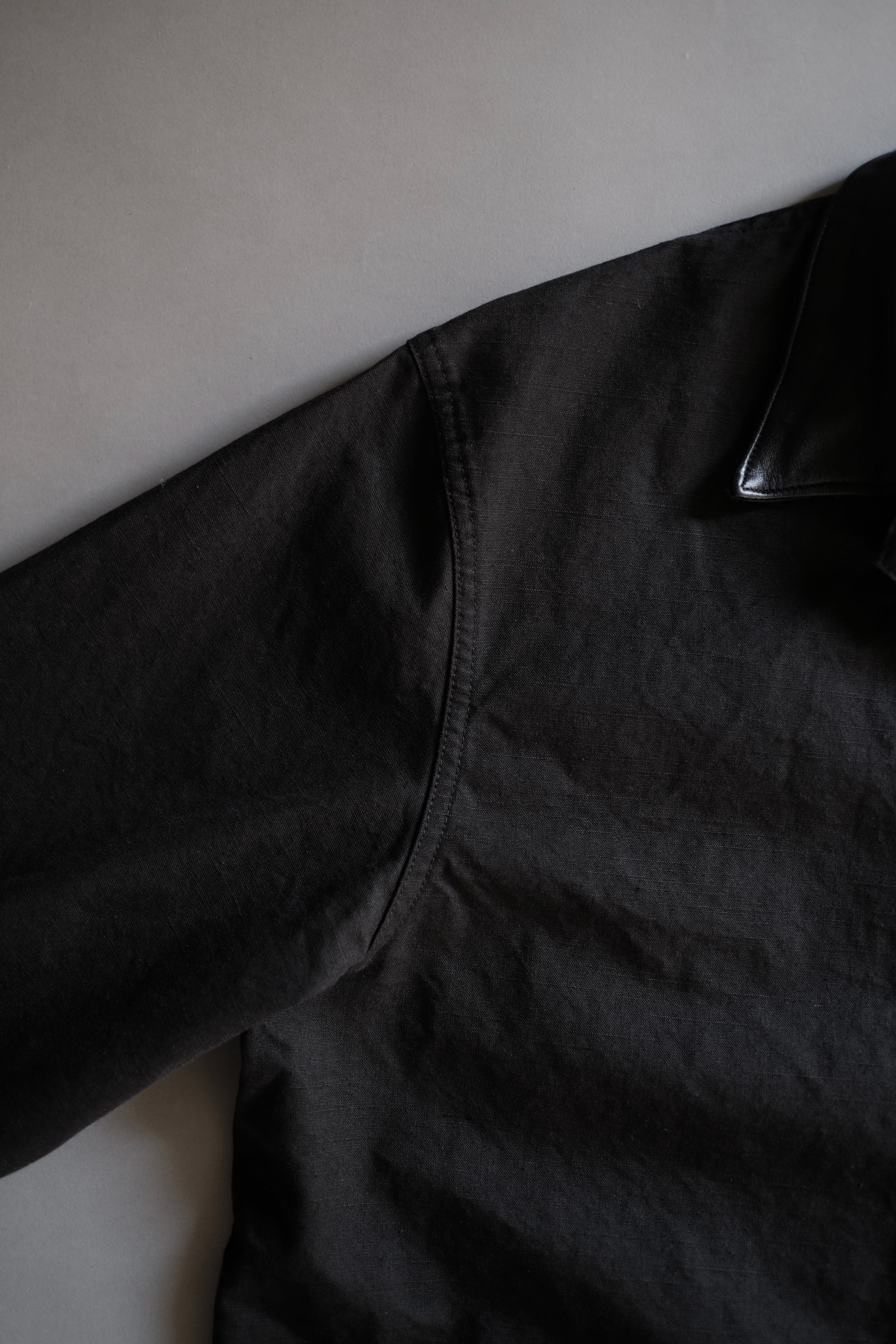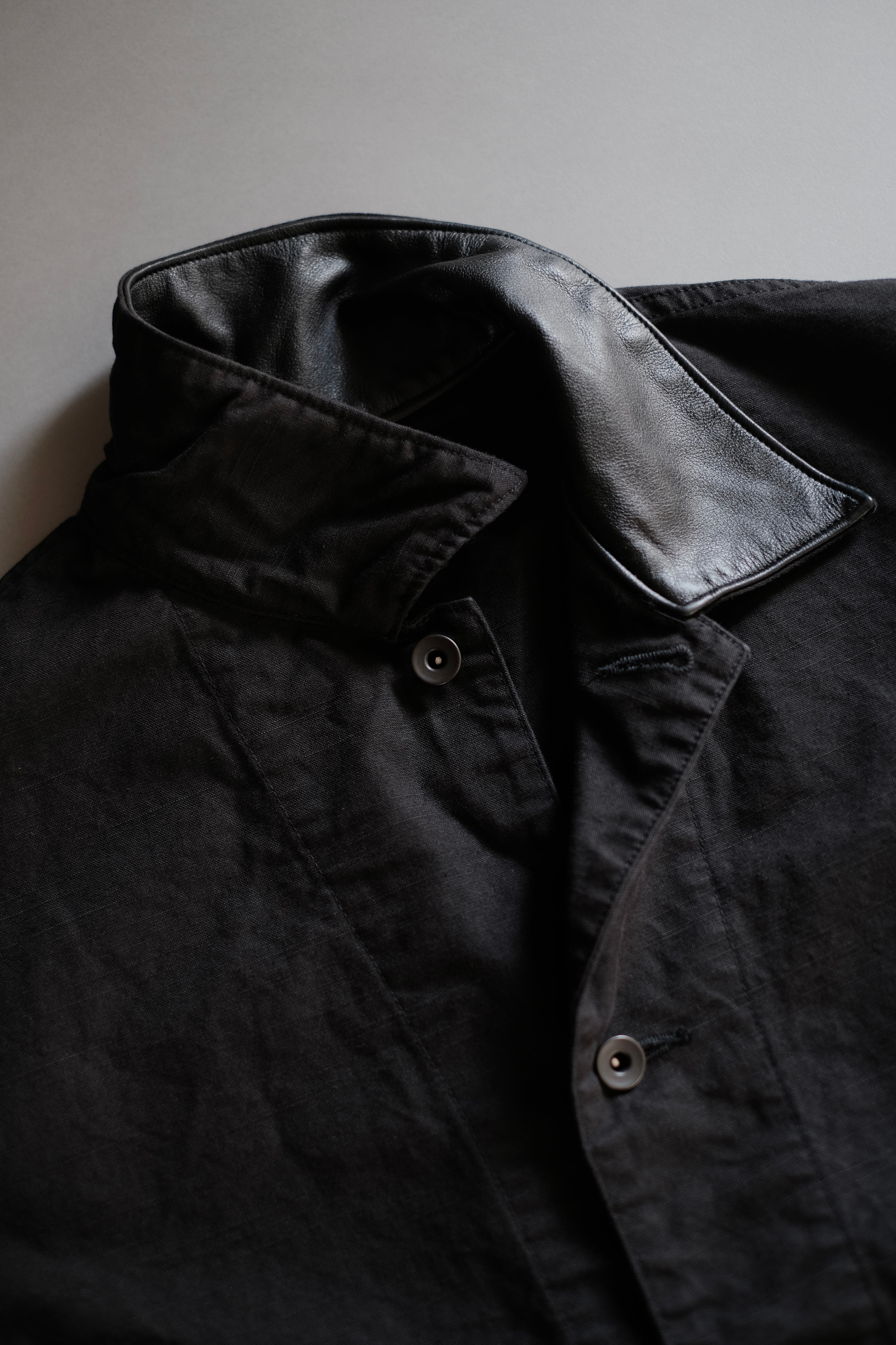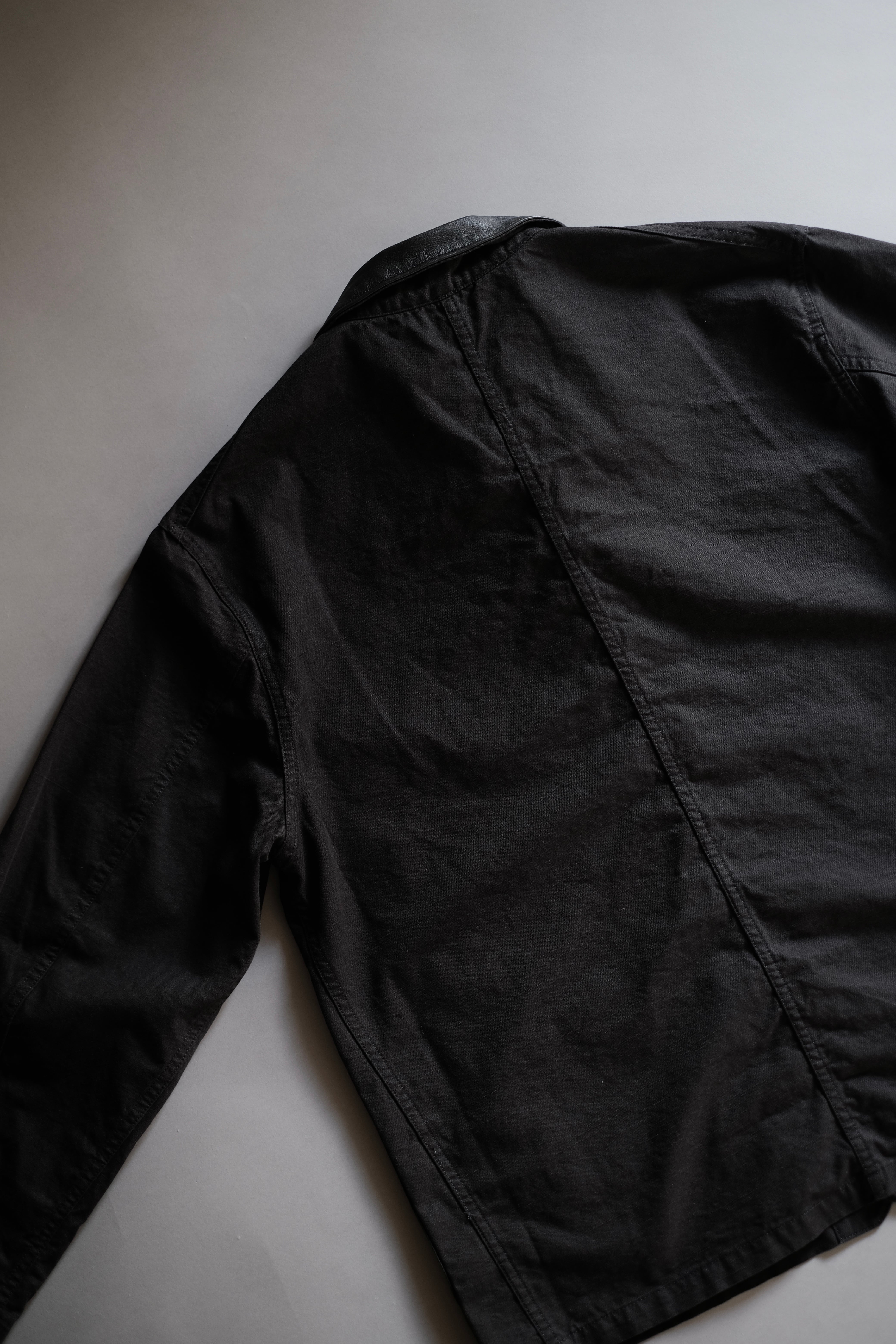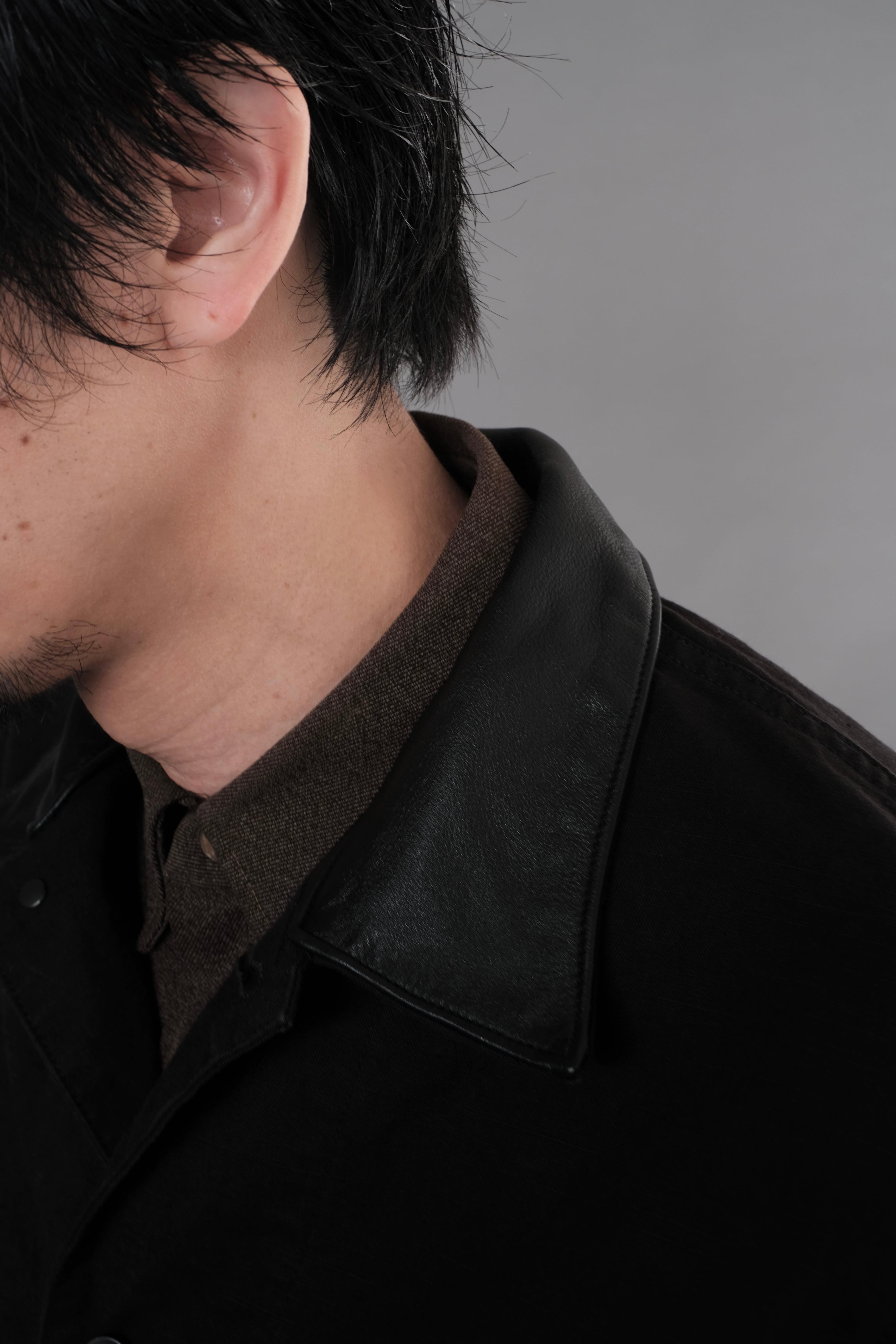 襟部分には艶を抑えたウォッシャブルレザーを採用しています。