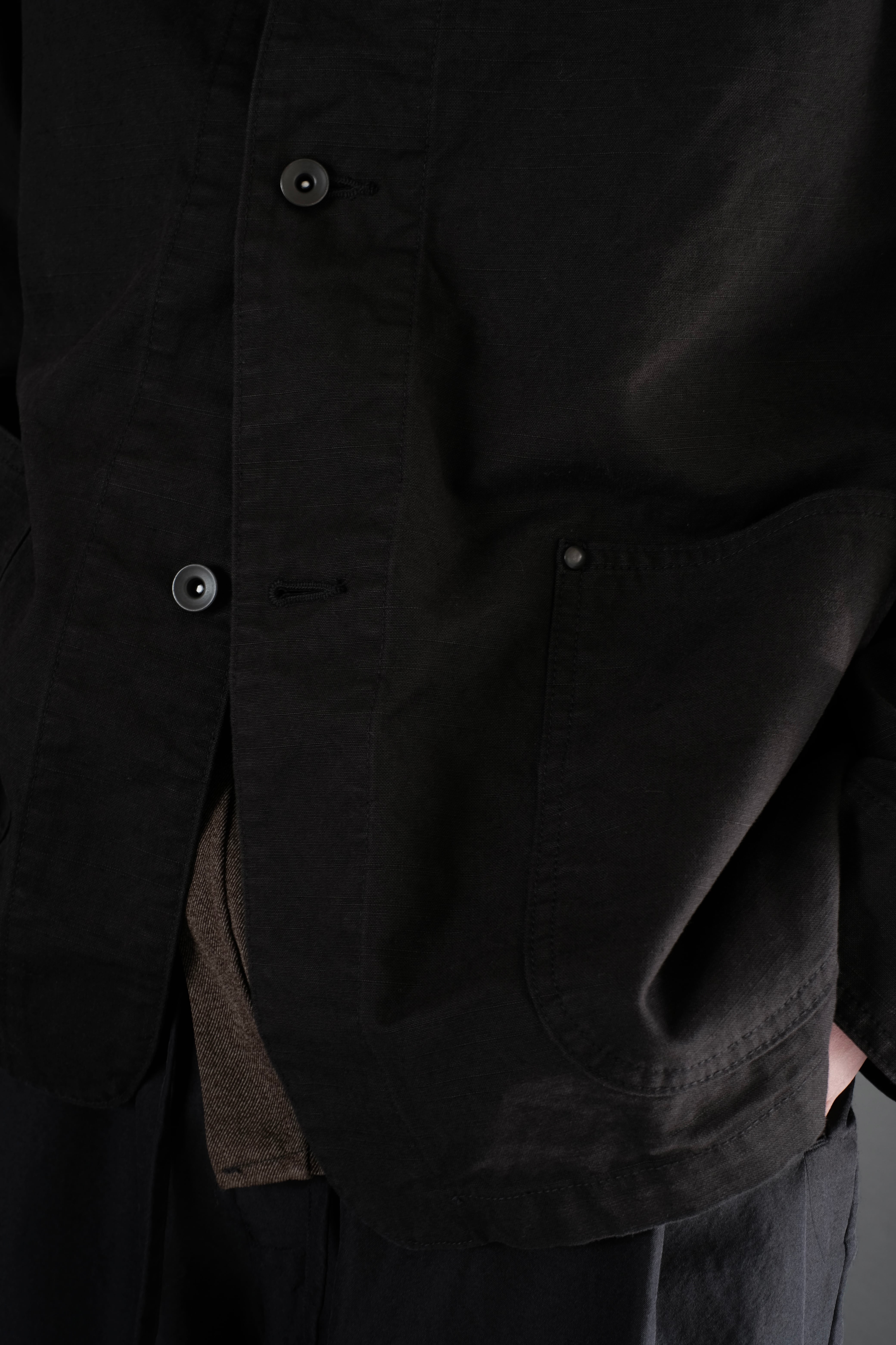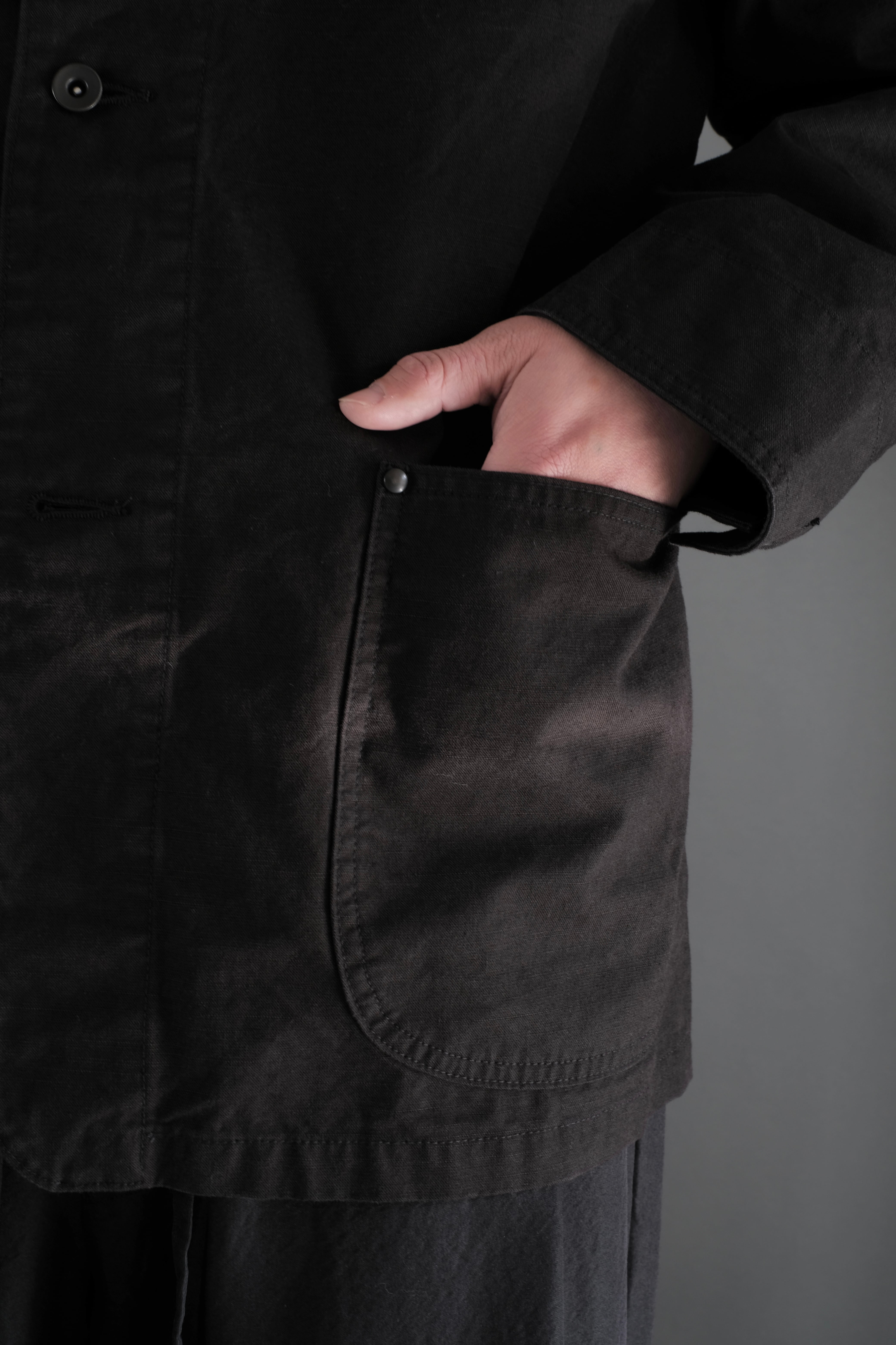 ワークウェアとしての本格的な要素は残しながら、身幅に程よくゆとりを持たせることで、モダンさと快適な着心地を両立させています。