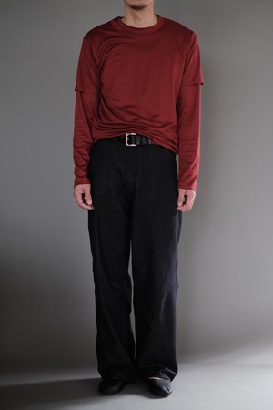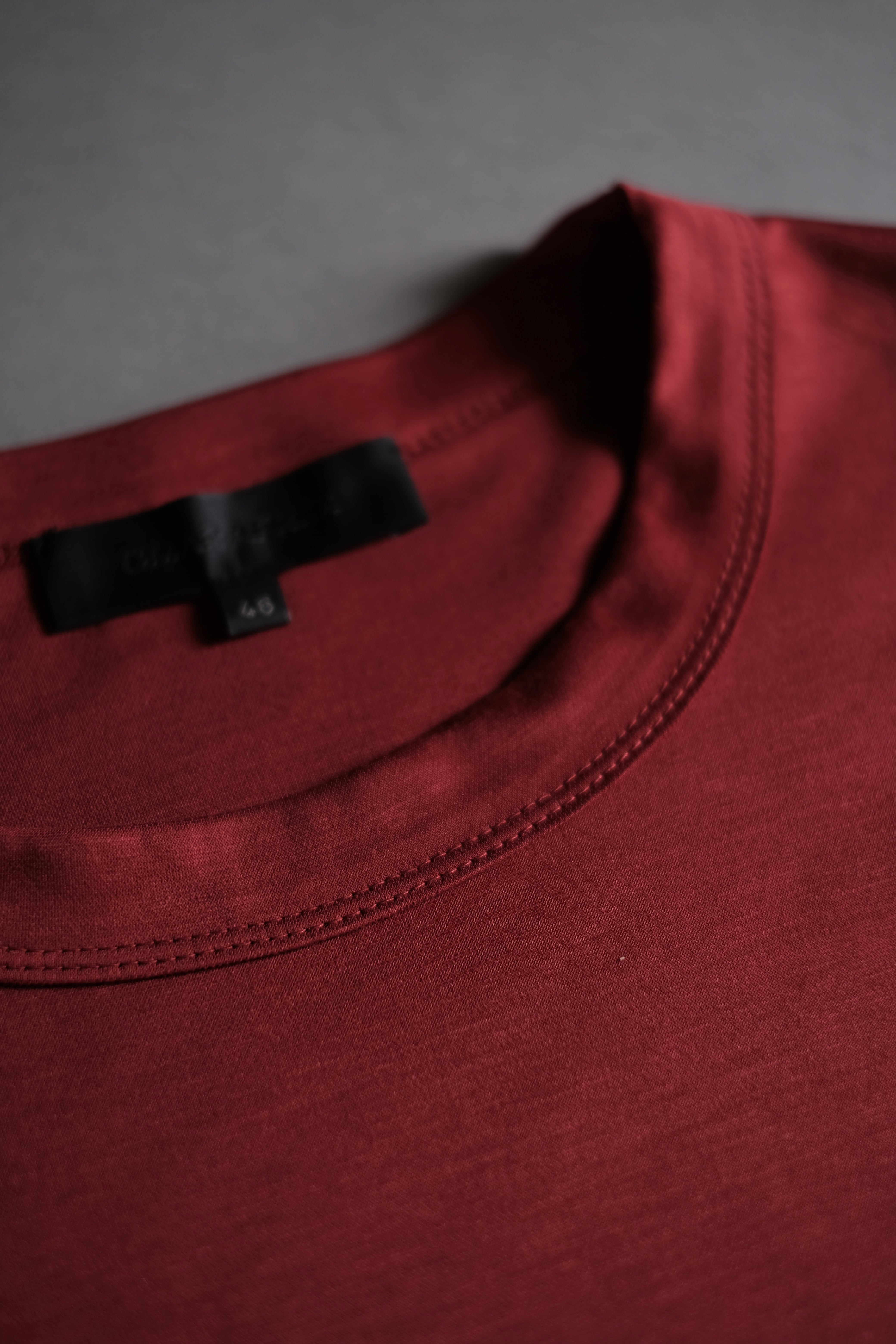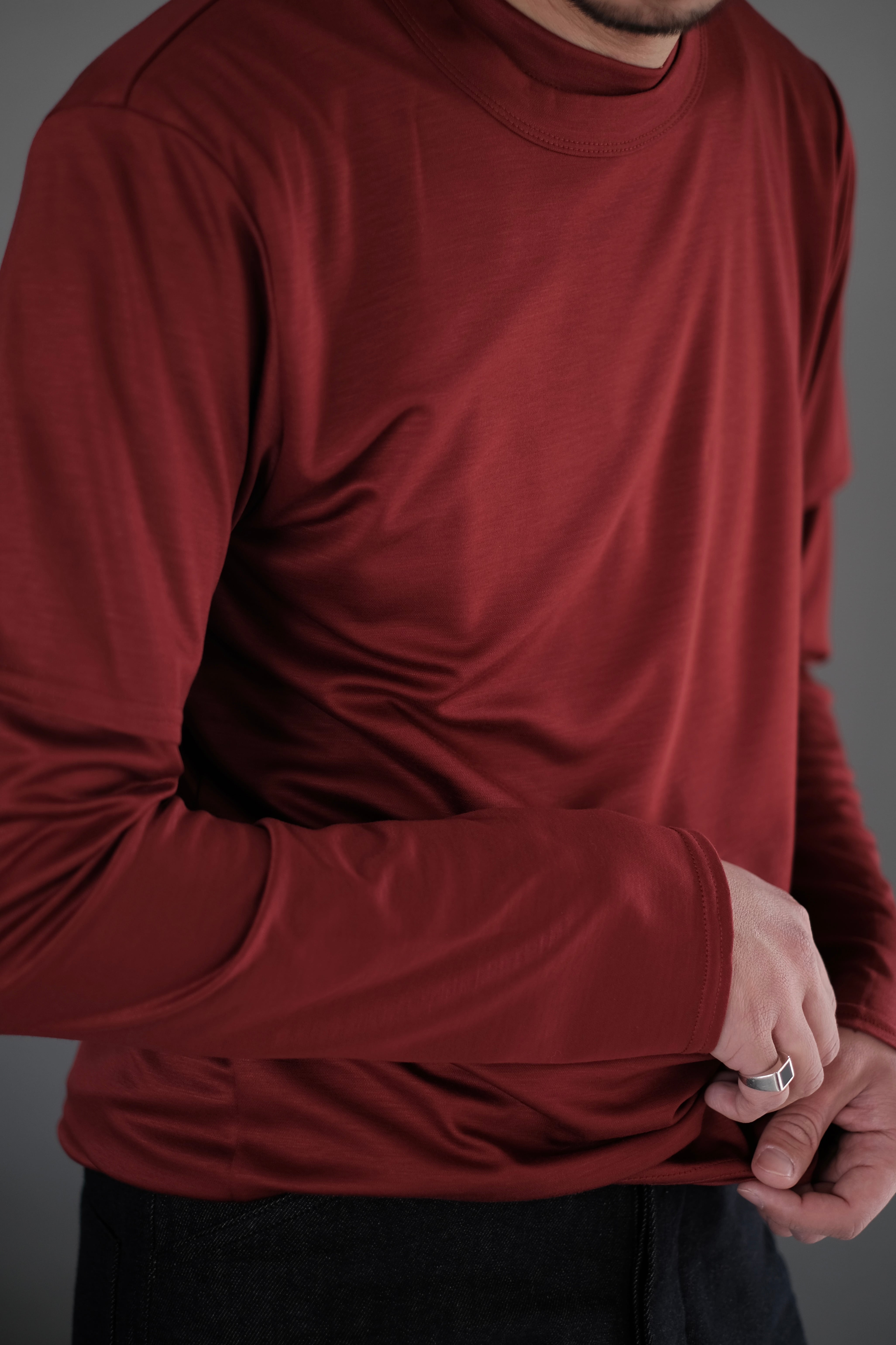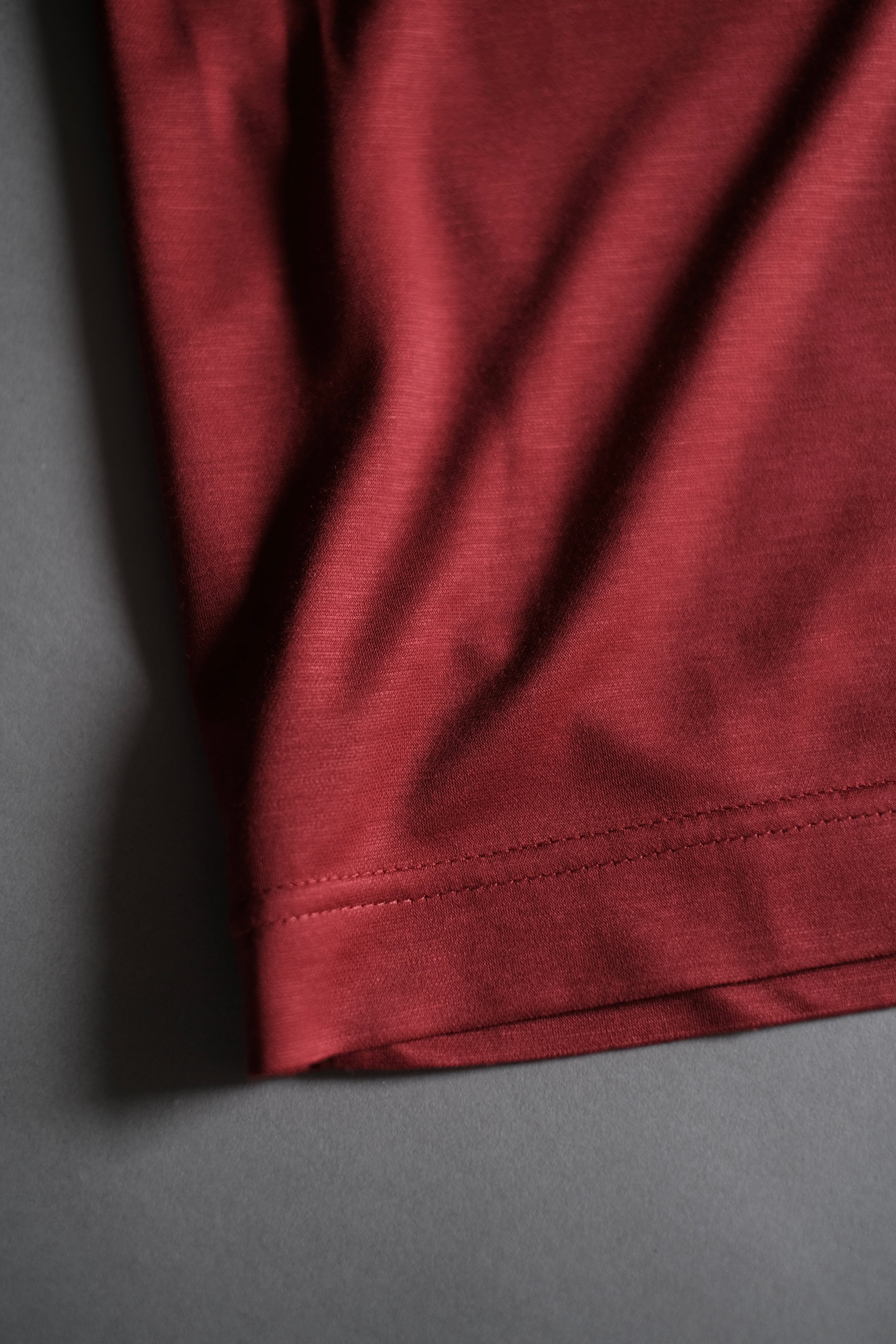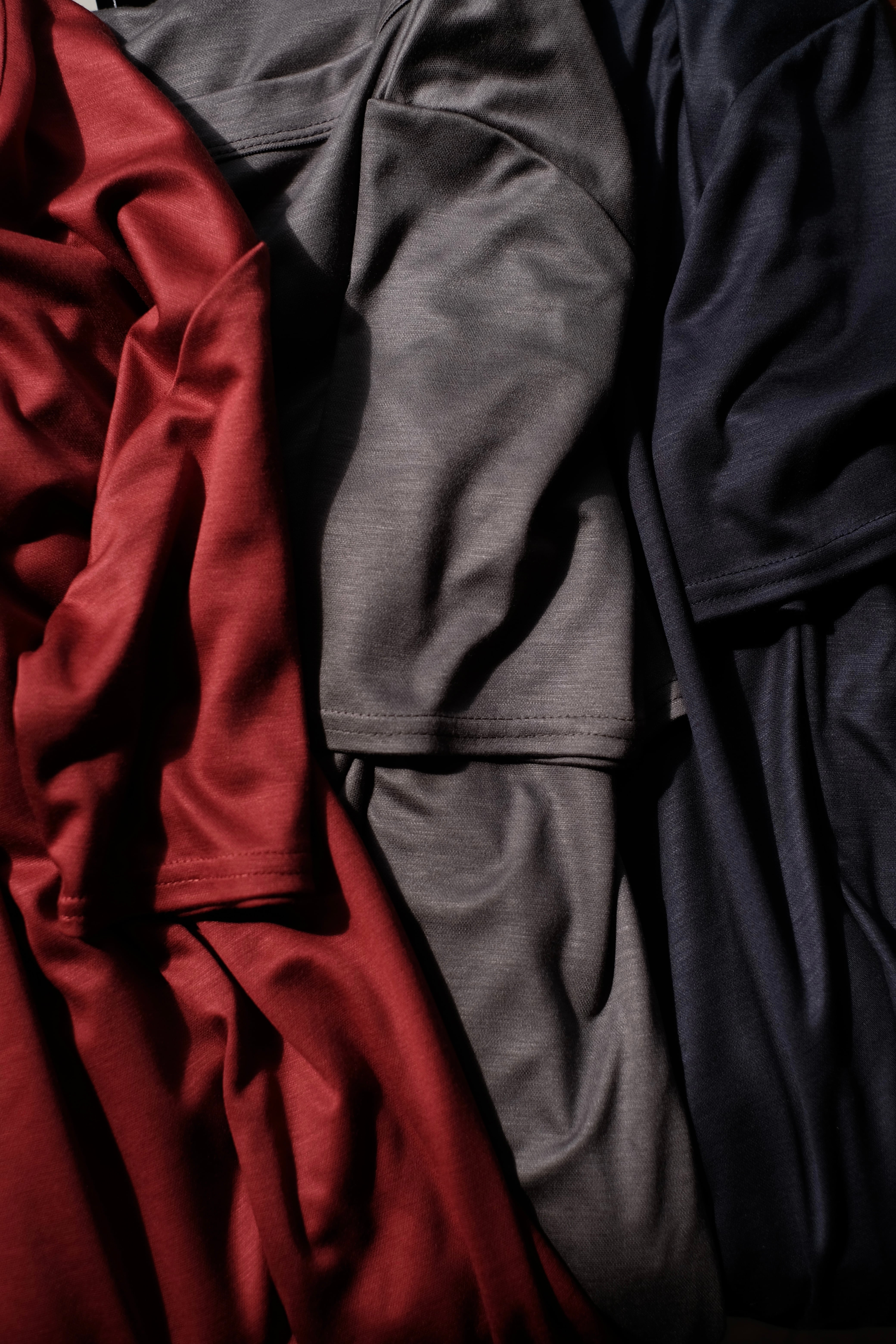 両面編みで高密度かつハイゲージに編み立てたハリと光沢を兼ね備えた上質なジャージー素材。