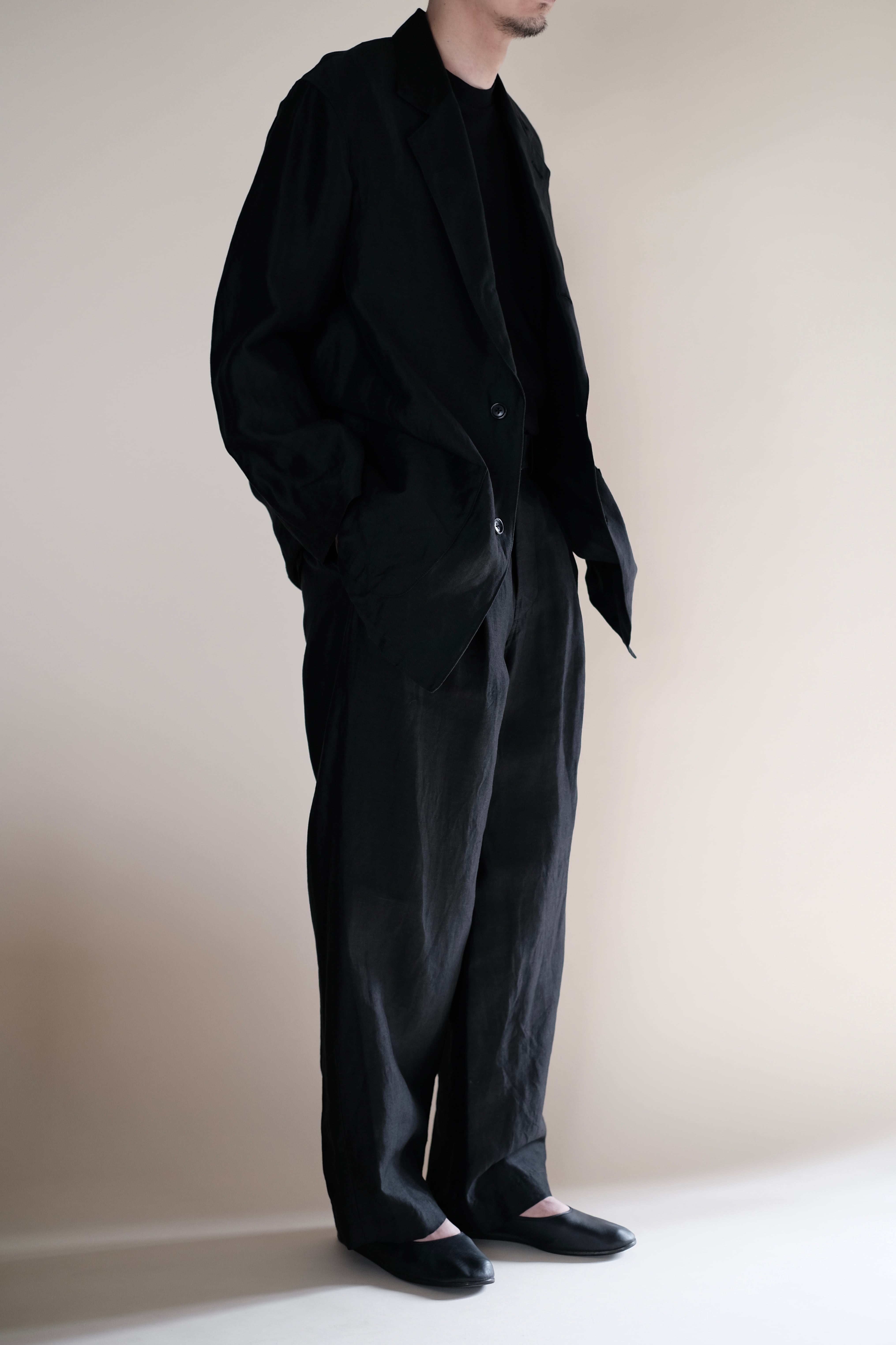 リネンならではのナチュラルなムラ感と裏面に使用するキュプラによる腕を通した際のサラッとした滑らかなタッチが印象的な、特徴的な素材。