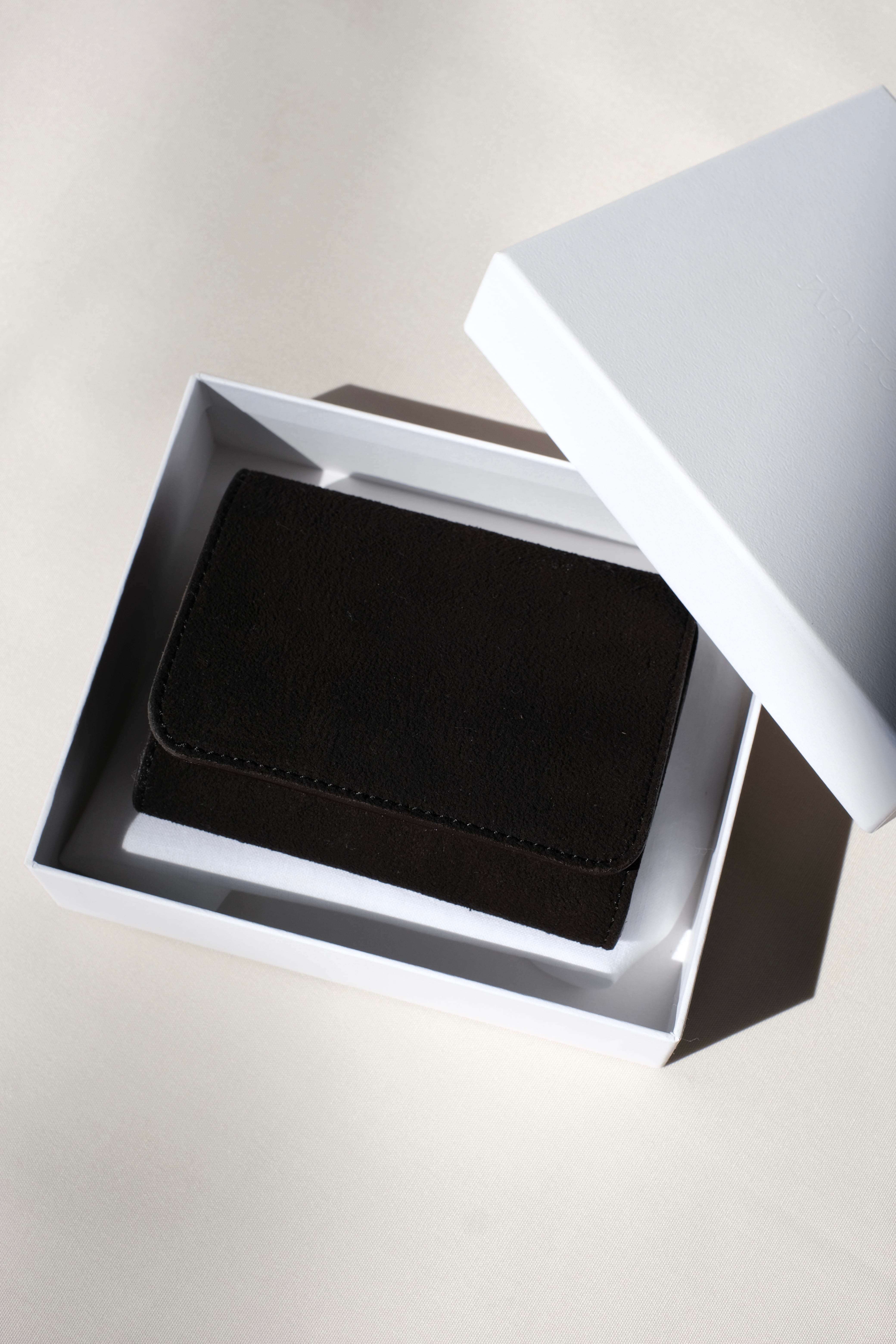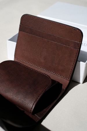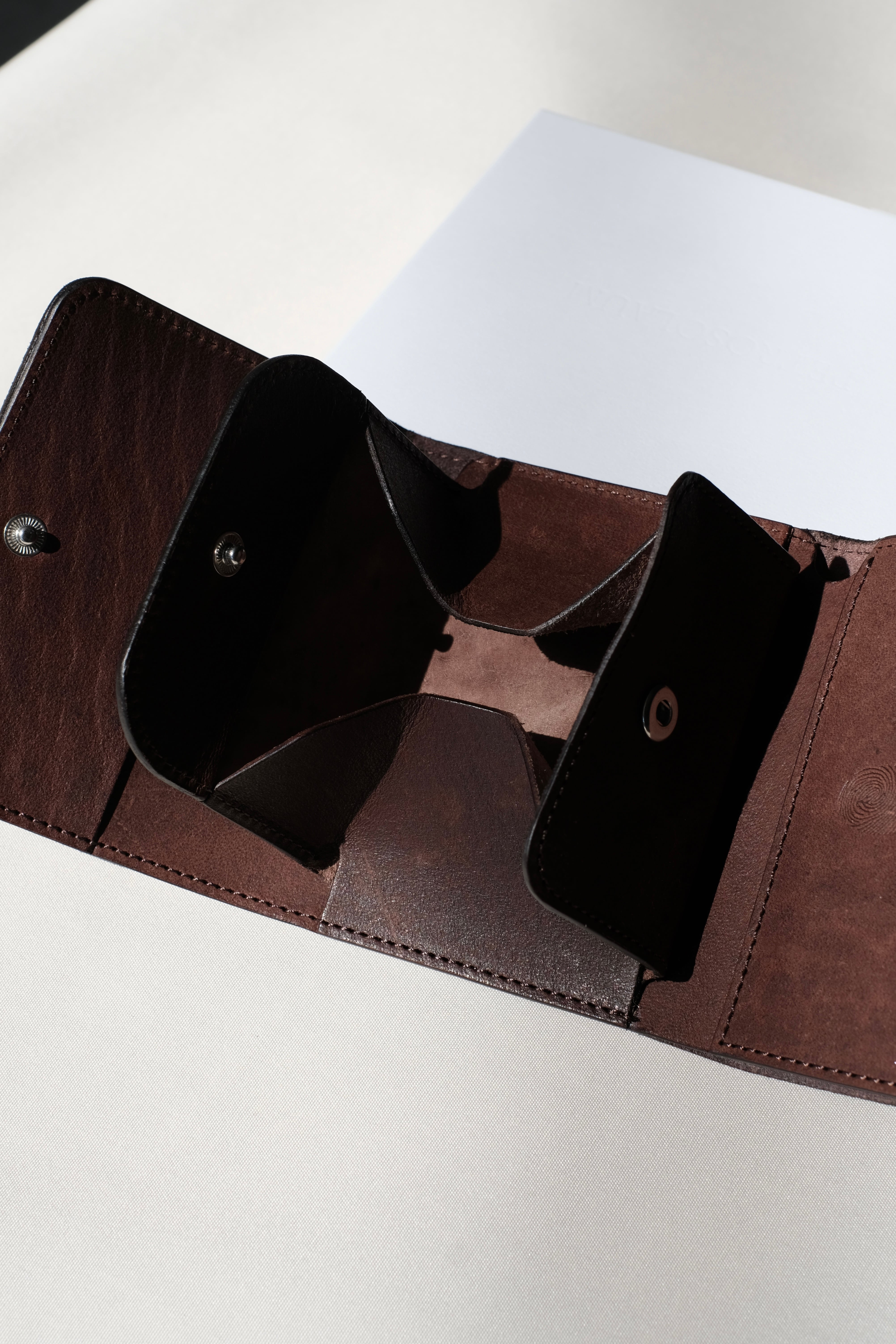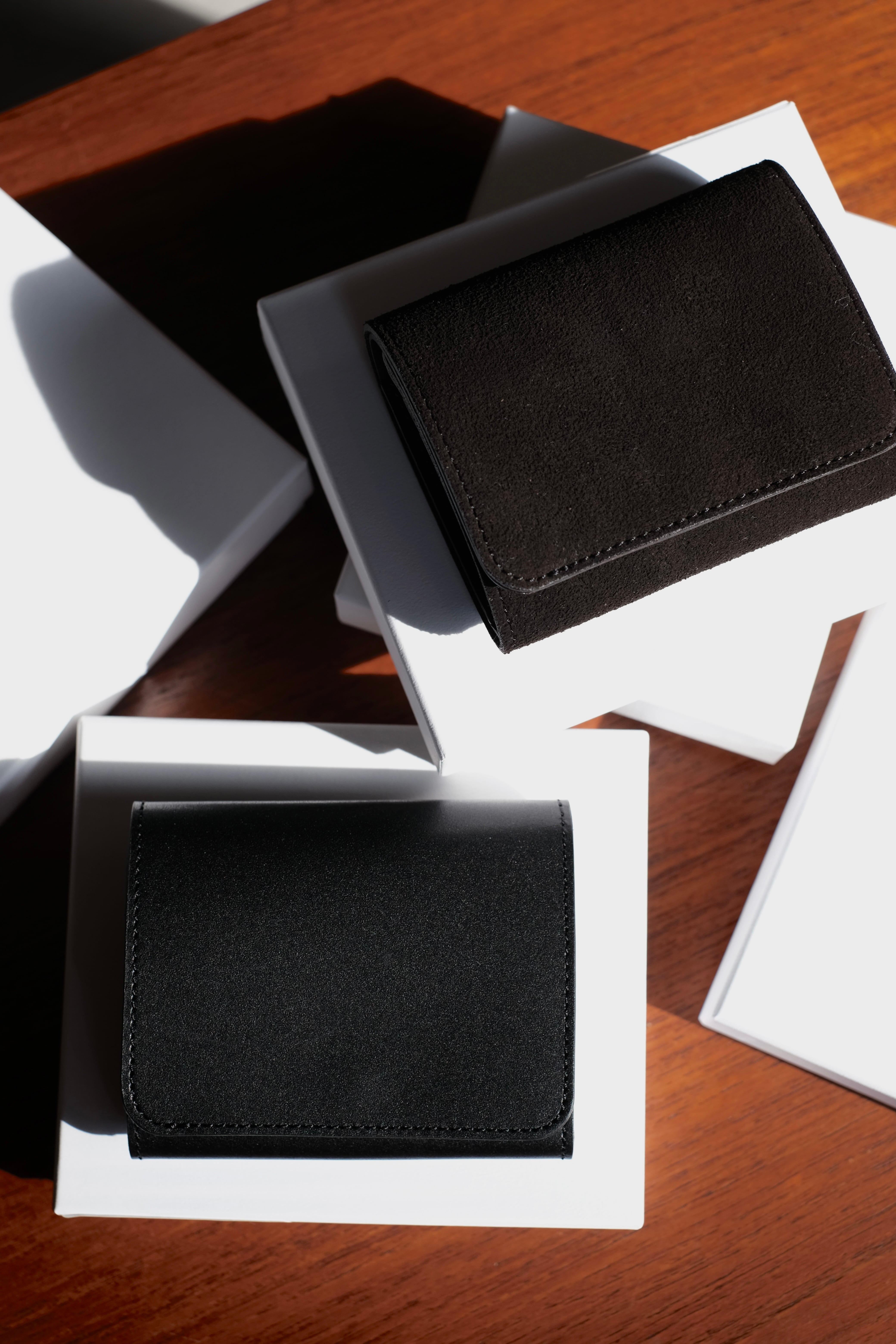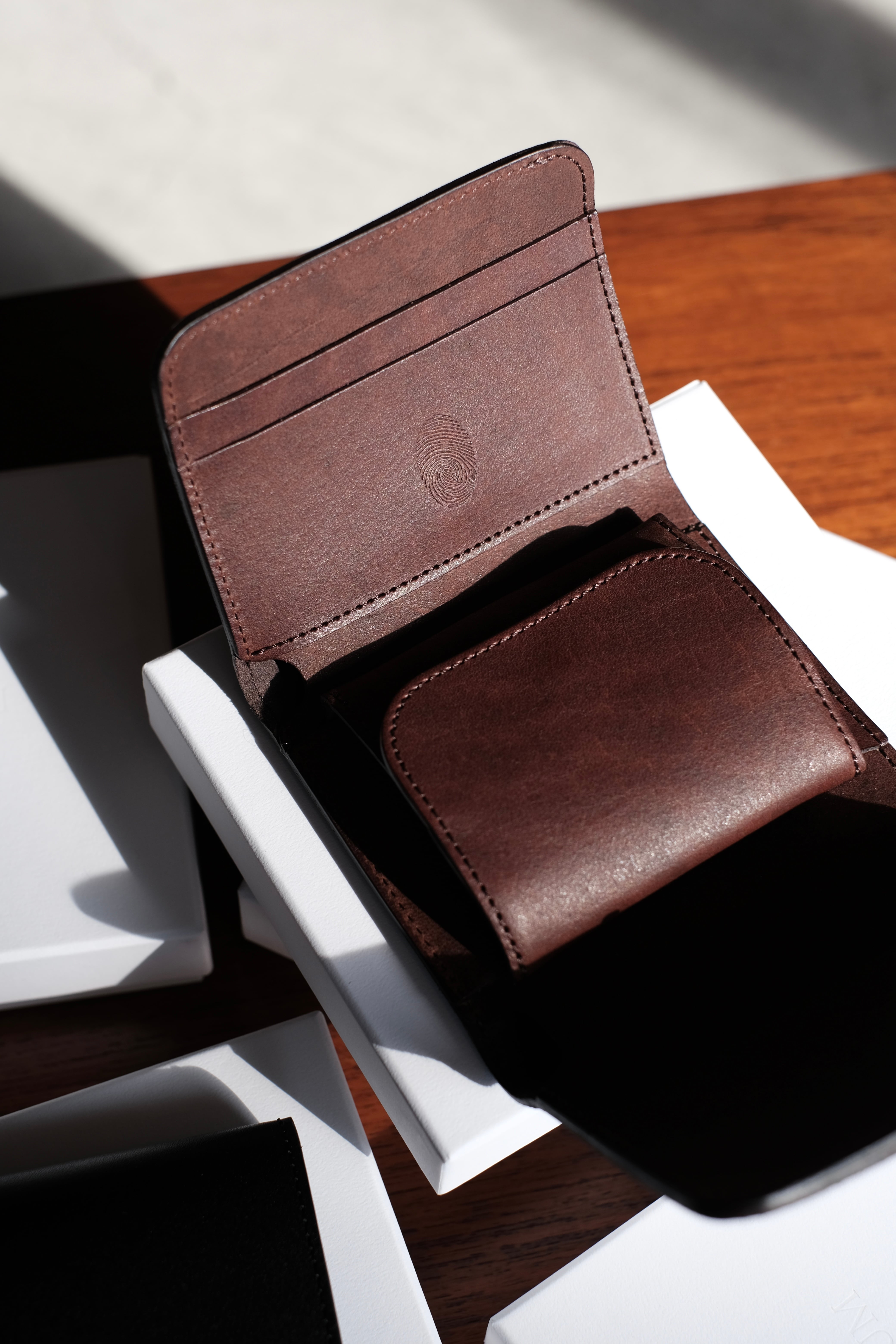 コンパクトな三つ折り仕様に、無駄を省いたミニマルなデザイン。マチ付きのコインポケットで中身が見やすく、カードや紙幣もすっきり収納可能です。