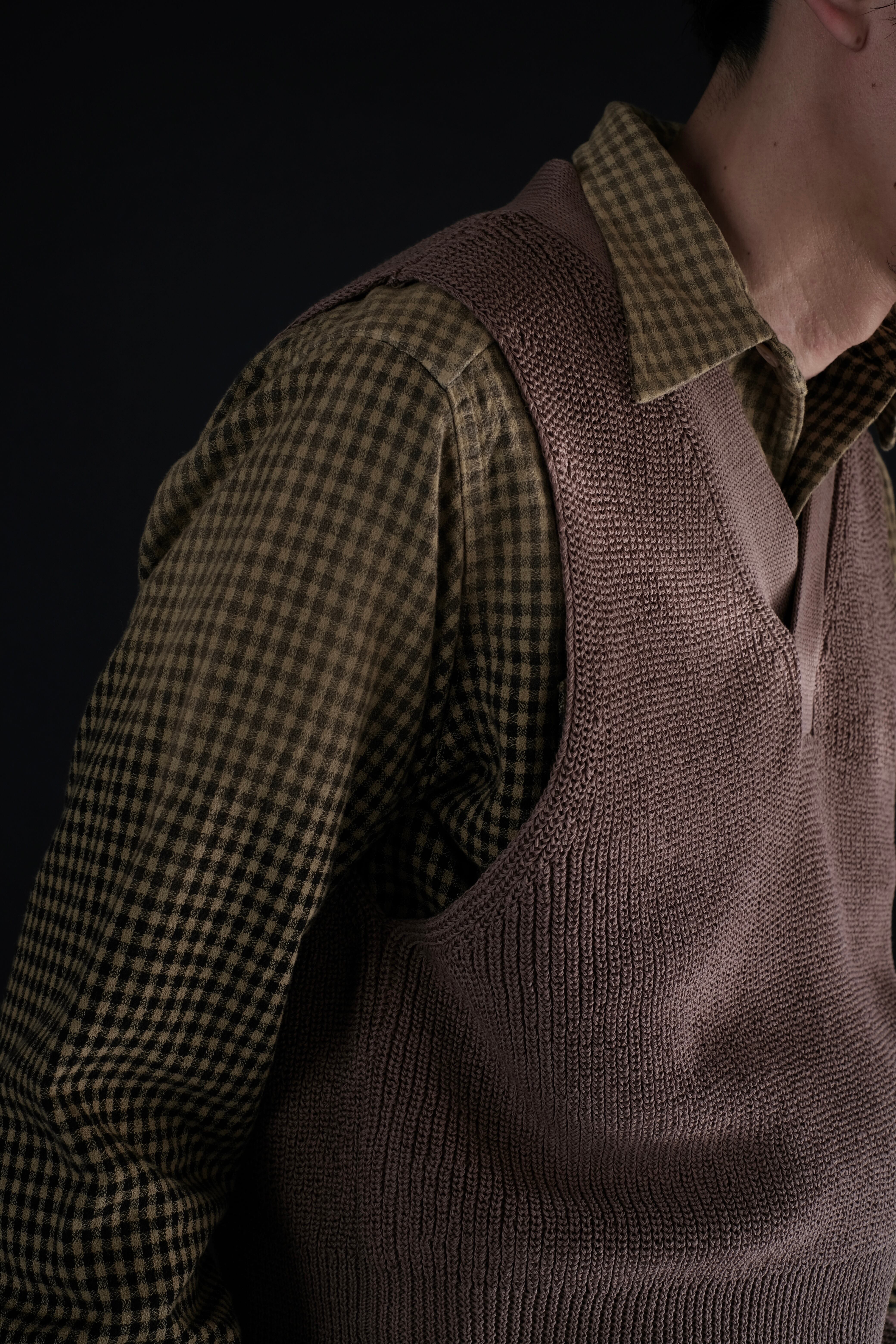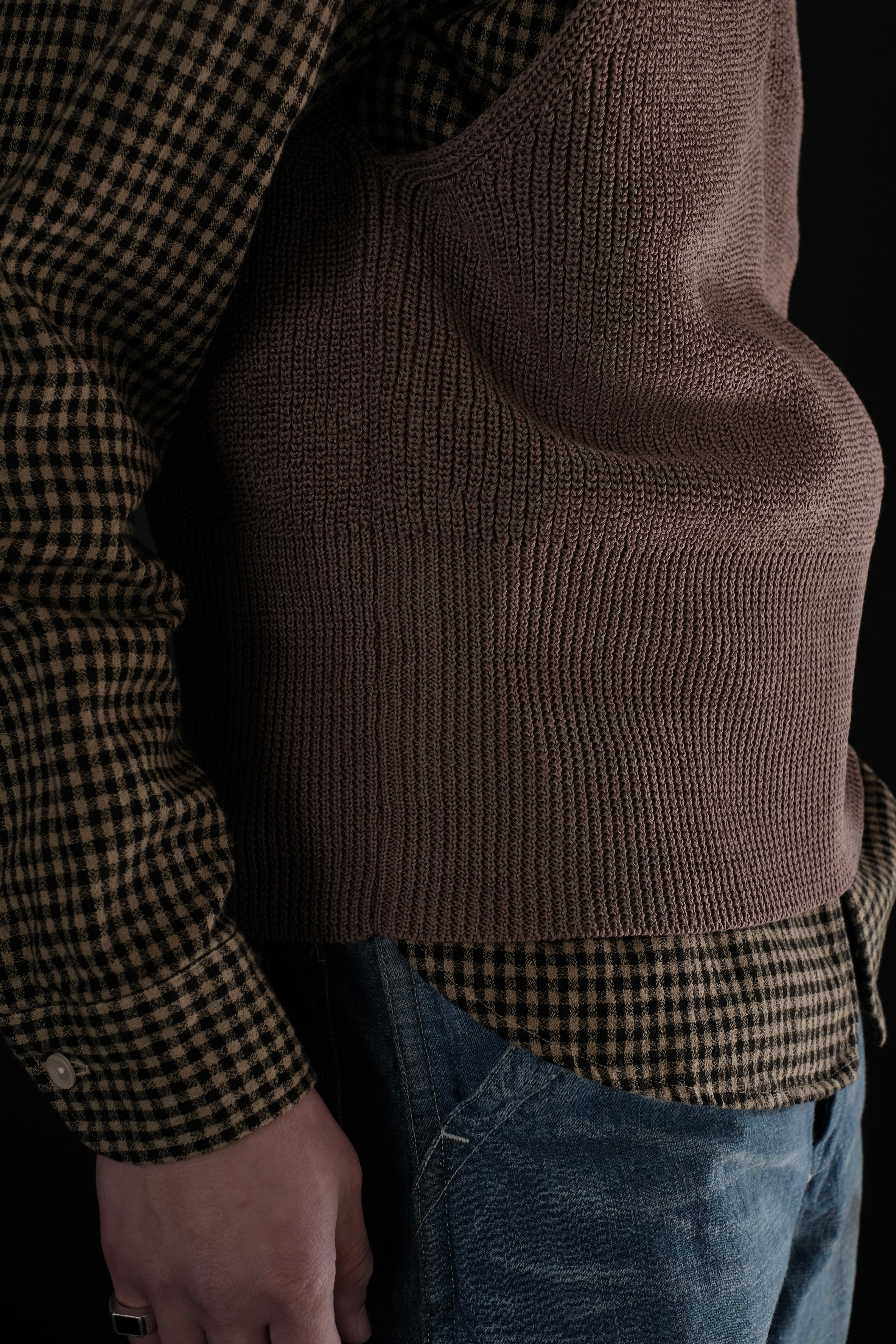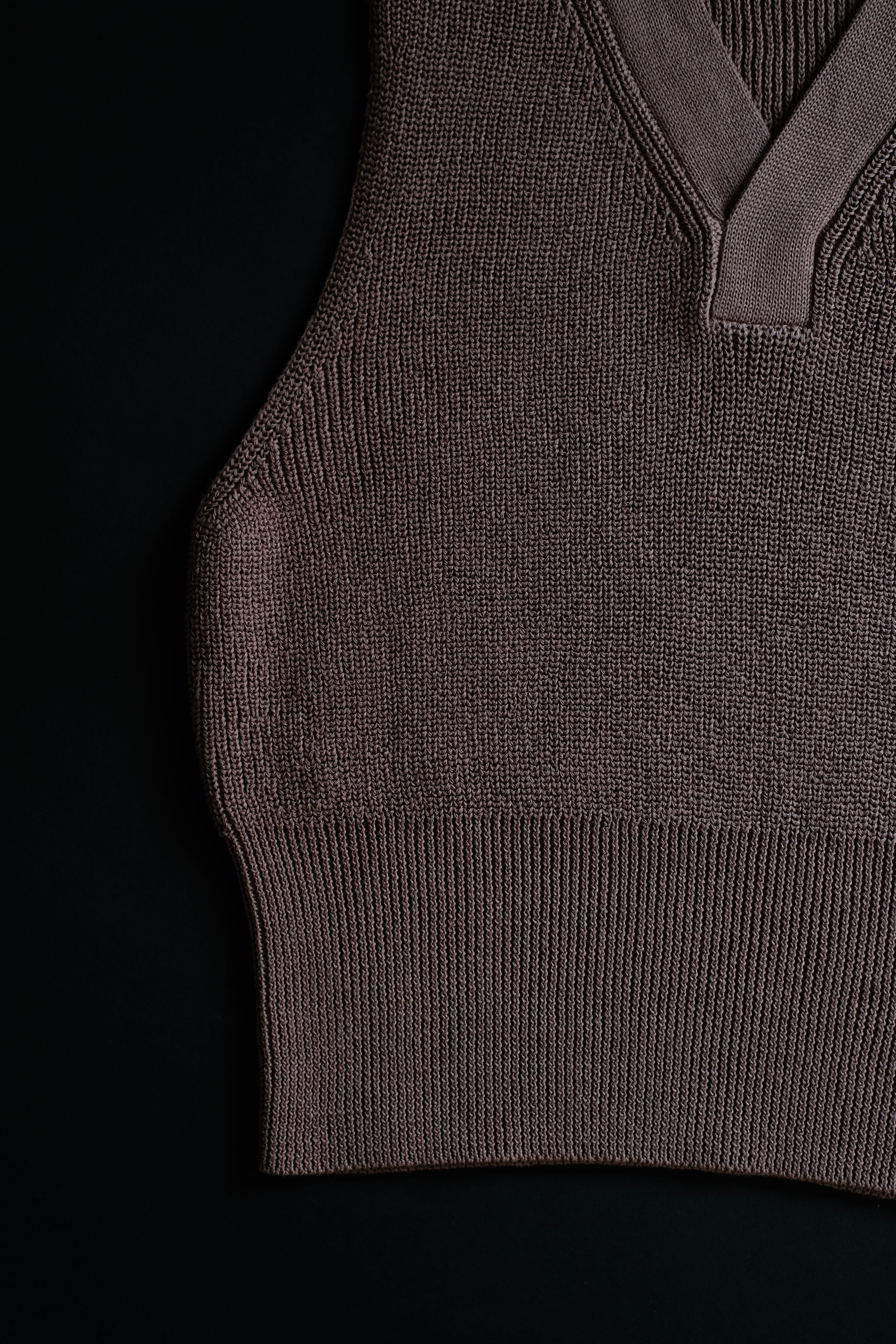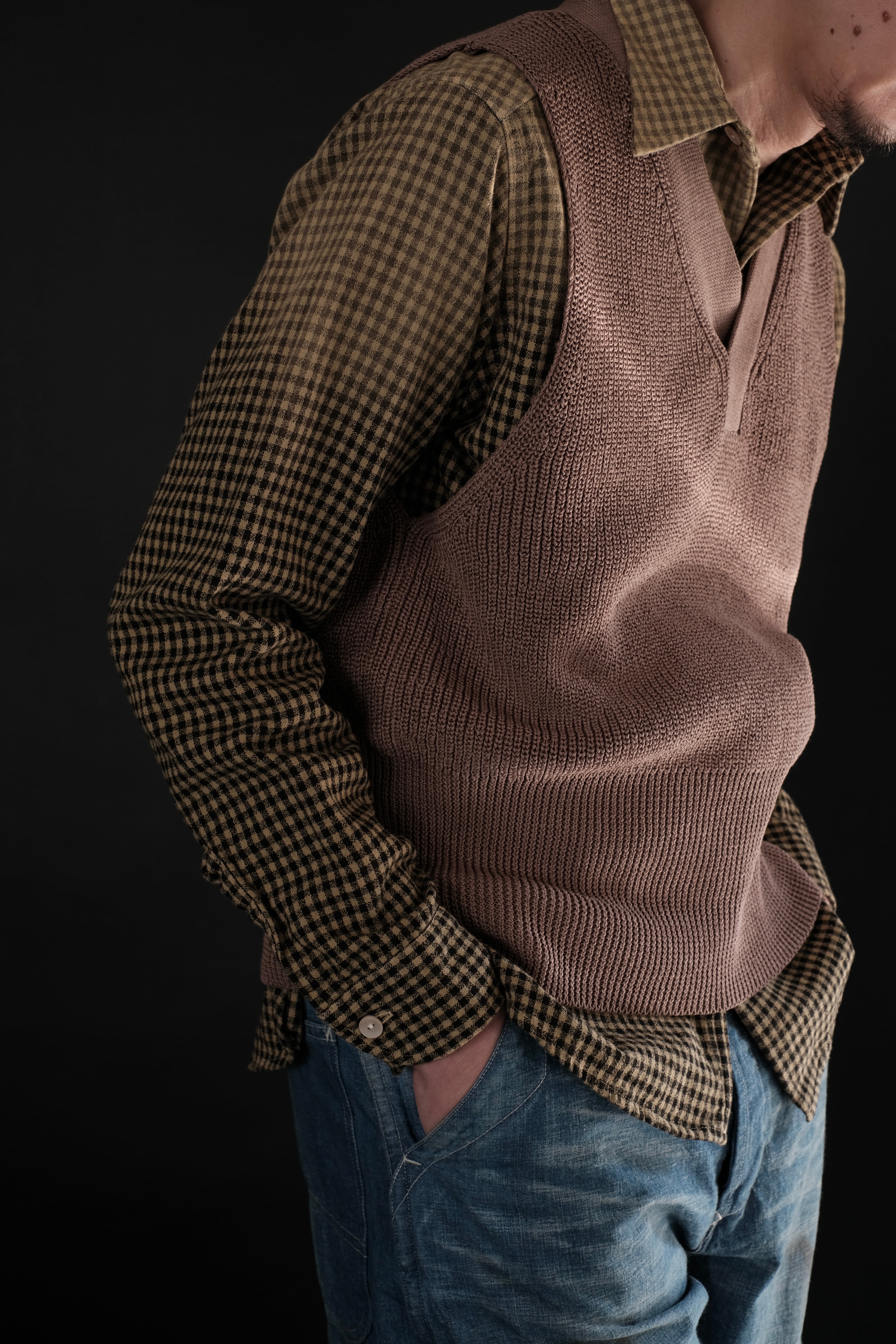 Lot.529同様、ローゲージながら綿糸に疑麻加工を施すことで、ドライタッチかつ軽量化を実現し、春夏でも着用可能な仕様とした。当時の写真を参考にしながら、シルエット調整もしている。