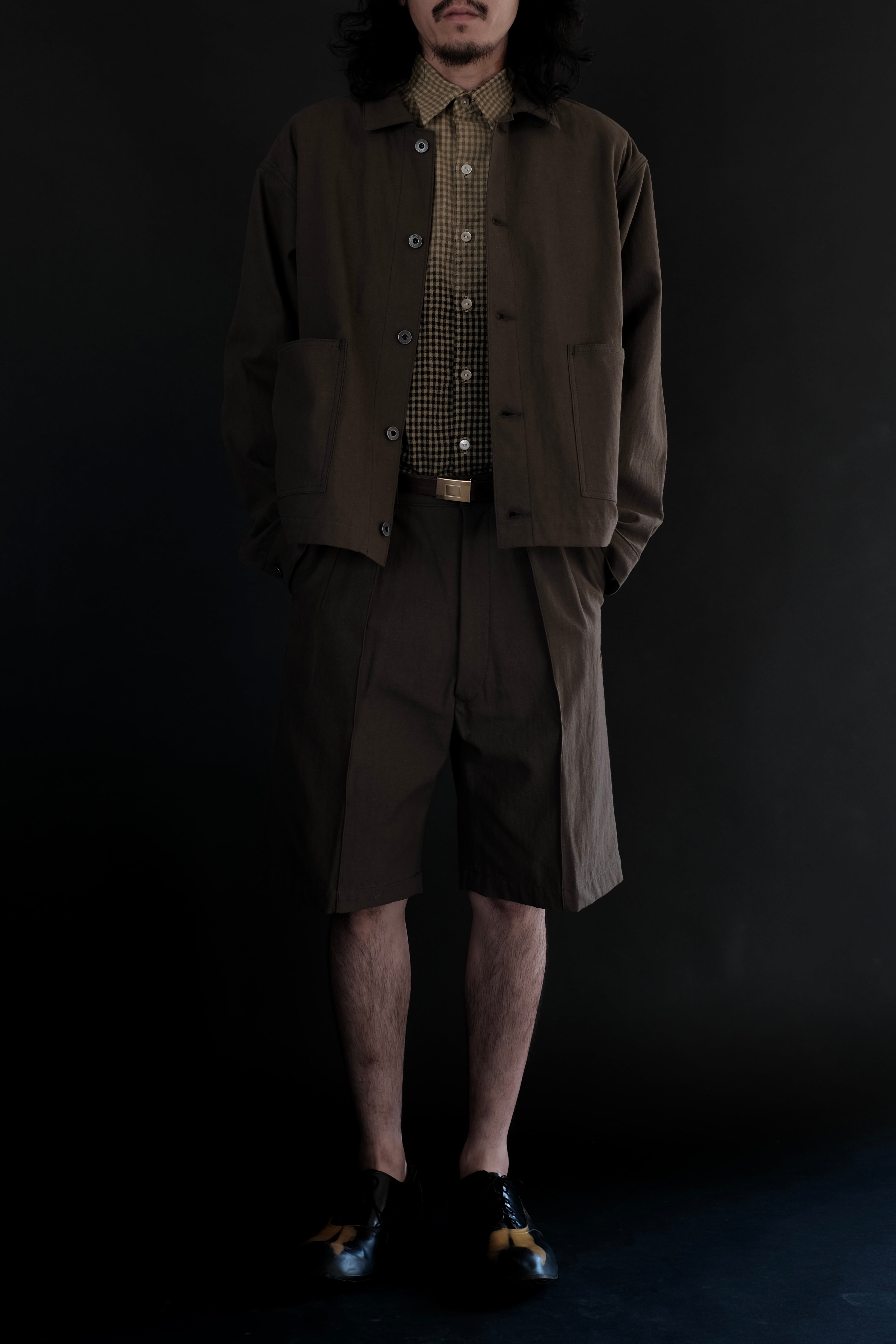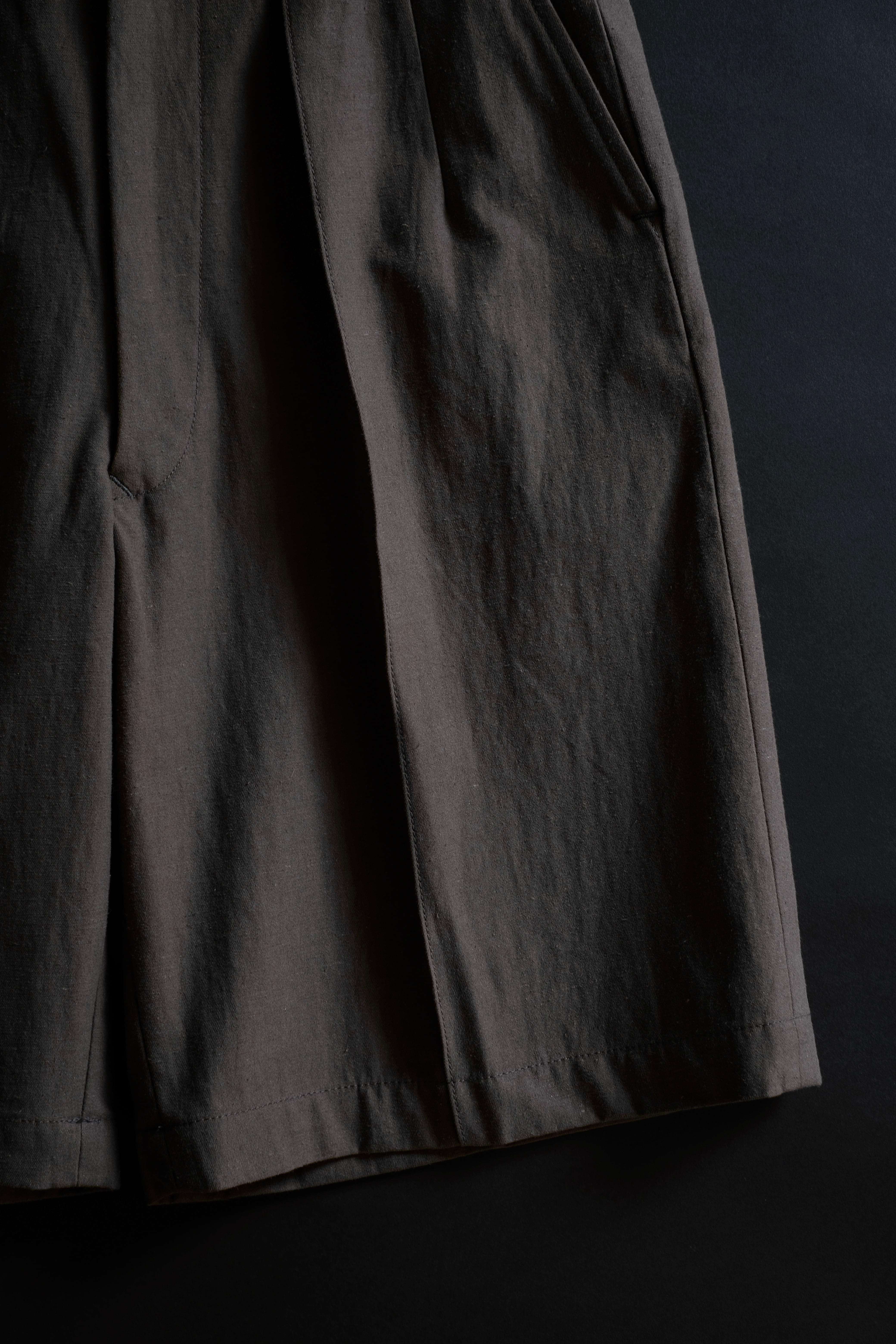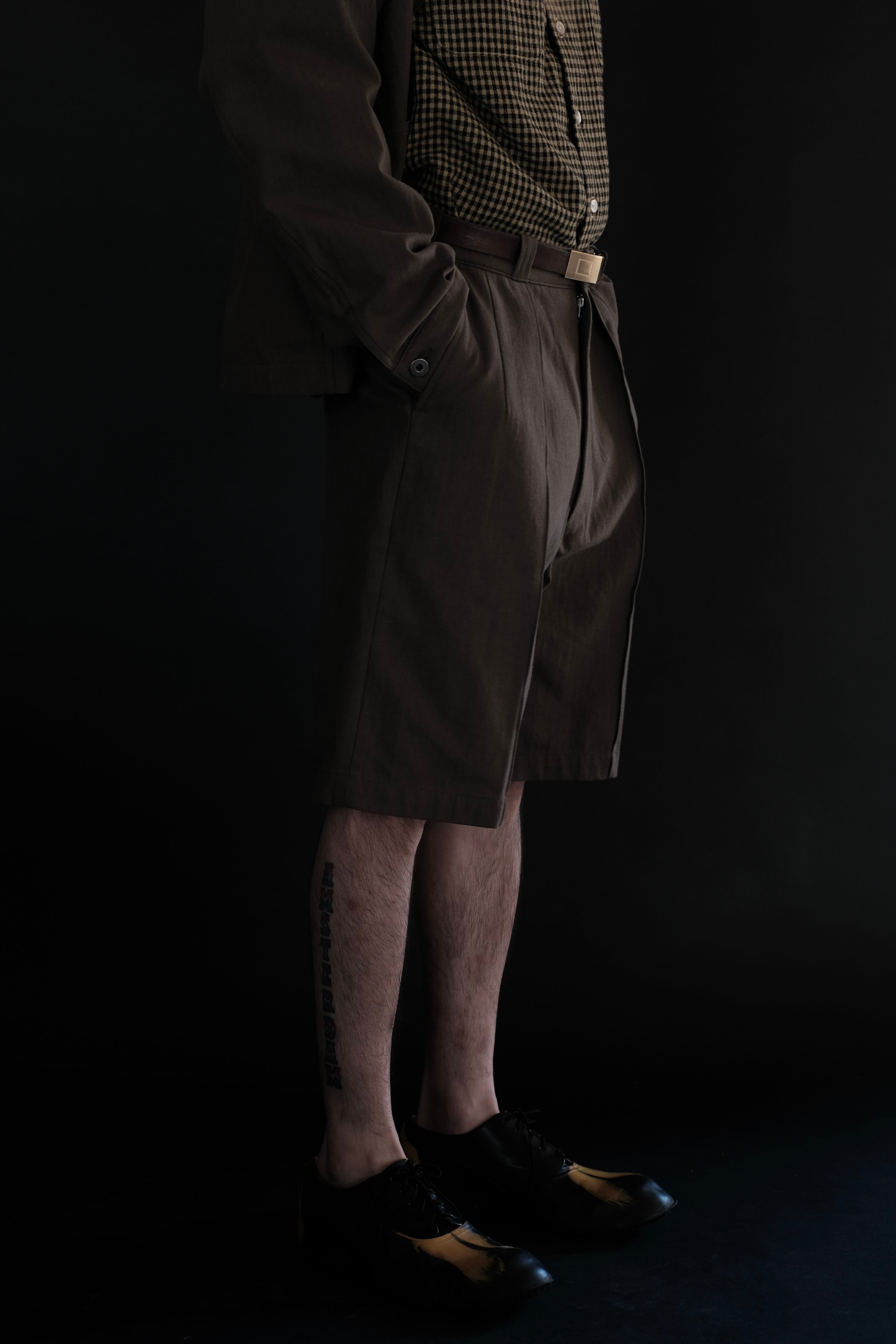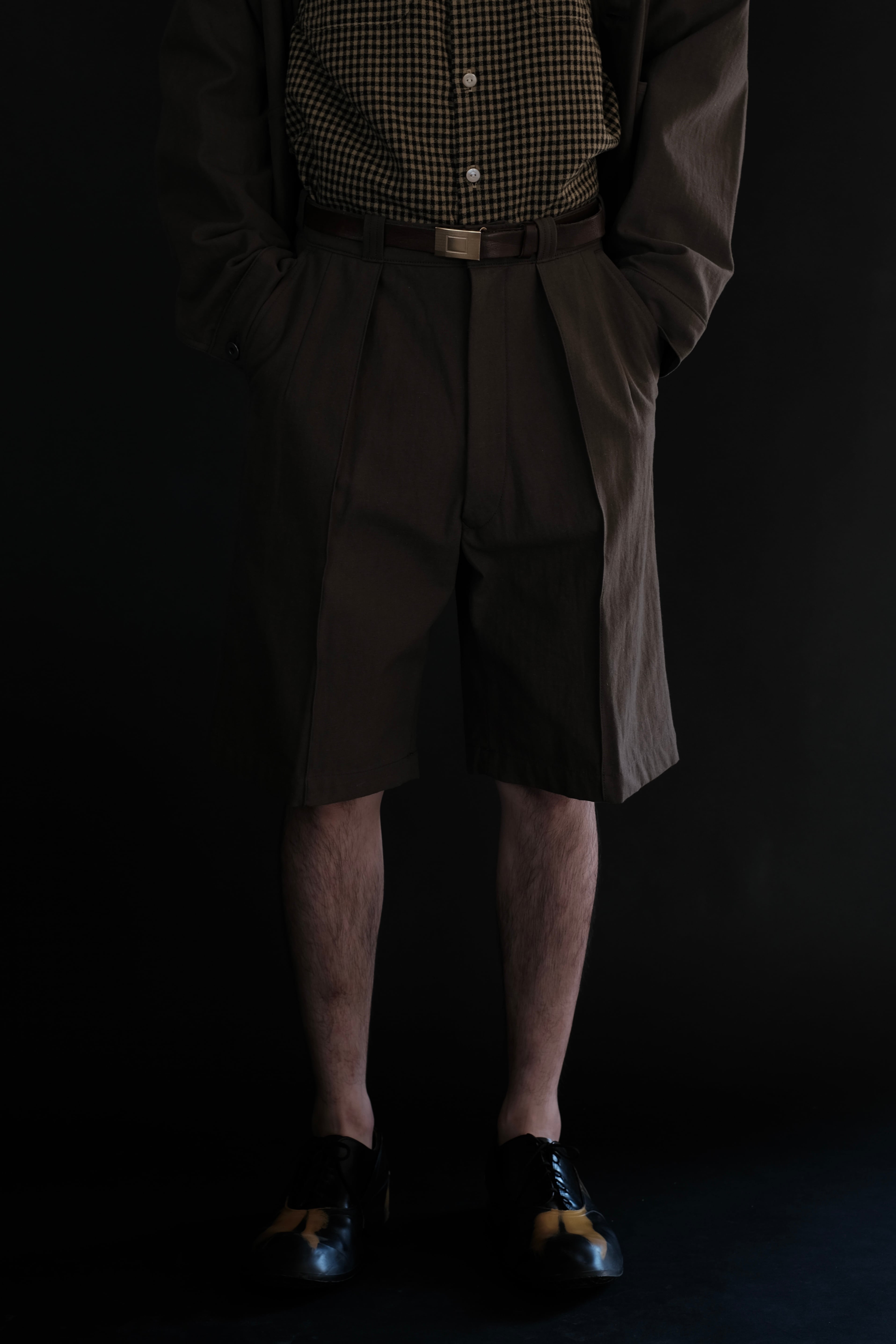 2タックの内側のタックがそのままセンタープリーツとして仕立てられているのが特徴で、カジュアルになりすぎないショーツとしてデザインした。