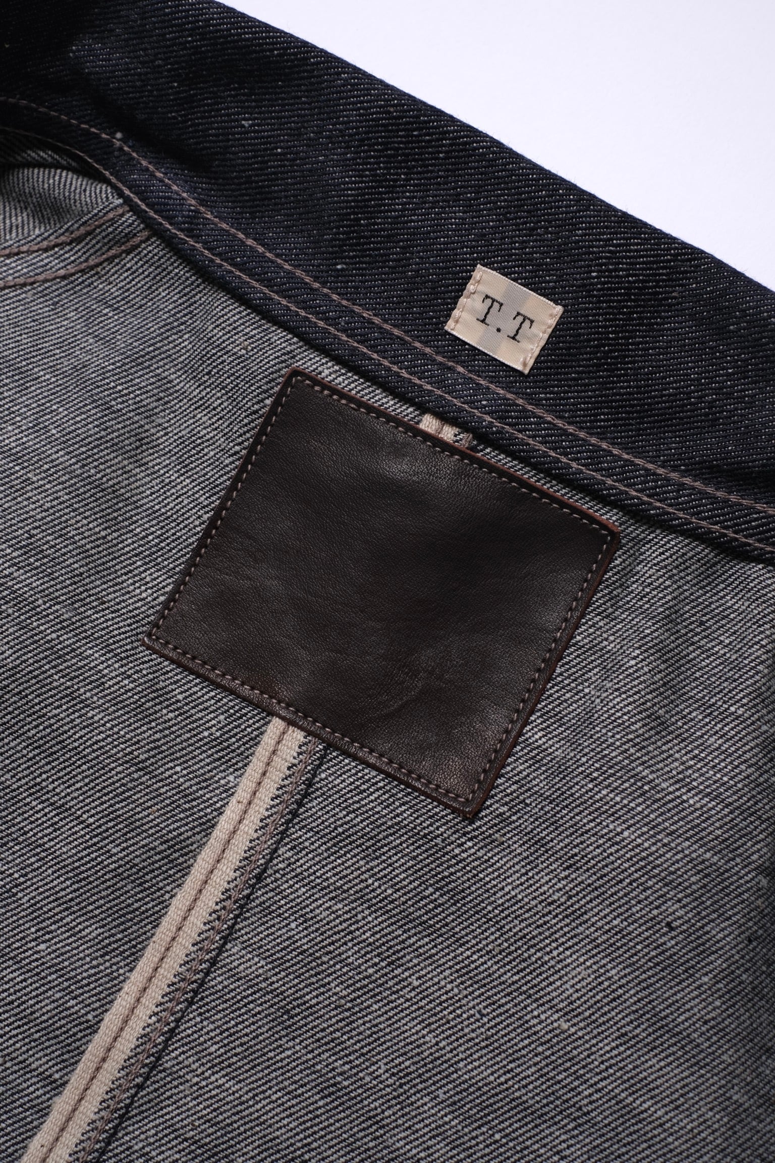 「白耳」のセルヴィッジデニム生地になっており、前身返しやカフス裏など各所に白耳を利用している。