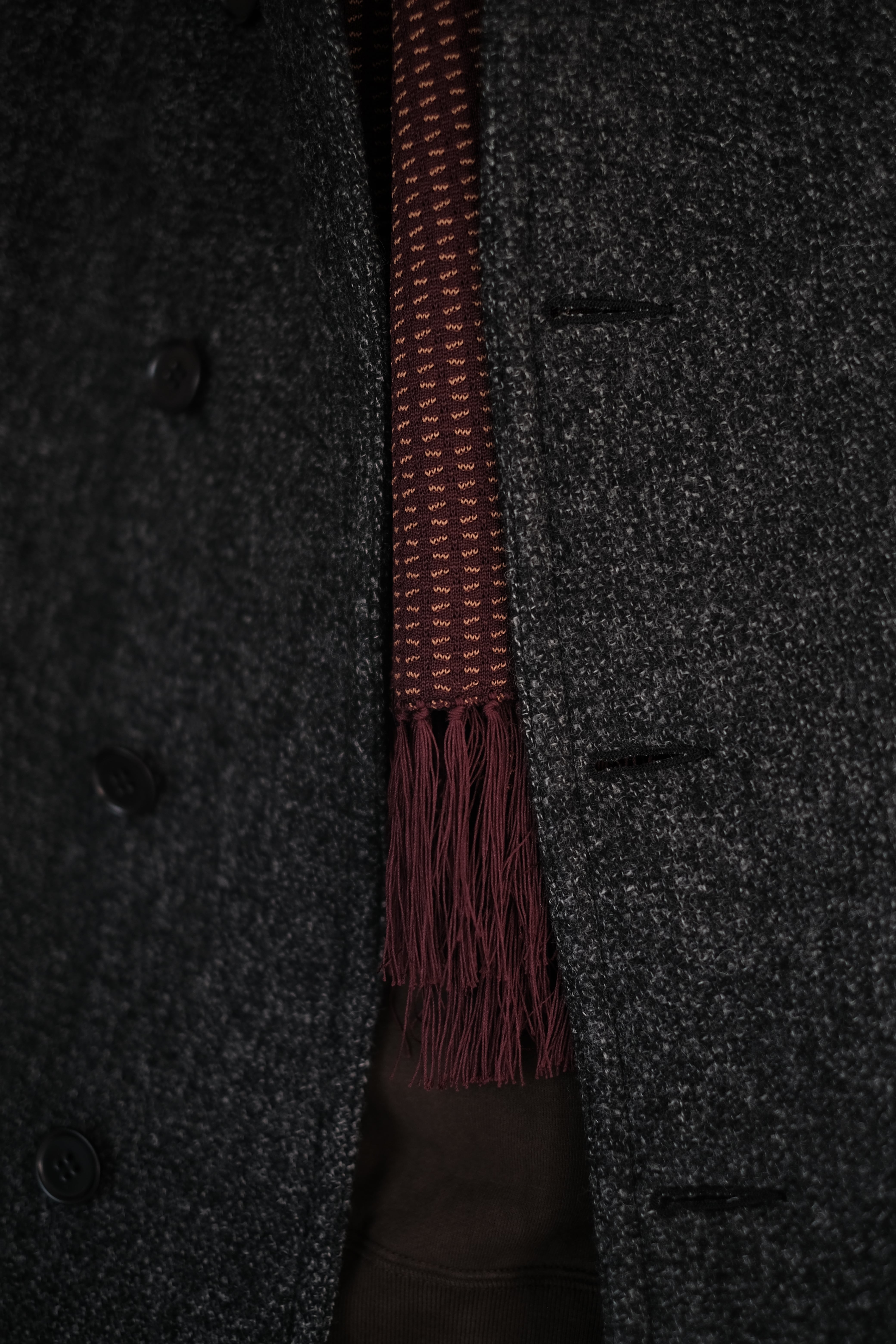 1920年代に作られたと思われるフリンジが手付けされたシルクジャガードのスカーフがベース。