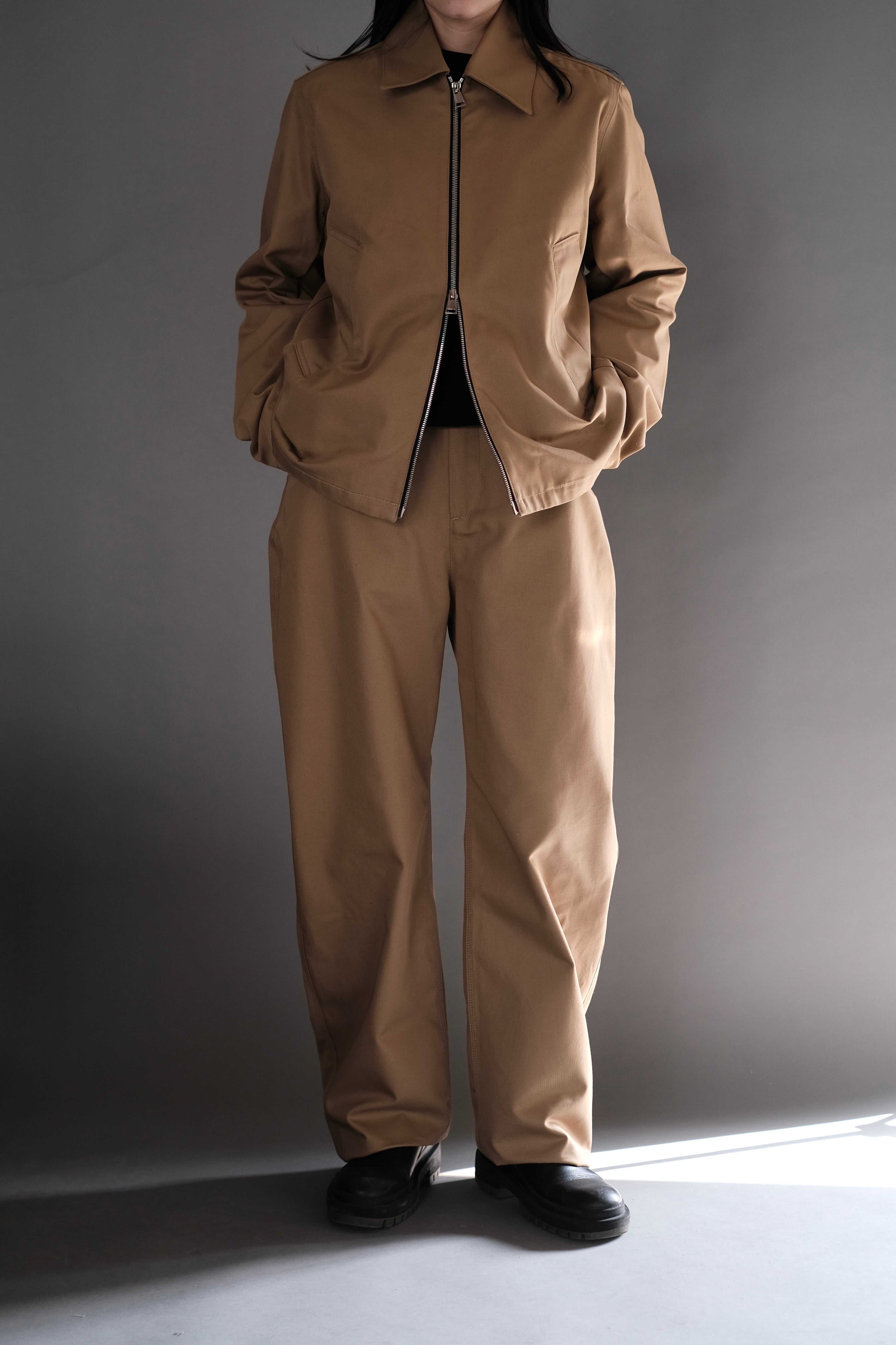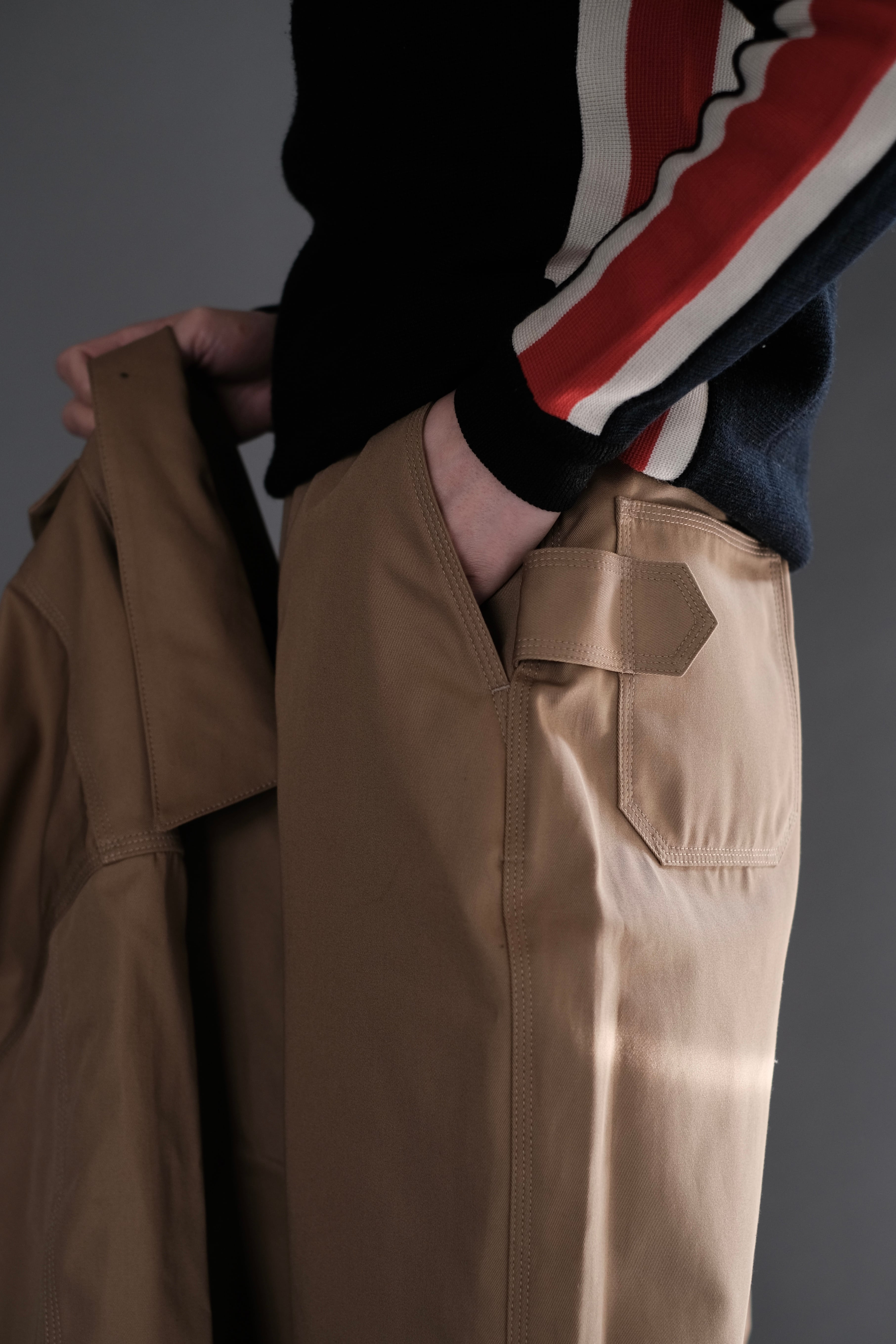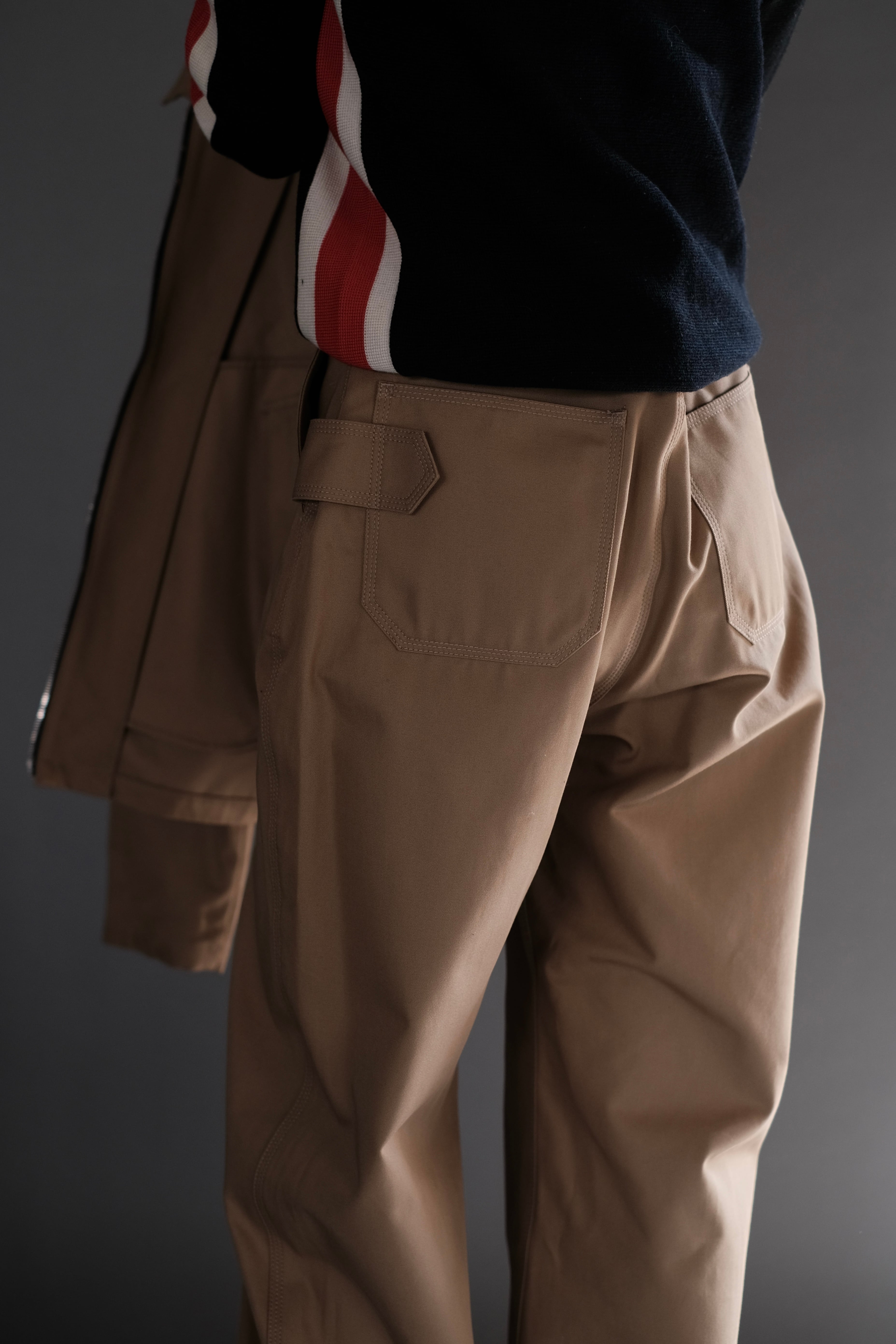 ハリのあるコットンツイルの光沢感、ステッチはすべてトリプルステッチ。