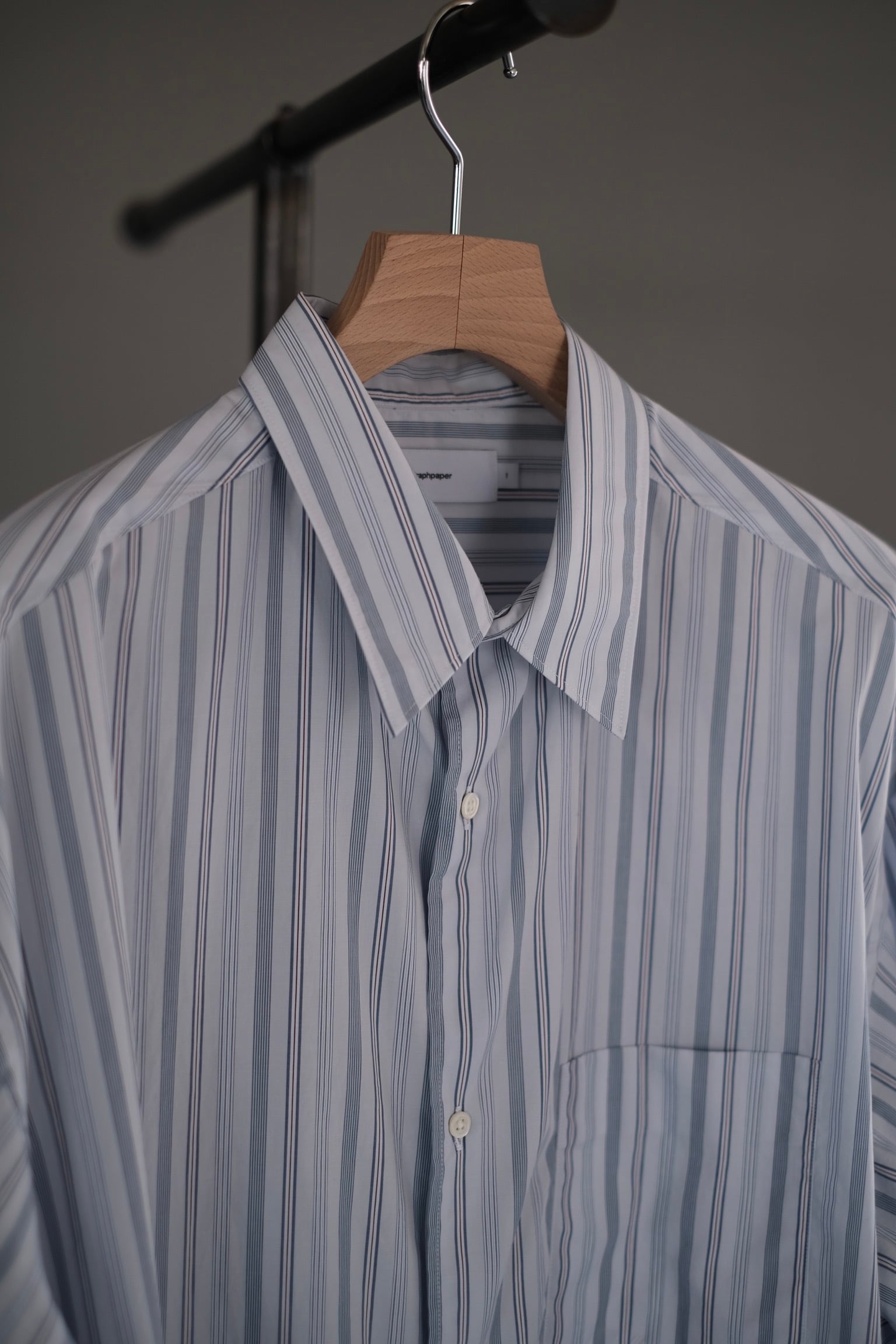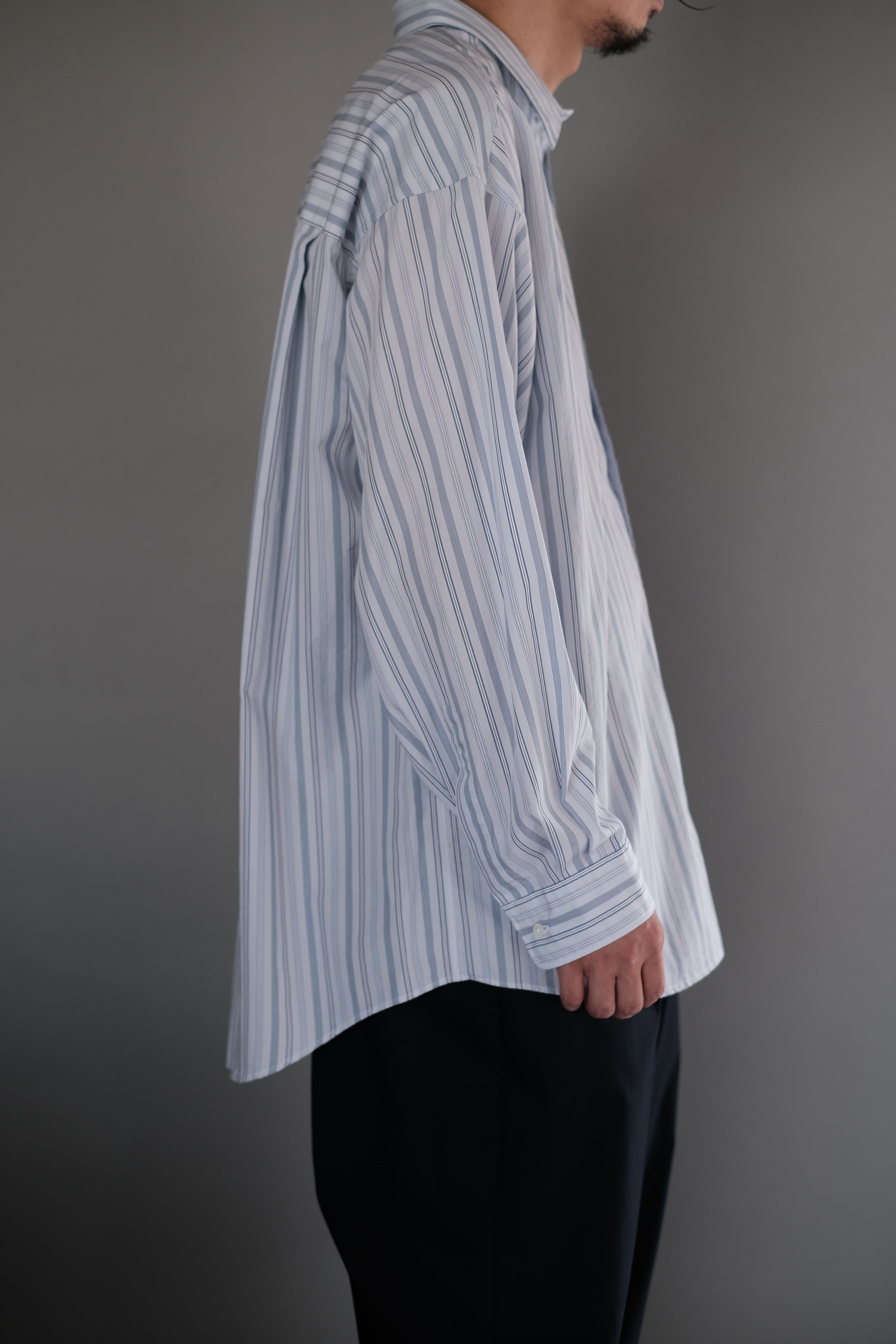 肩の傾斜や低く下げられたヨークの位置、アームホールの広さなど、細かなディテールを特異なバランスで仕上げたビッグシルエットが特徴のオックスフォードシャツのサイズをベースにすることで、今まで以上に余白を楽しめる独自のバランスに仕上がっている。