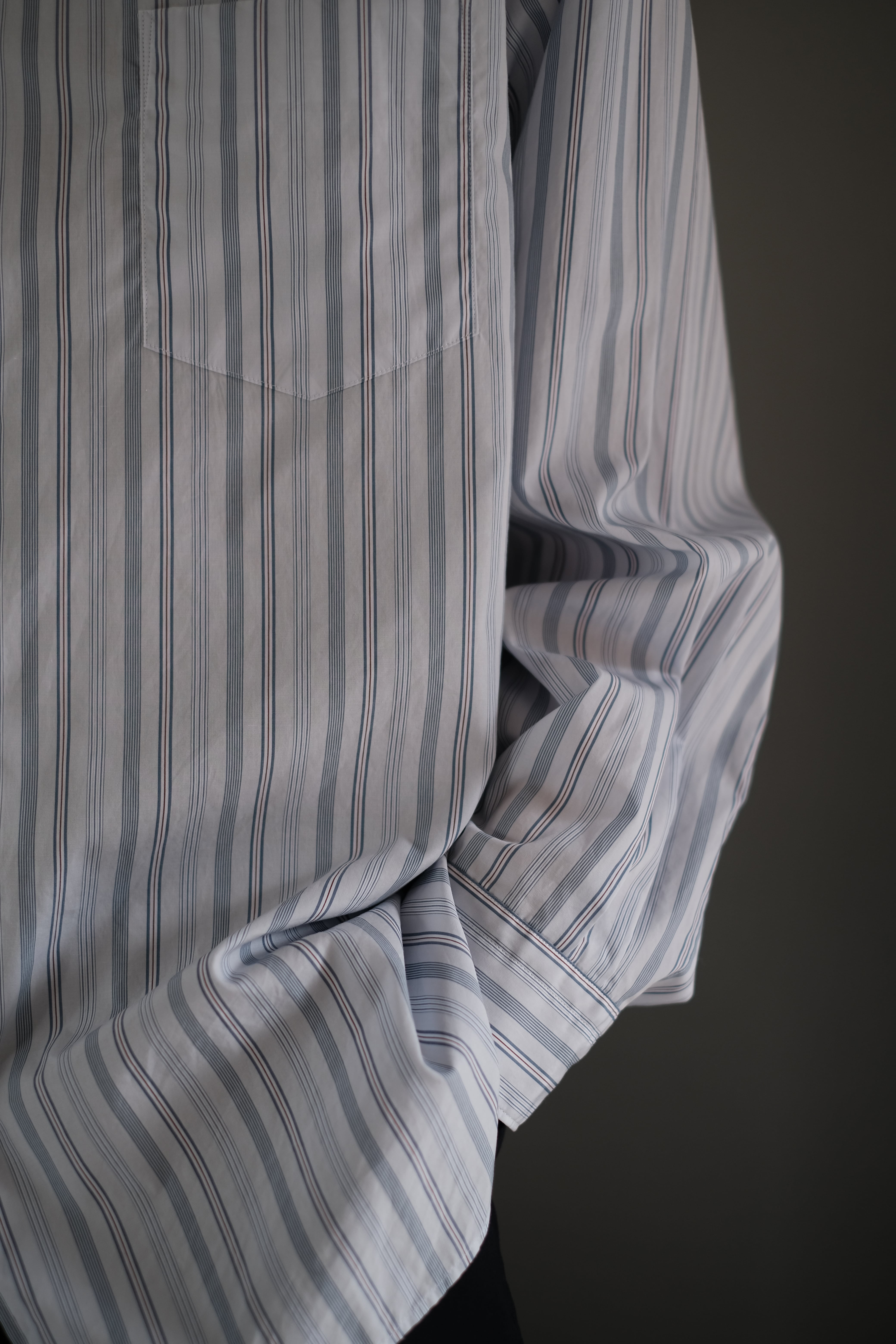 非常に繊細な糸番手で製織したストライプのブロード生地を使用。