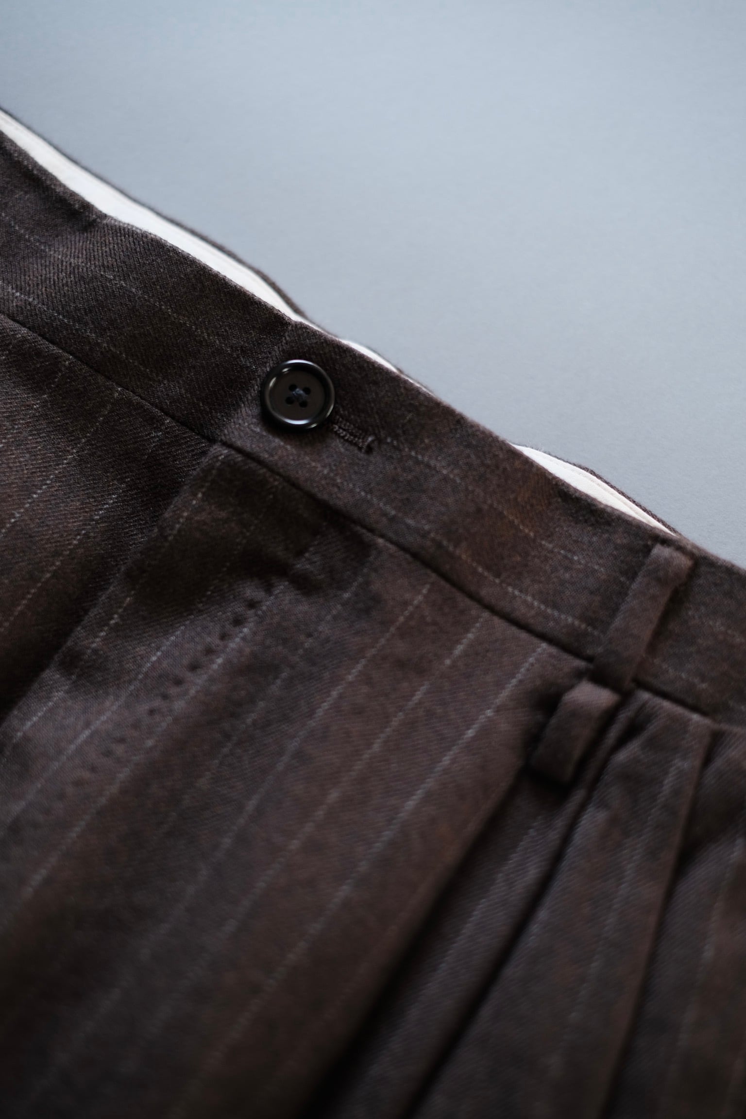 英国のクラシックな雰囲気が漂うチョークストライプ、程よく肉厚で起毛感があり、柔らかくて軽い。