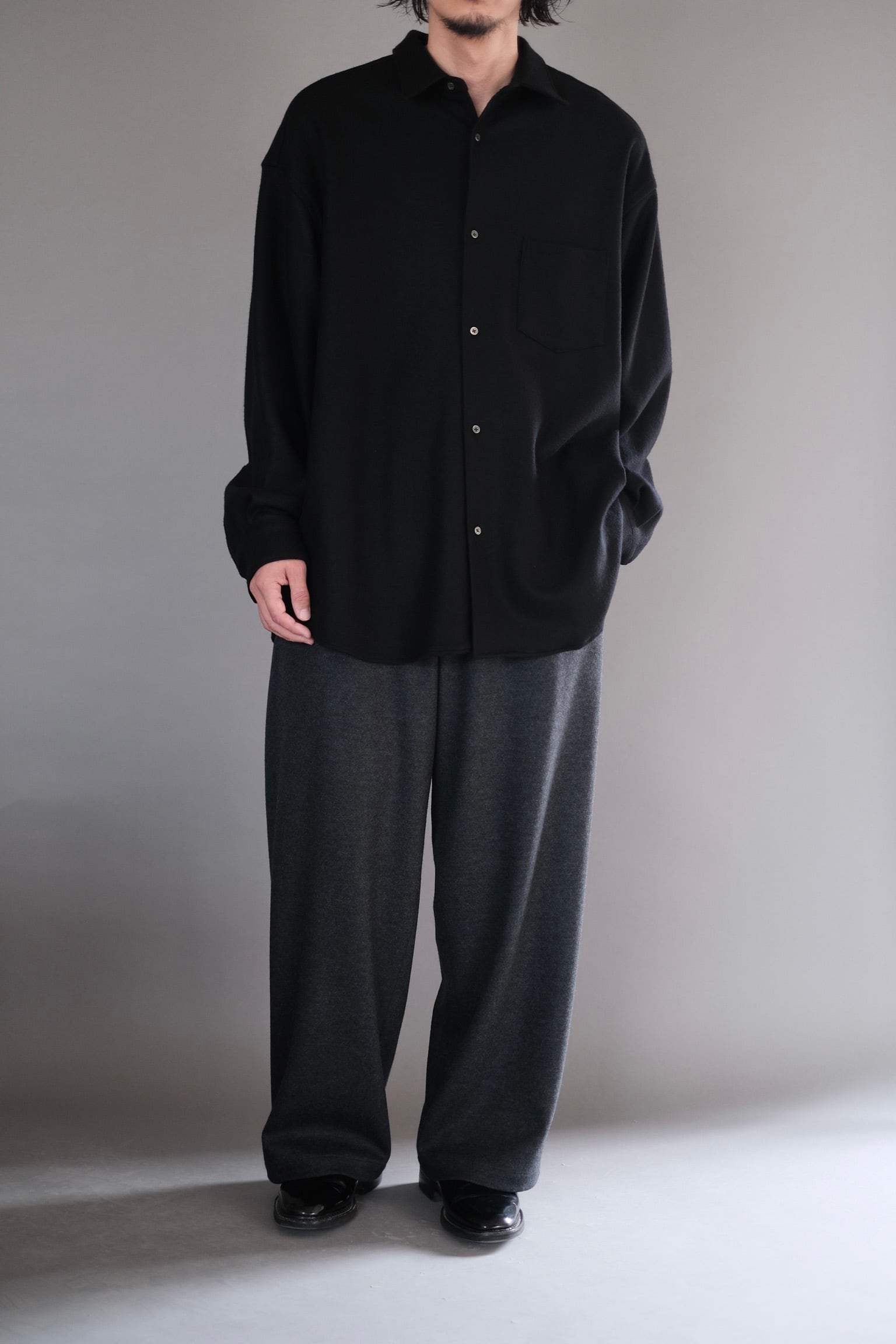 冬に最適なウォーム感のあるオーバーサイズフィットのレギュラーカラーシャツ。