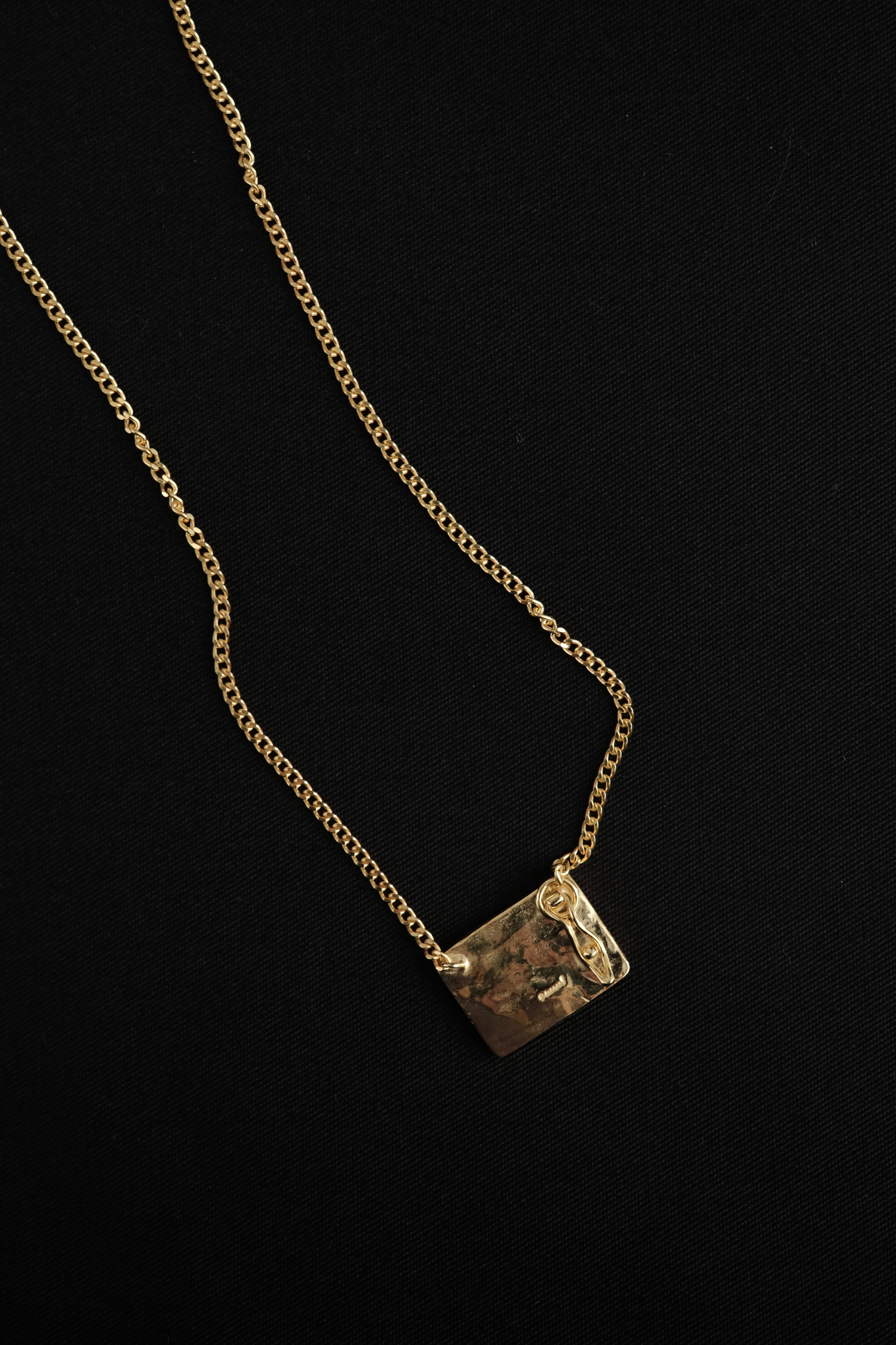 デザイナーのスケッチから職人手彫りで完成したプレートネックレス。